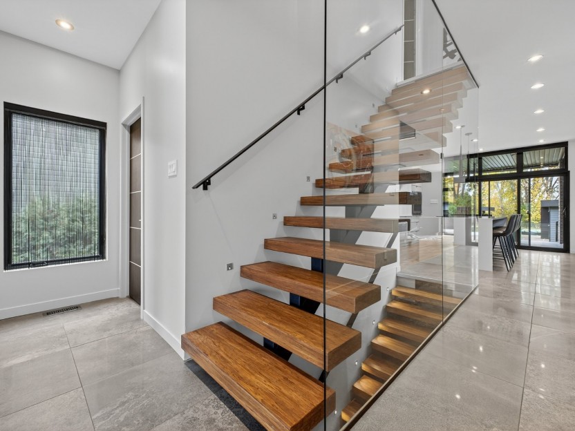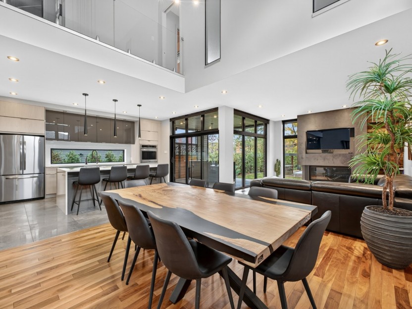 Résidence contemporaine élégante, bien construite offrant des intérieurs à aire...