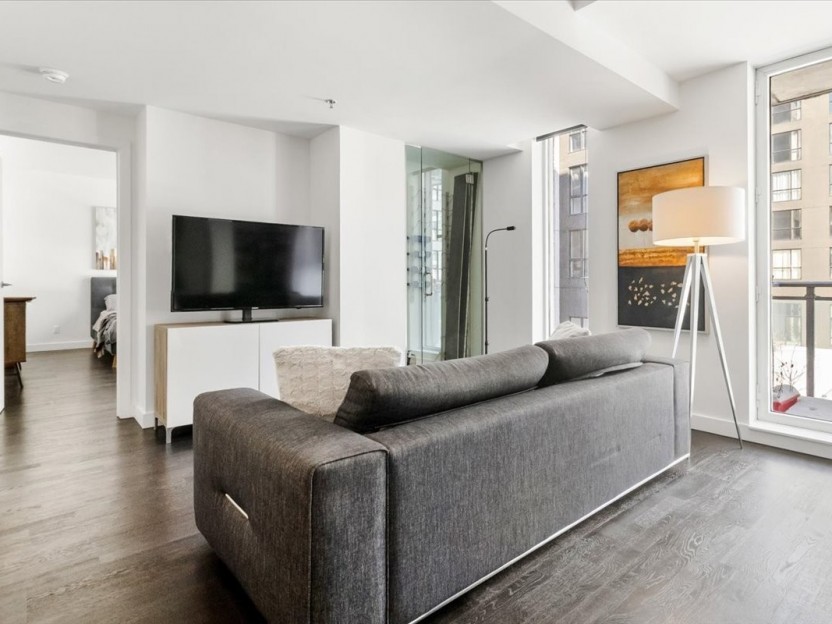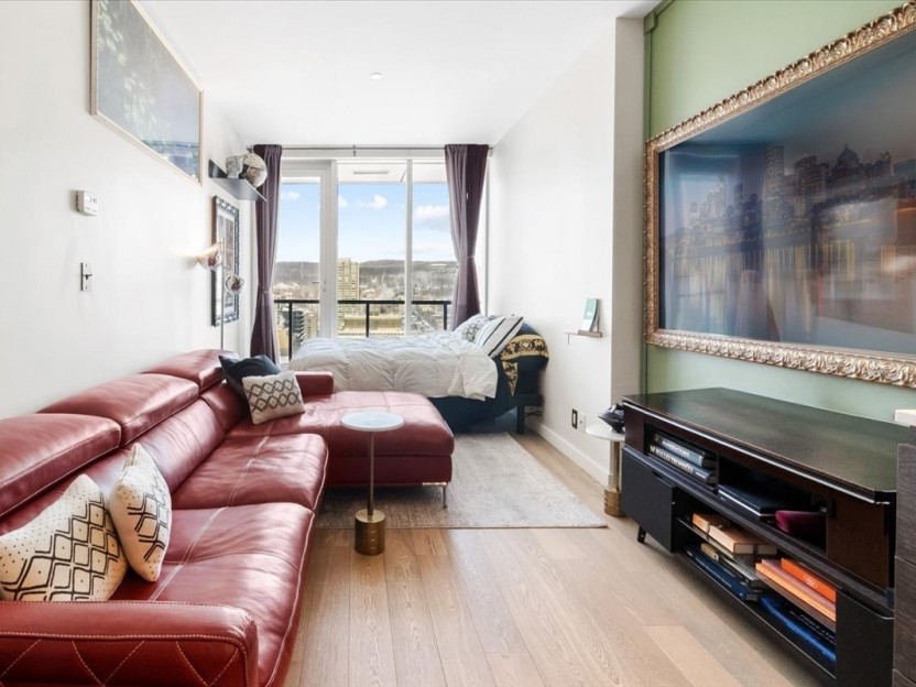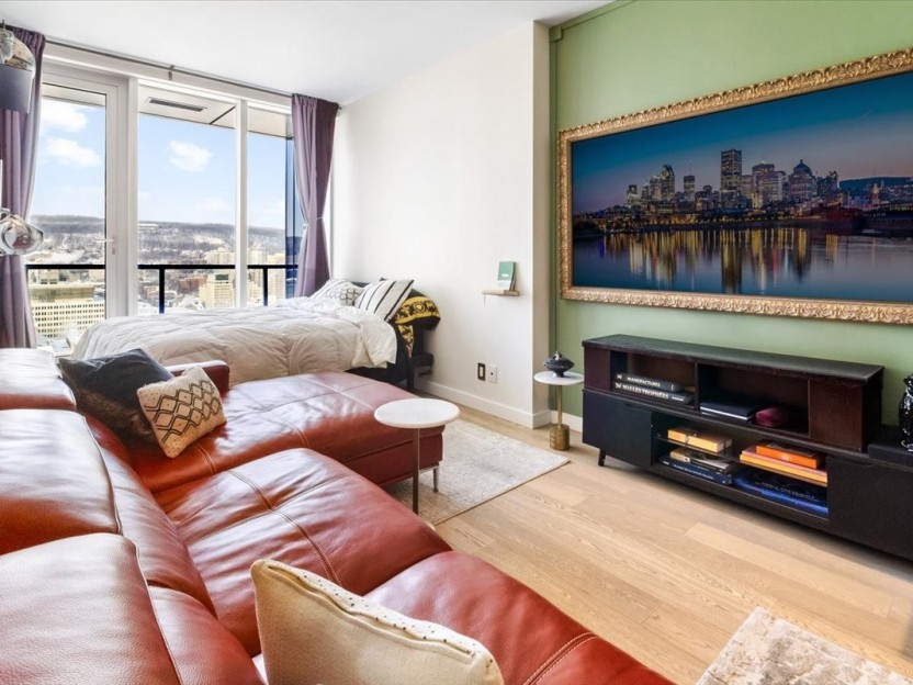 Perchée au 30 étage de l'iconique YUL, ce studio élégant offre des vues panoramiques sur le centre-ville de Montréal et le parc du Mont-Roya...