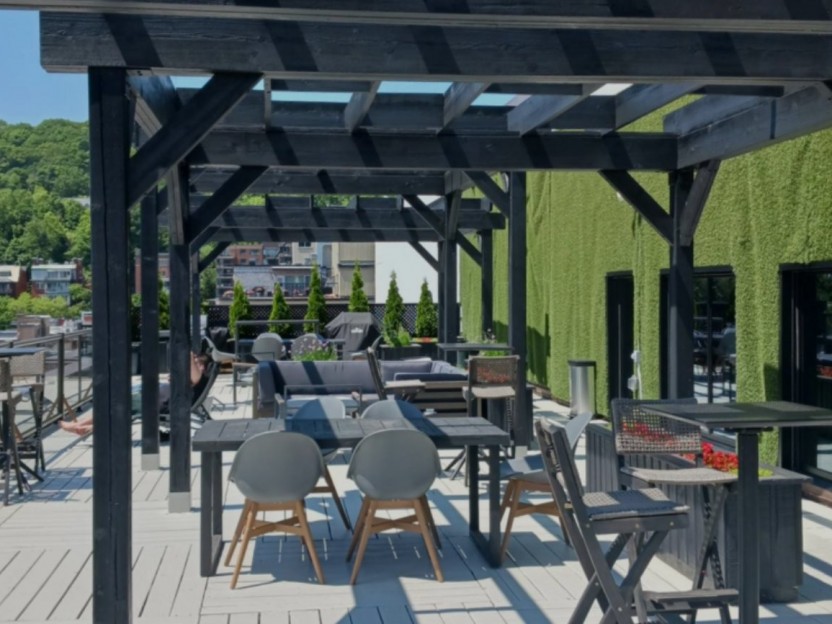 Finitions modernes et espace de vie lumineux et fonctionnel. L'immeuble offre des commodités recherchées, incluant une terrasse avec piscine...