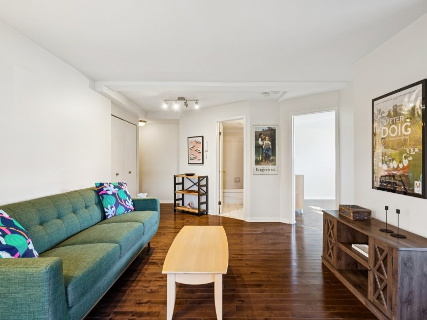 Ce charmant condo d'une chambre au rez-de-jardin offre un parfait équilibre entre confort et commodité. Son espace de vie lumineux à aire ou...