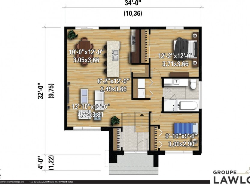 | Salon | Rez-de-chaussée | 13.4x9.8 P | Bois |