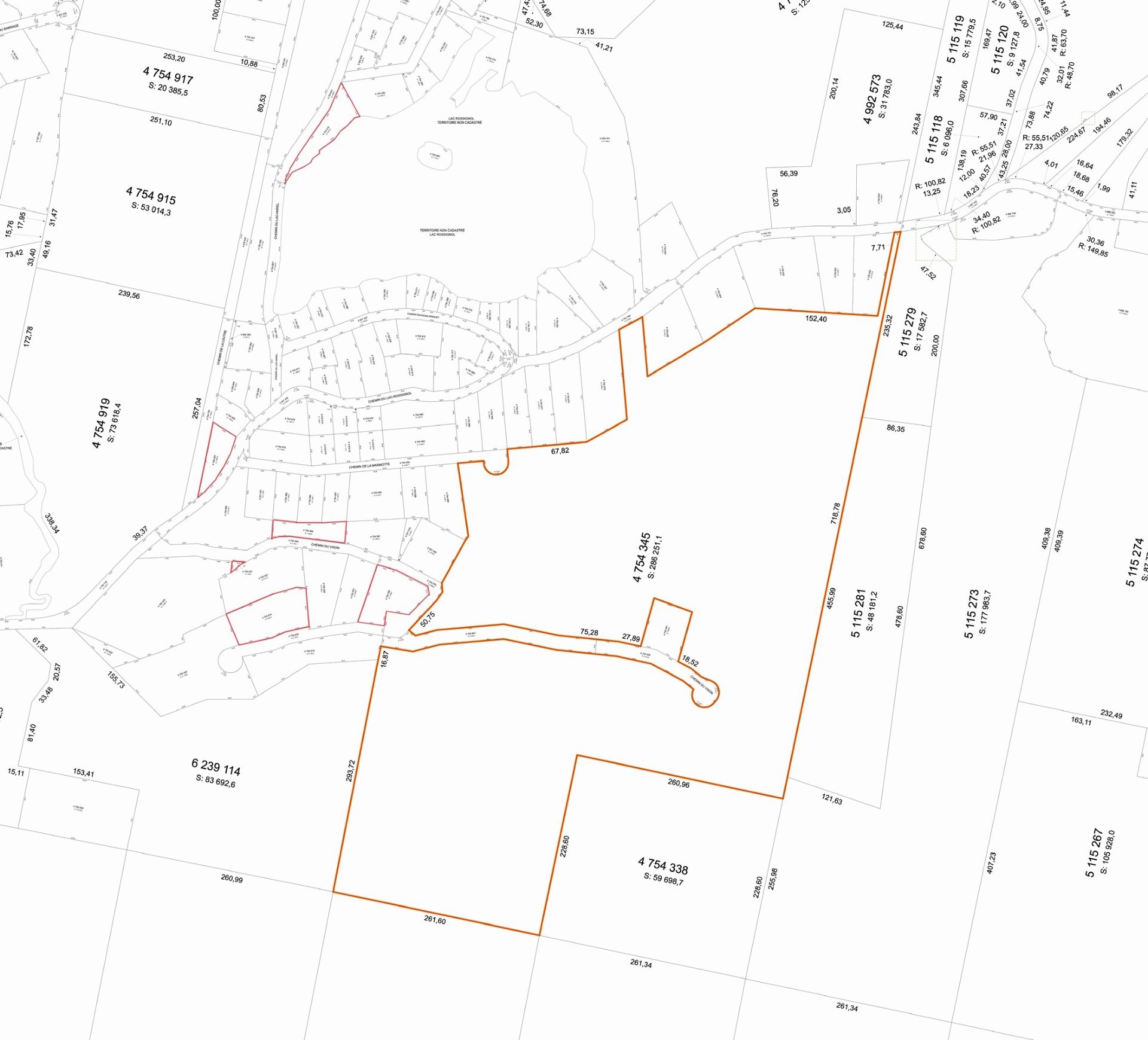 * Accès à l'eau : Accès direct au Lac Rossignol via le lot 4 754 278 (environ 1 acre en bordure du lac) Lac non motorisé -- baignade et activités récréatives douces autorisées