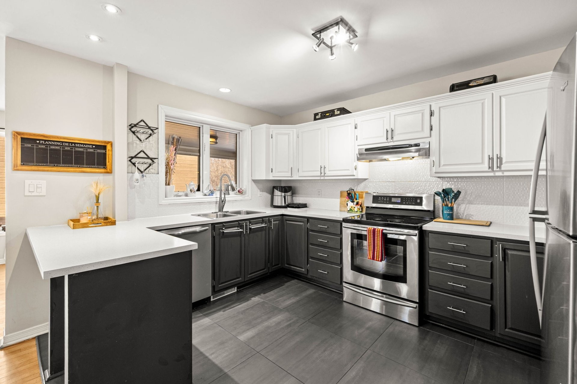 * Cuisine au goût du jour avec grand comptoir et espace fonctionnel