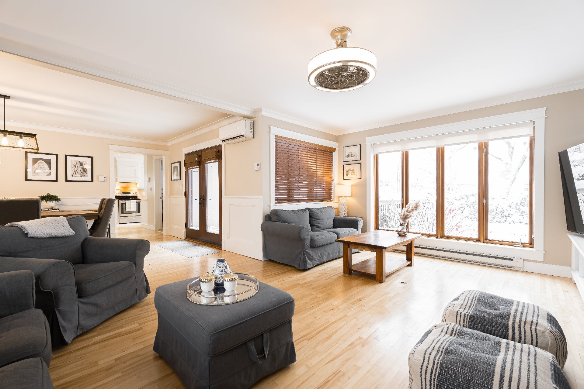 Bienvenue dans cette demeure d'exception située dans le très prisé quartier de Pointe-Claire Sud, idéalement implantée sur un terrain double magnifiquement paysagé offrant espace et intimité. Cette élégante résidence comprend trois chambres spacieuses à l'étage et met en valeur de remarquables boiseries sur mesure et des armoires encastrées, témoignant d'un véritable savoir-faire et d'un style intemporel. L'agencement bien pensé offre un équilibre parfait entre un concept ouvert et des espaces bien définis, créant une circulation fluide et chaleureuse, idéale pour la vie de famille et les réceptions. Un charmant foyer au bois ajoute à l'atmosphère accueillante, parfaite pour se réchauffer lors des prochaines journées d'hiver.