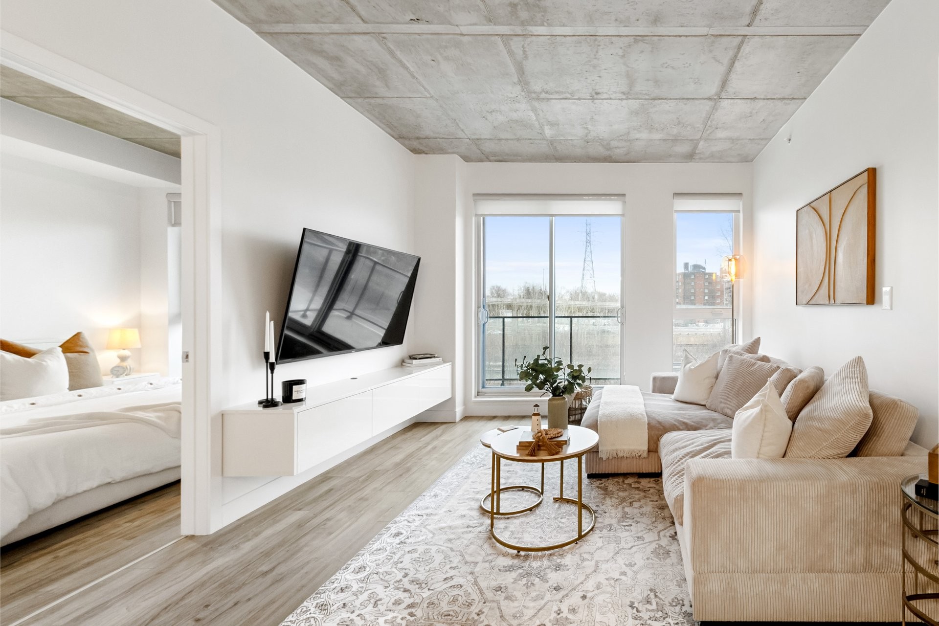 L'aire de vie principale est accueillante et fonctionnelle, avec un espace qui s'ouvre sur un balcon privé, parfait pour profiter d'un café le matin, se détendre en soirée ou simplement prendre l'air. Le condo comprend également deux espaces de stationnement intérieur ainsi qu'un espace de rangement, des atouts pratiques et recherchés.