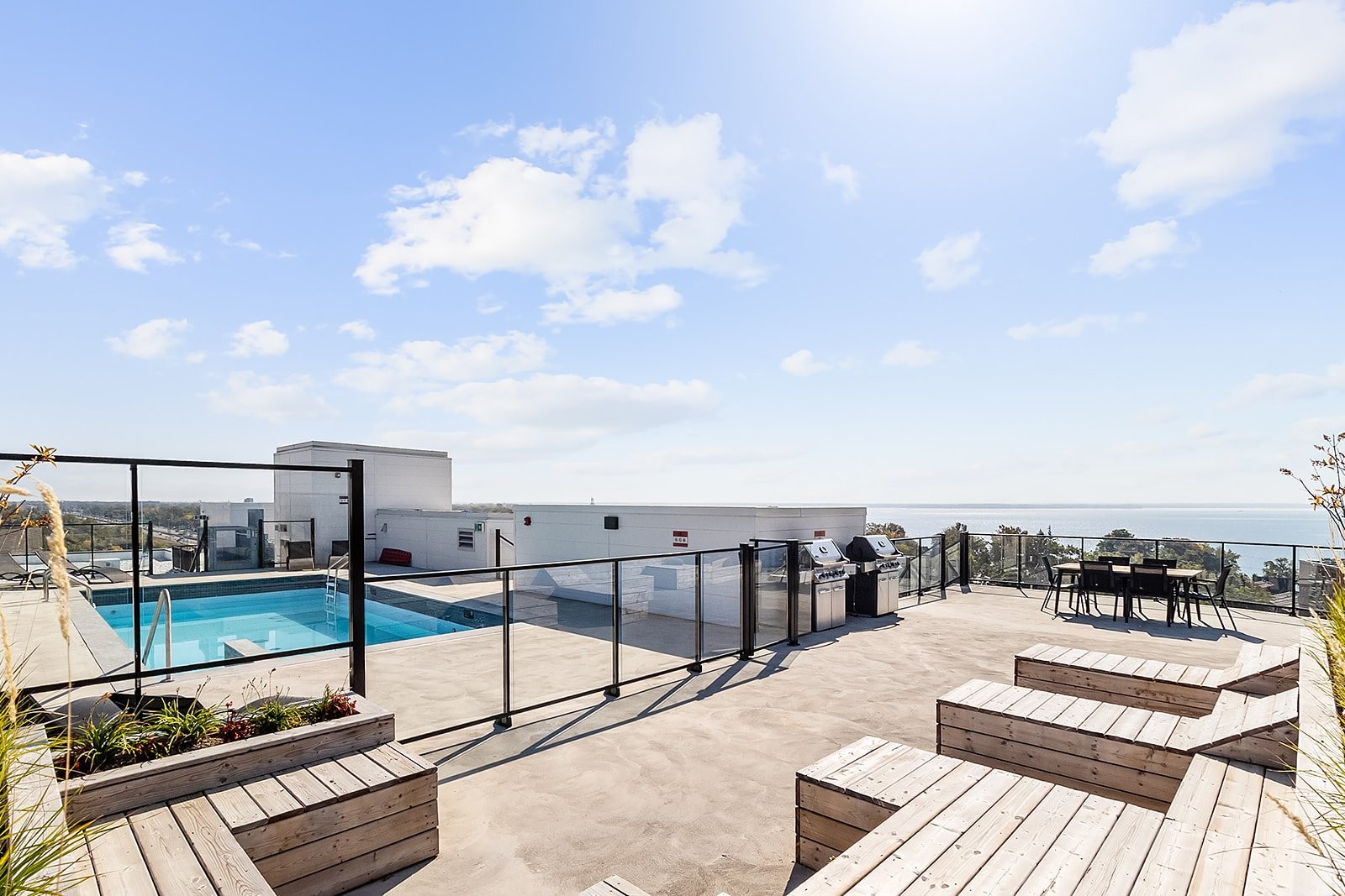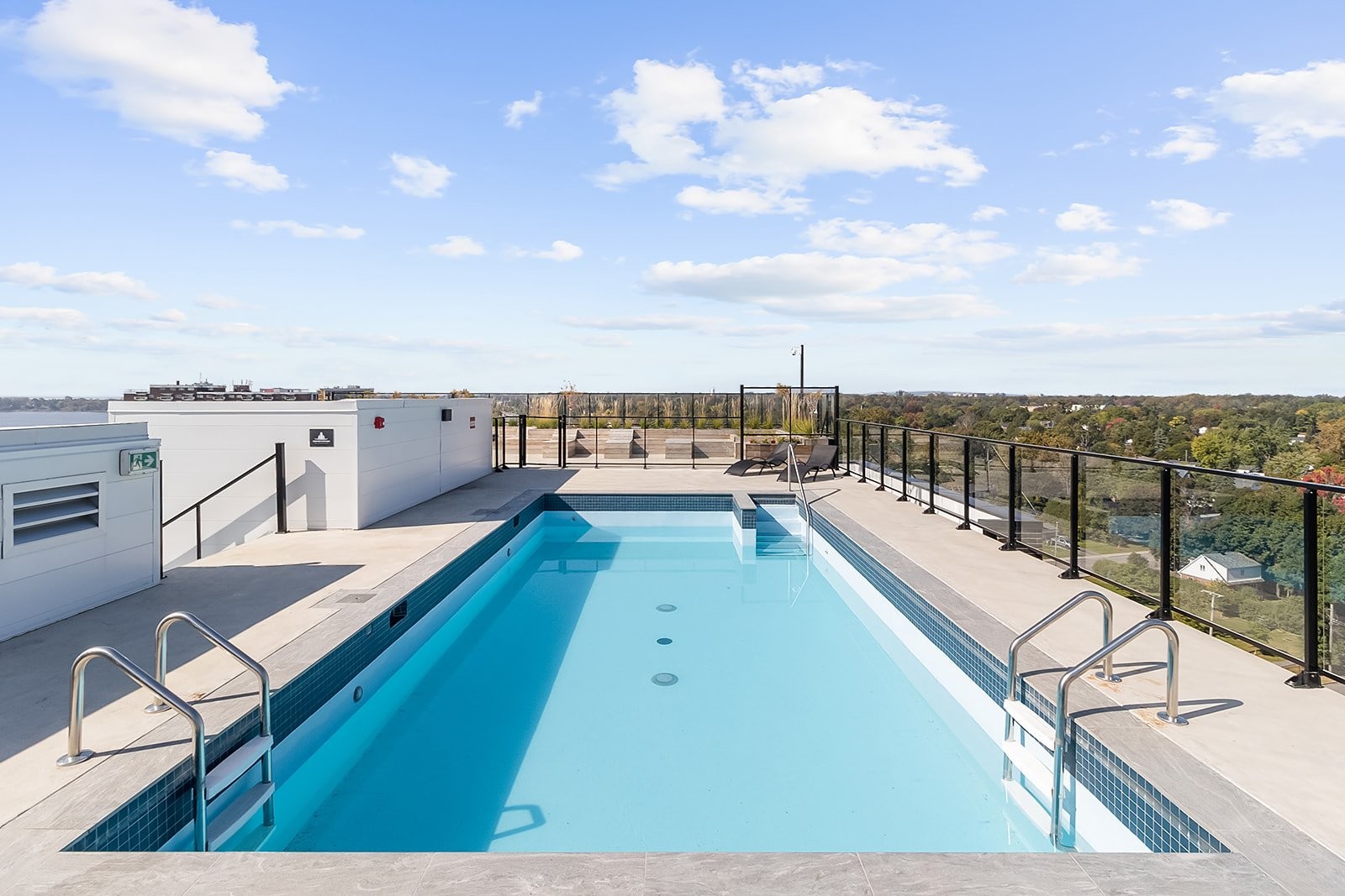 Les résidents de l'immeuble bénéficient d'installations attrayantes conçues pour améliorer la qualité de vie. Vous pourrez profiter de la terrasse sur le toit avec piscine pendant les journées estivales, vous entraîner dans la salle d'exercice bien équipée ou utiliser le support à vélos intérieur.