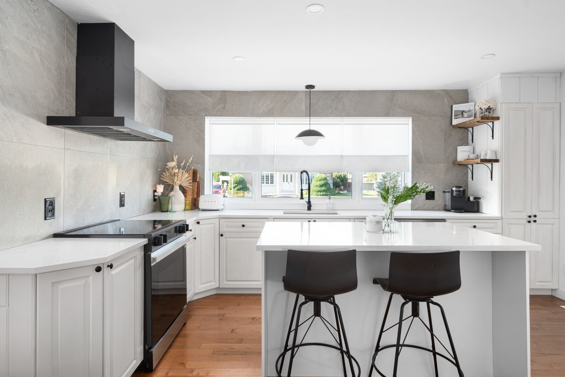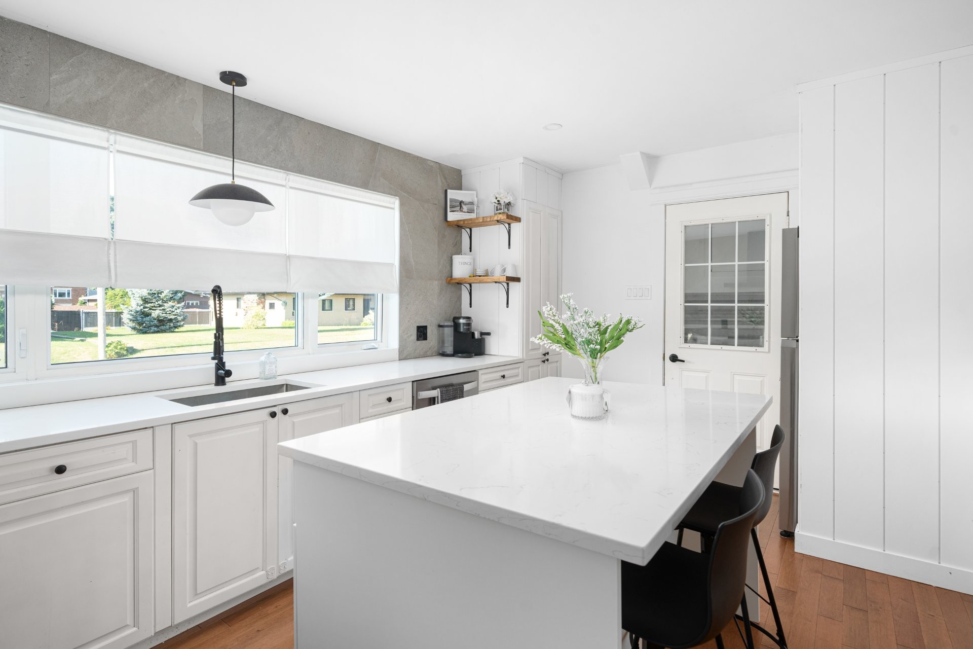 Bungalow clé en main entièrement rénové. Cuisine moderne avec comptoirs de quartz et îlot, planchers de bois franc au rez-de-chaussée et chambres lumineuses et spacieuses. Cour intime avec arbres matures, terrasse pavée, piscine hors terre et garage rare de 36 pieds offrant beaucoup de rangement. Sous-sol entièrement aménagé avec 2 chambres, grande salle familiale et salle de bain complète. Situé sur une rue tranquille avec de grands terrains, près de tous les services