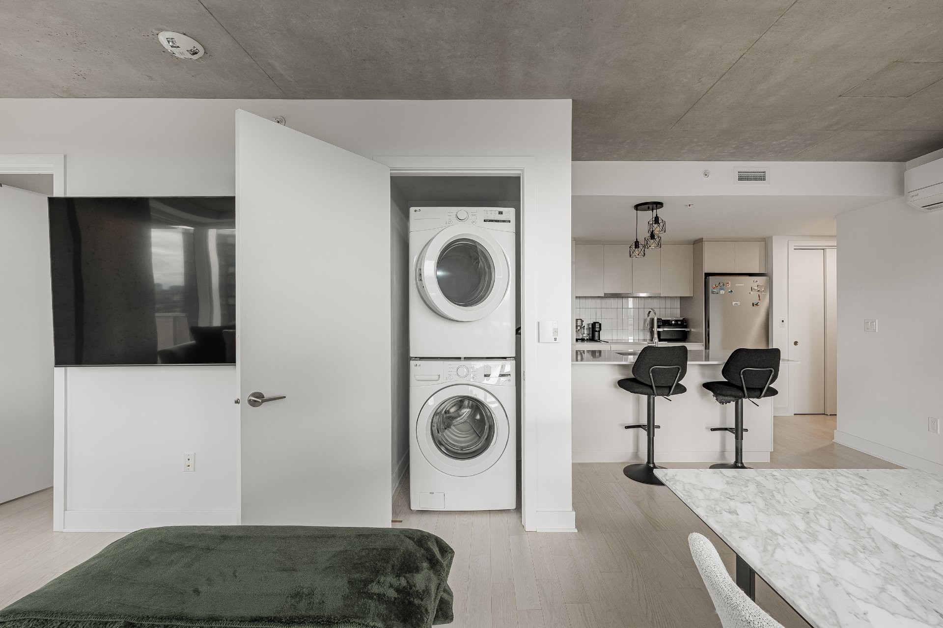 Superbe condo à louer situé au coeur de Griffintown, offrant une chambre fermée et un espace bureau/den idéal pour le télétravail. Construit...