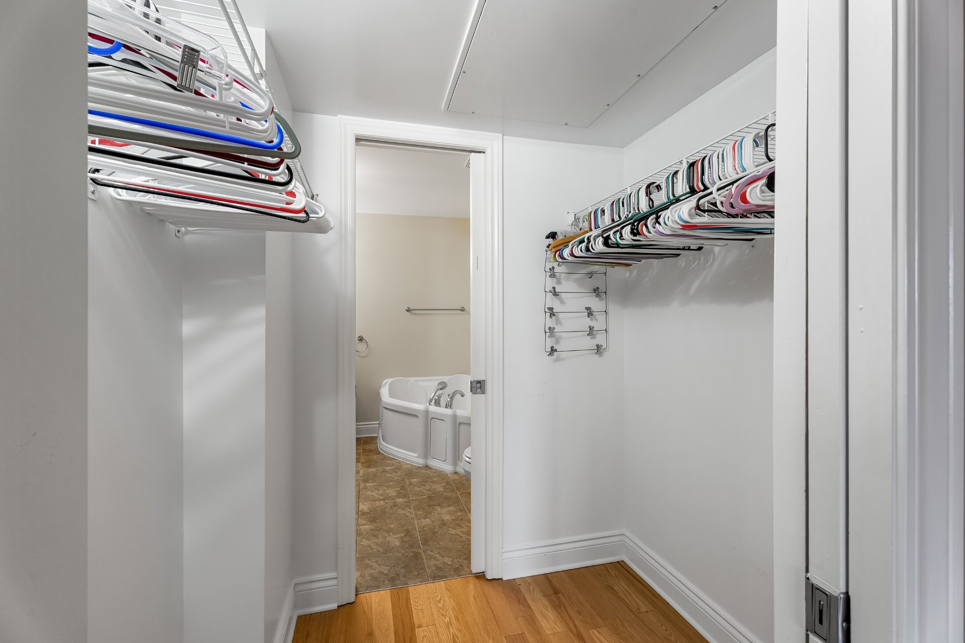 La spacieuse chambre principale comprend sa propre salle de bain attenante ainsi qu'un grand walk-in, offrant confort et intimité. La deuxième chambre, également équipée d'un walk-in, est parfaite pour un bureau, une chambre d'invités ou un membre de la famille.