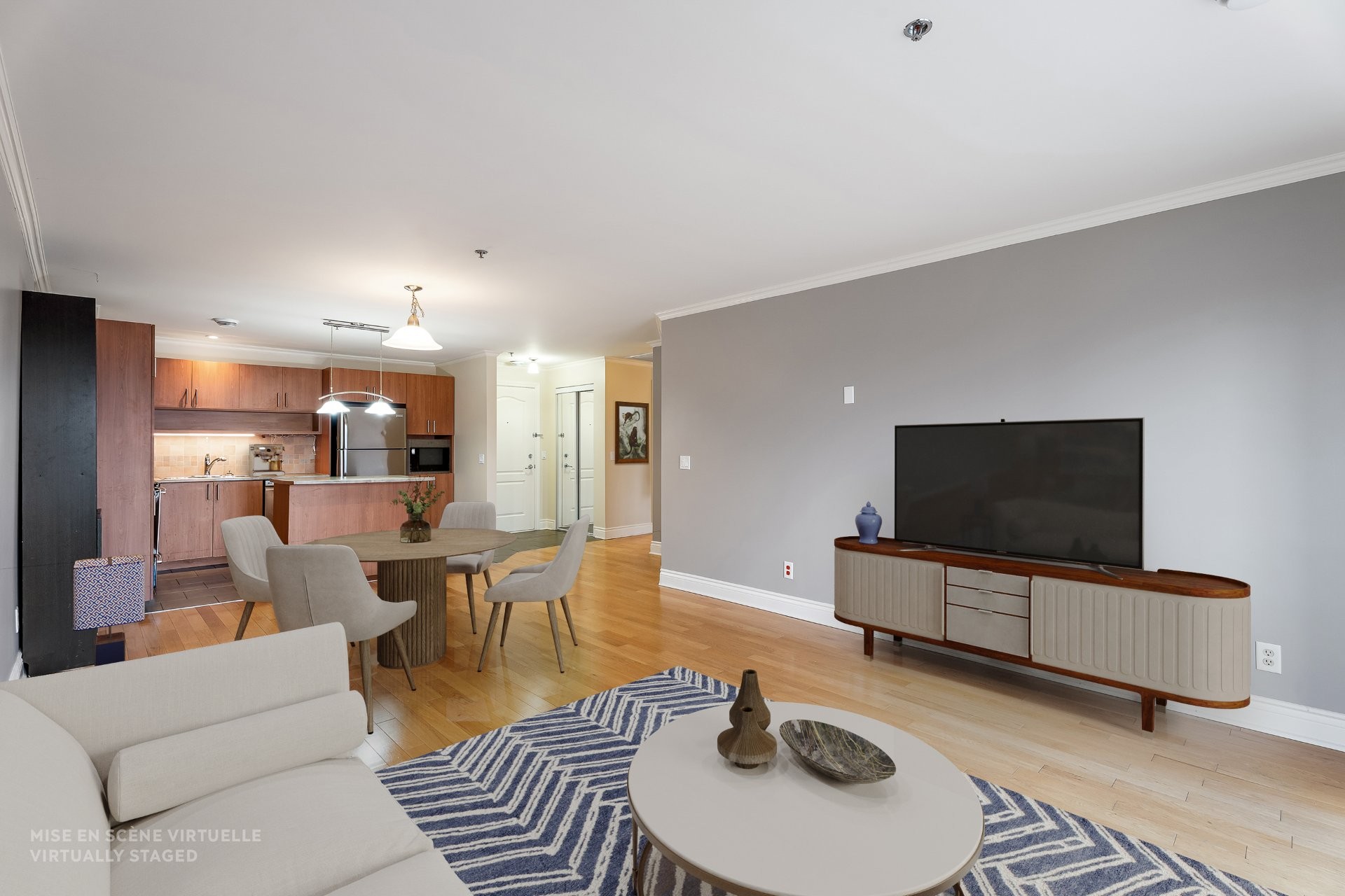 Ce condo lumineux de 2 chambres a été conçu pour maximiser l'espace et la lumière naturelle. L'aire de vie à aire ouverte est mise en valeur par de grandes fenêtres récemment remplacées, qui encadrent les vues à couper le souffle et inondent les pièces de lumière. Les magnifiques planchers de bois franc ajoutent chaleur et raffinement, créant un espace idéal autant pour la vie quotidienne que pour recevoir.