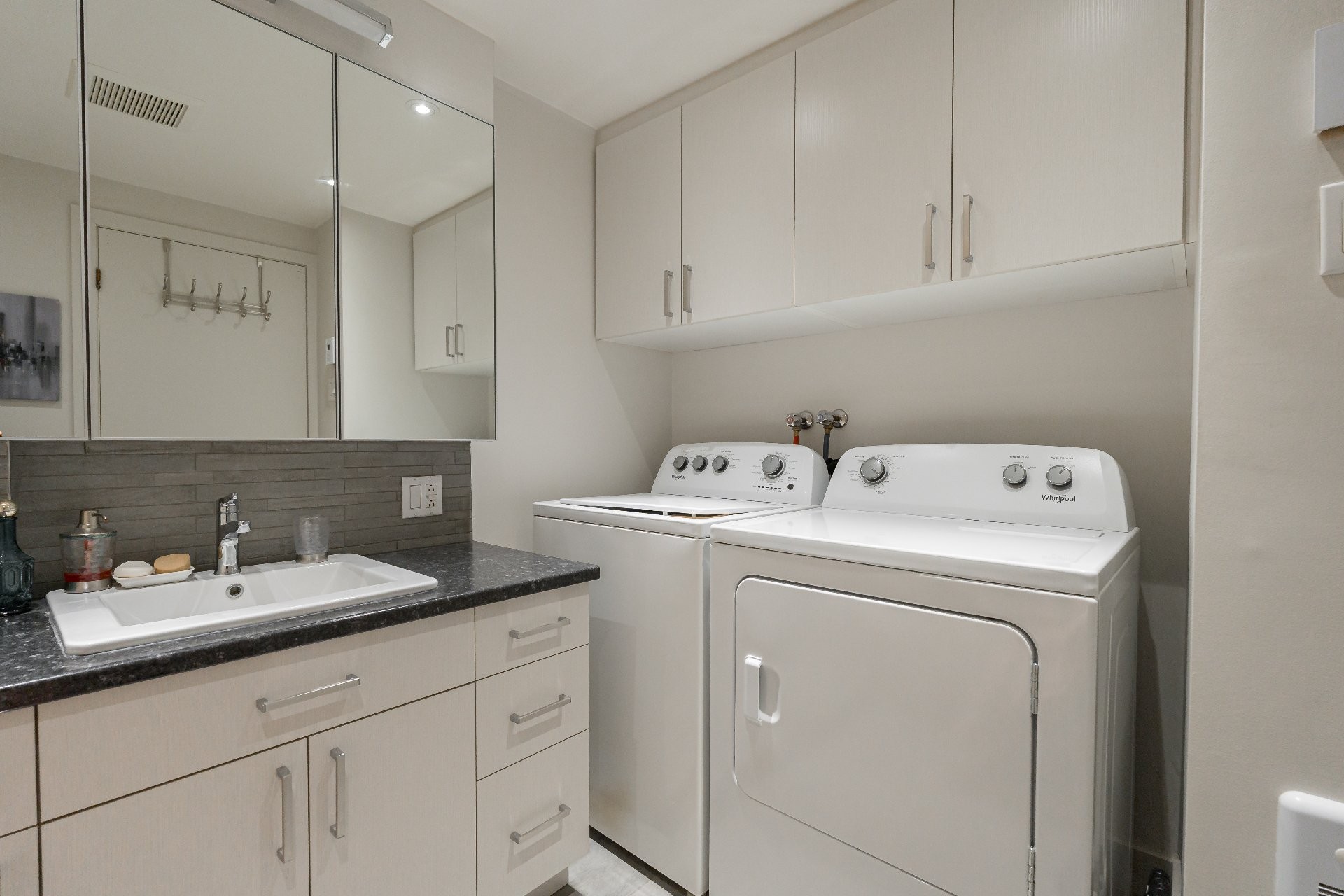 laveuse, sécheuse, lave-vaisselle, luminaires, rideaux et tringles