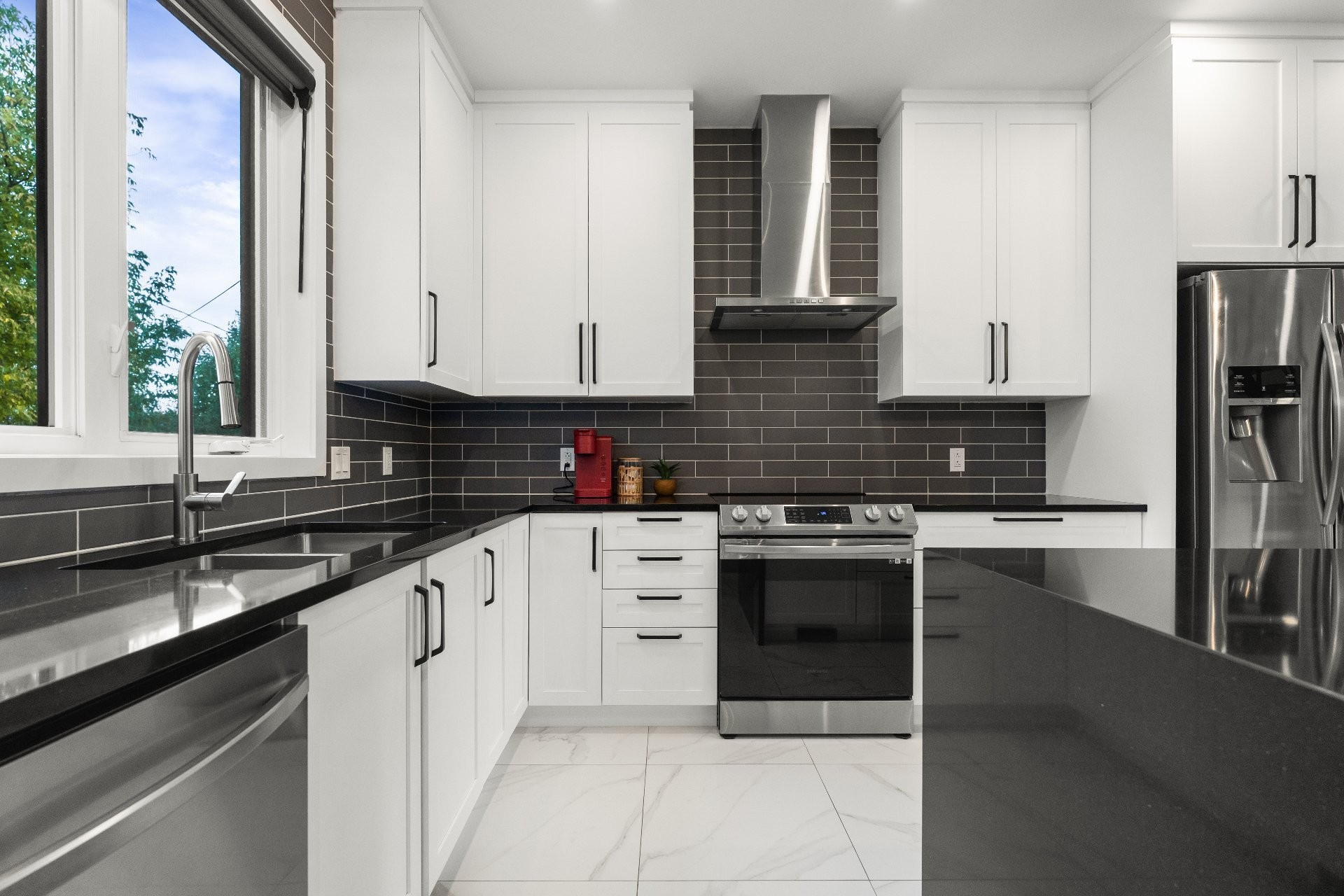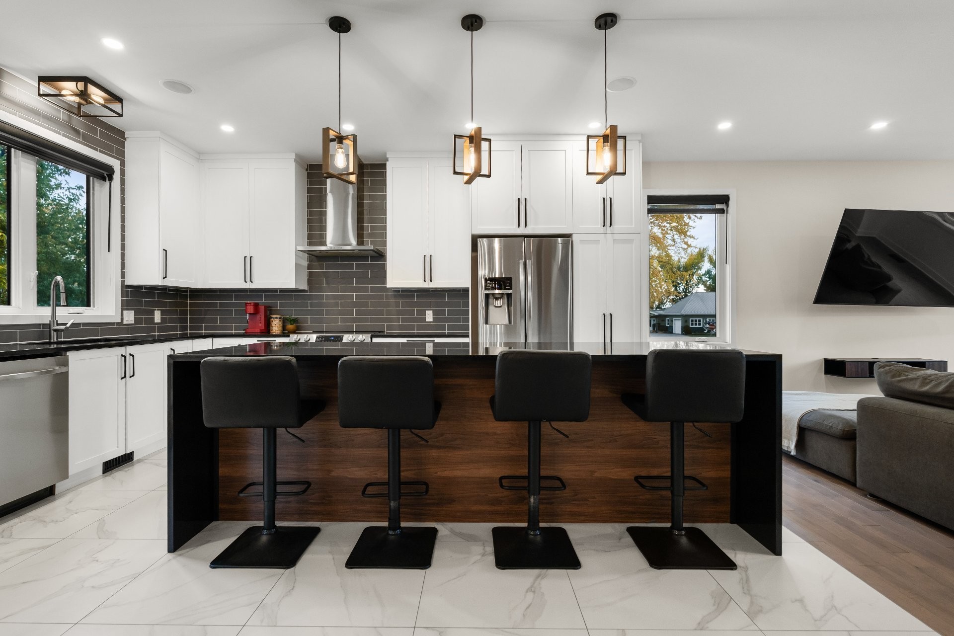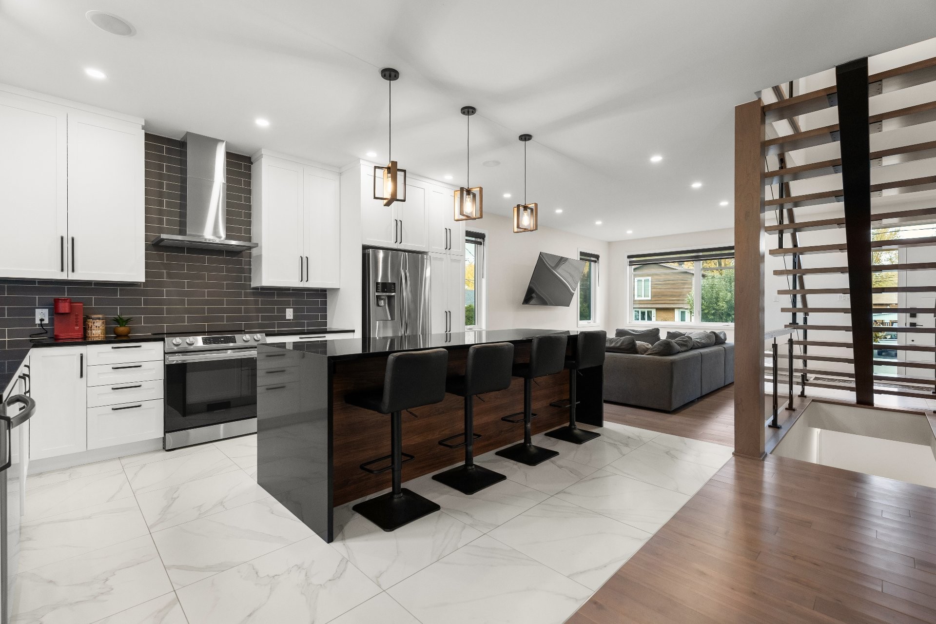 Superbe maison de ville rénovée avec soin. Cuisine modernisée avec comptoirs en quartz et plancher chauffant. Salon chaleureux avec foyer él...