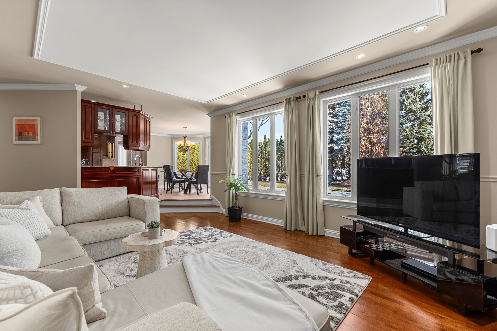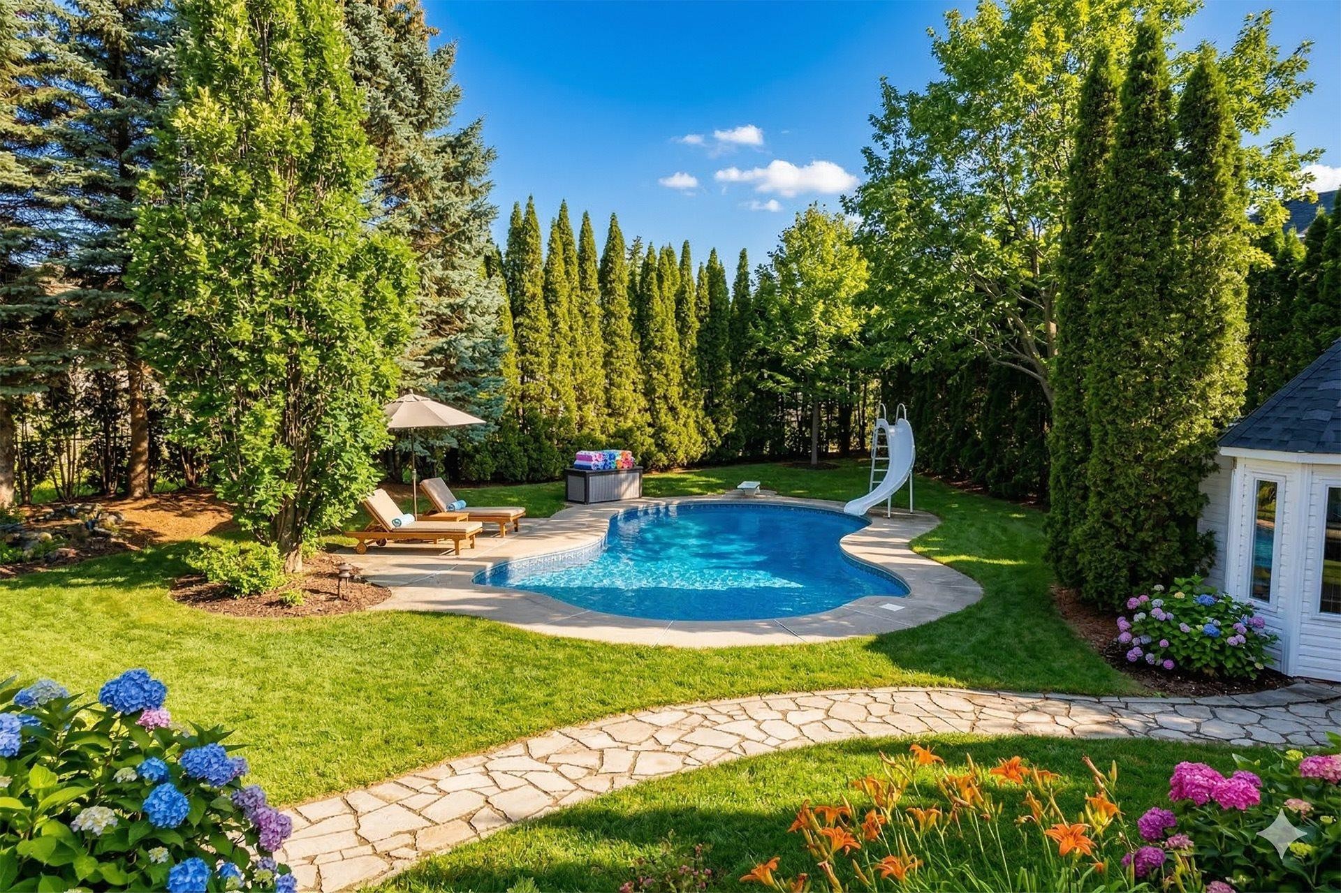 À l'extérieur, profitez d'une véritable oasis privée : piscine creusée chauffée au sel, aménagement paysager mature, et aucun voisin à l'arrière pour une intimité absolue.