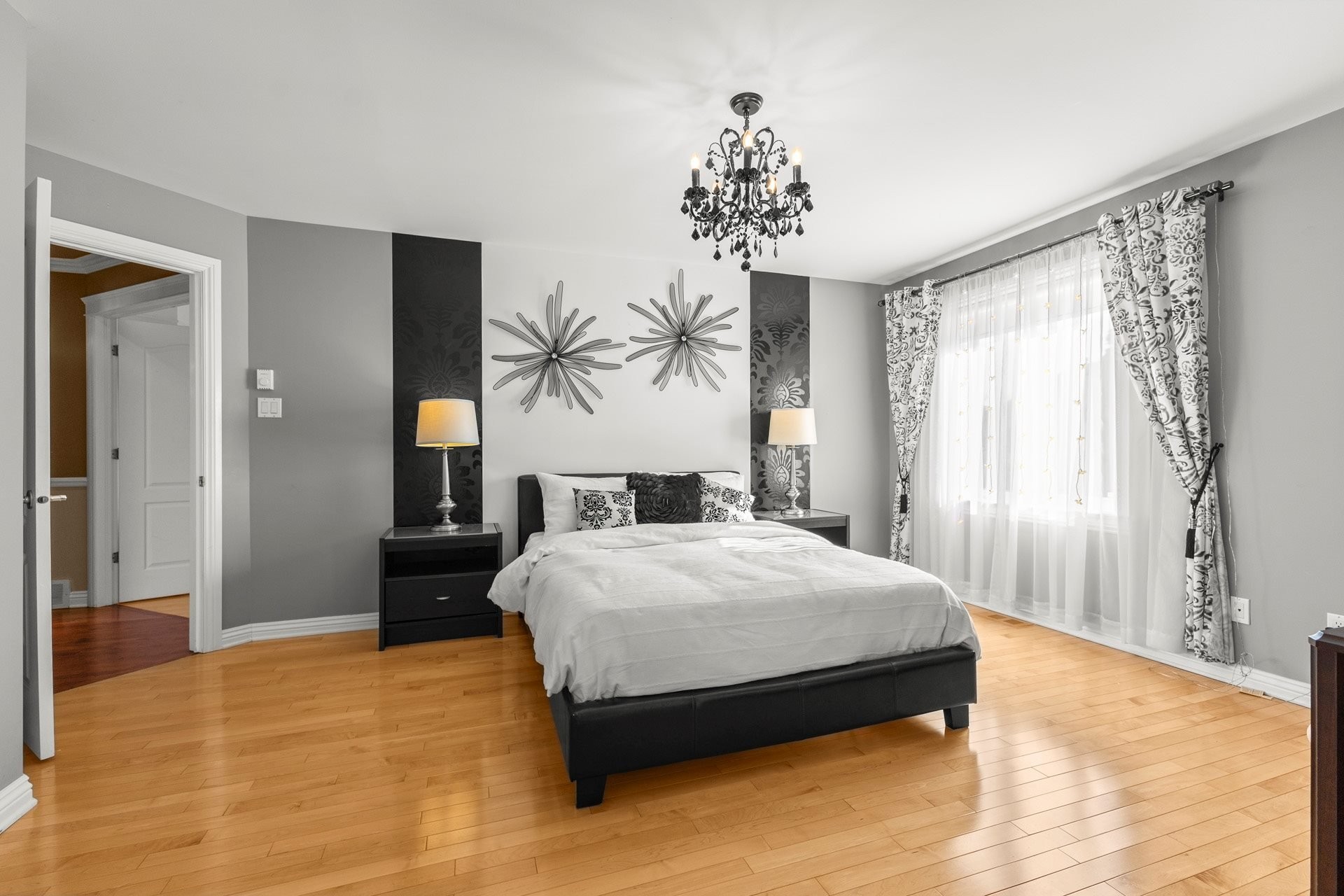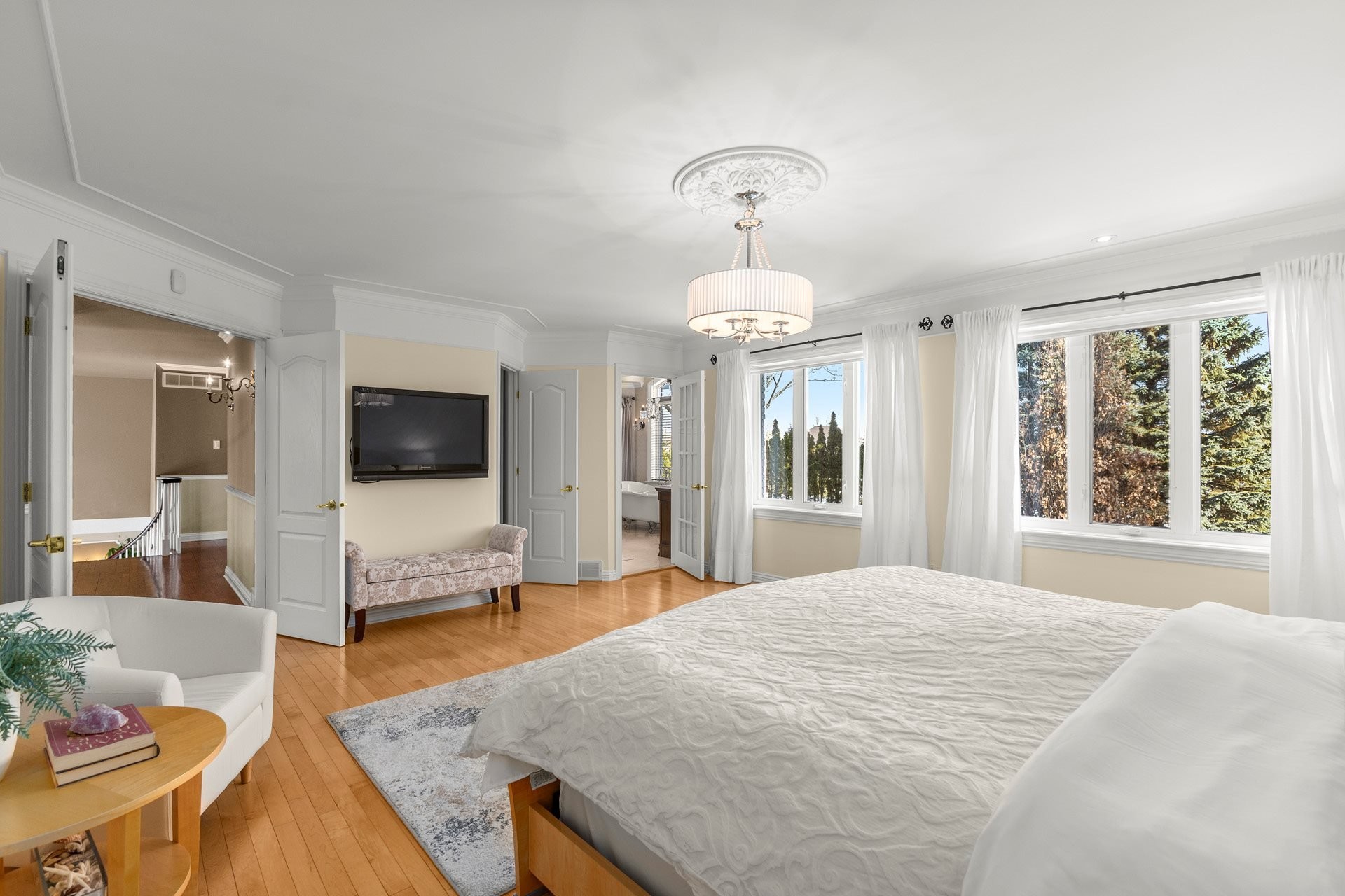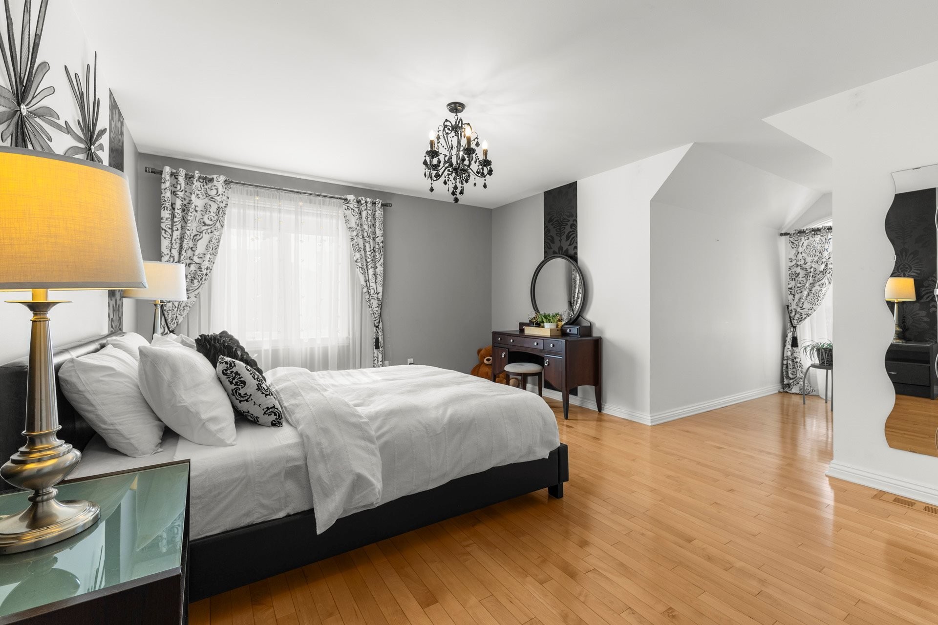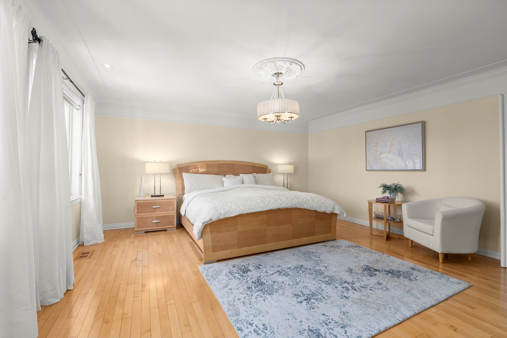 À l'étage, la suite principale luxueuse propose un walk-in aménagé sur mesure ainsi qu'une somptueuse salle de bain en marbre avec planchers chauffants.