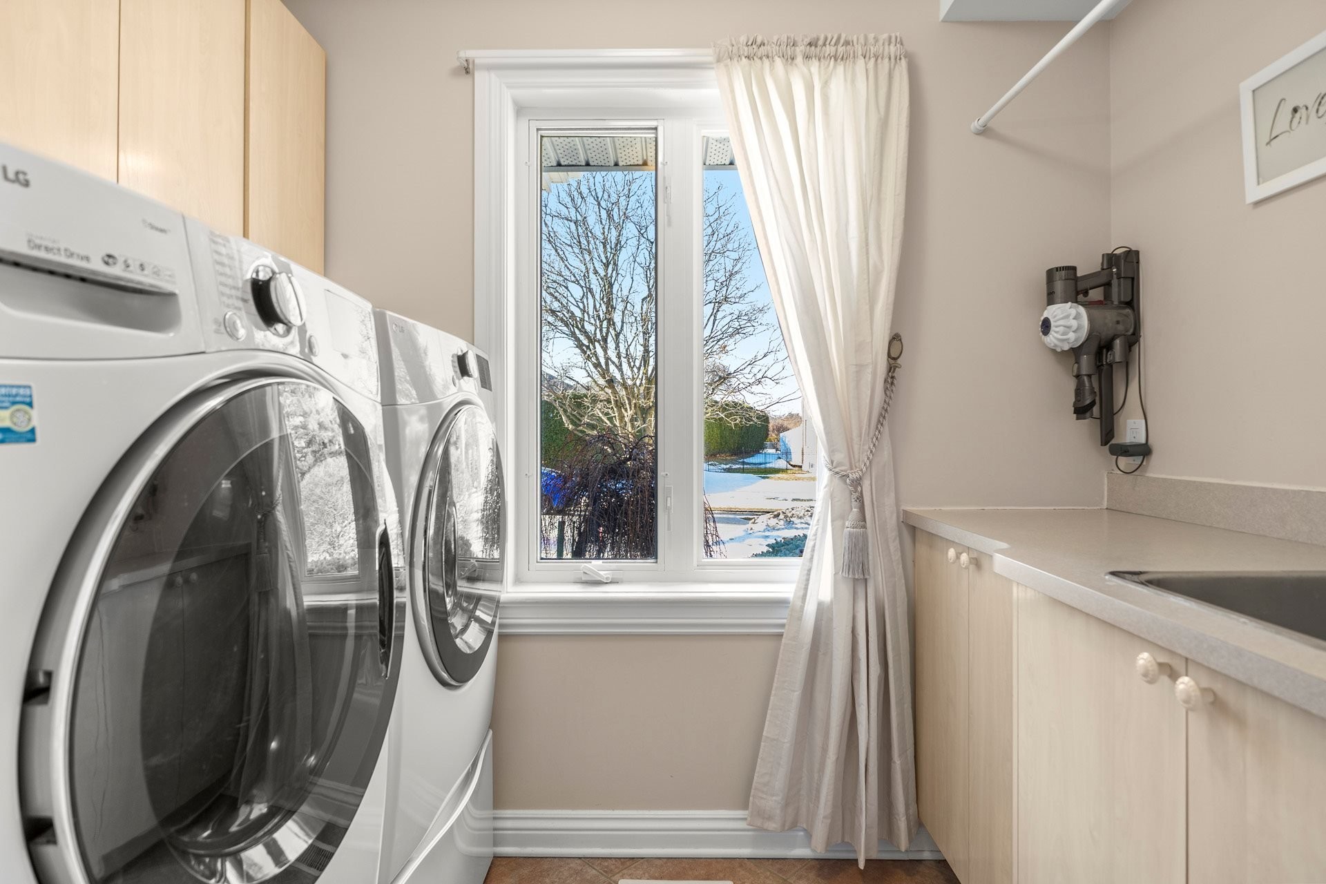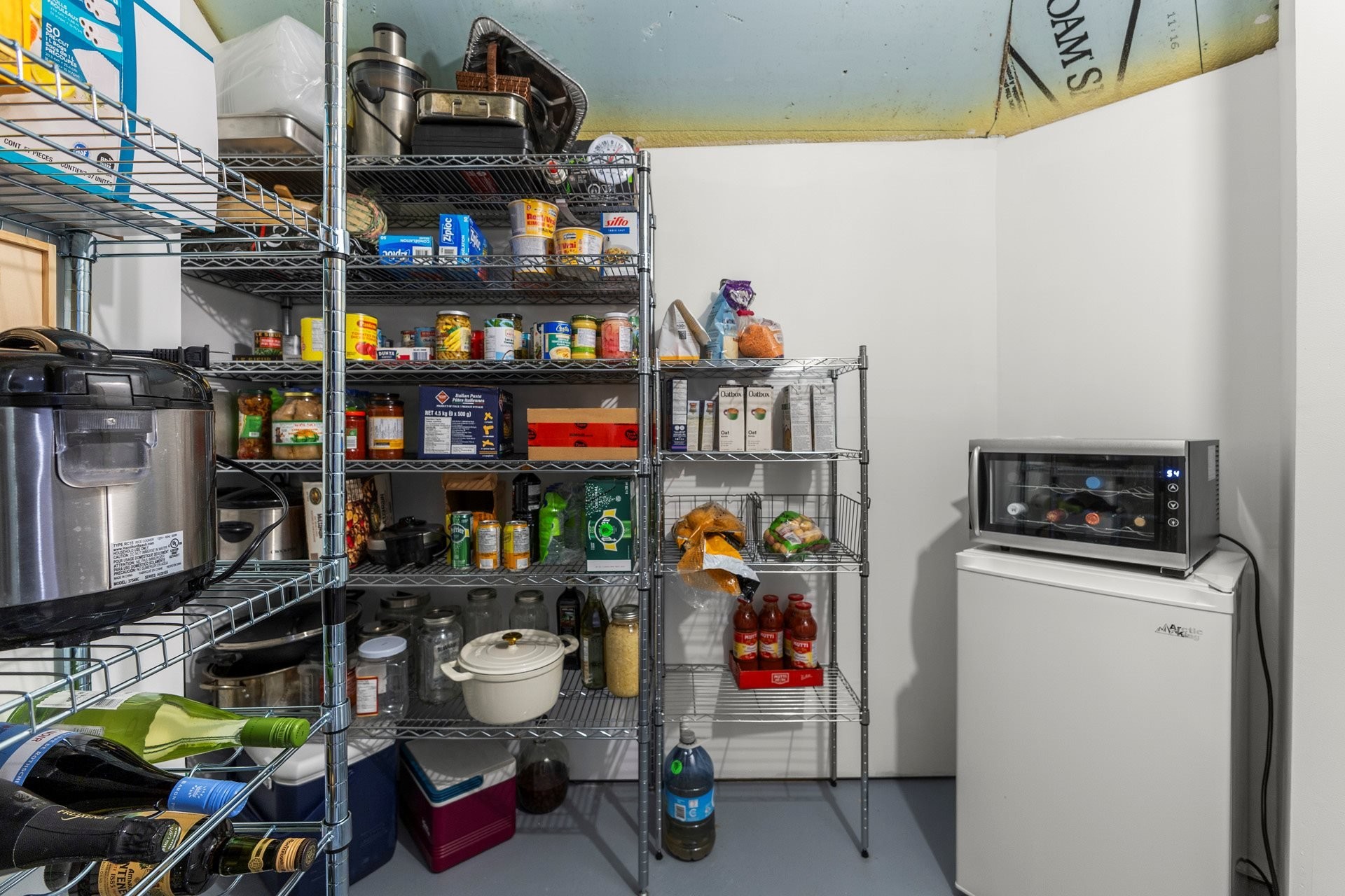 Laveuse & sècheuse LG, les étagères de l'atelier et de la chambre froide.