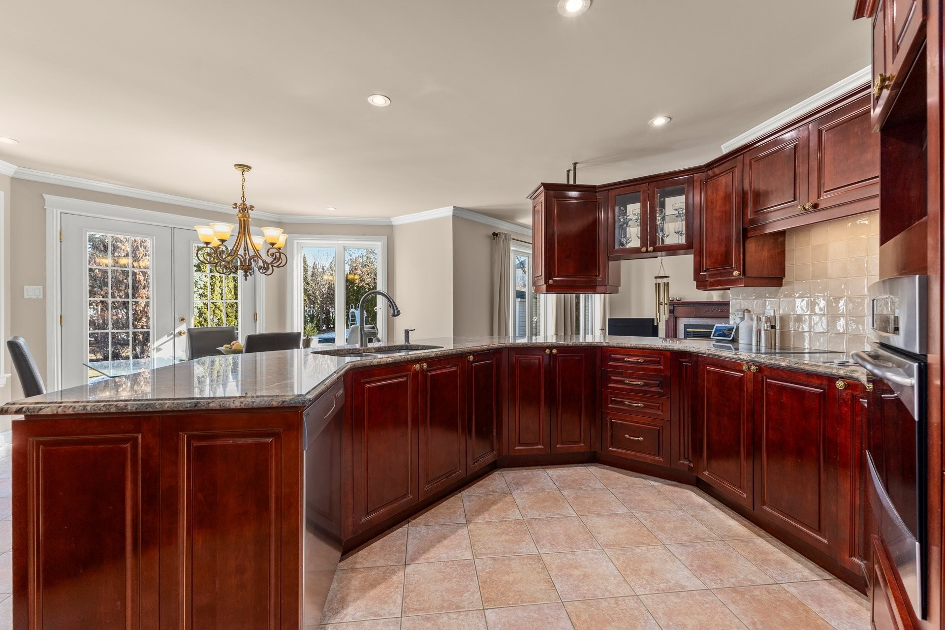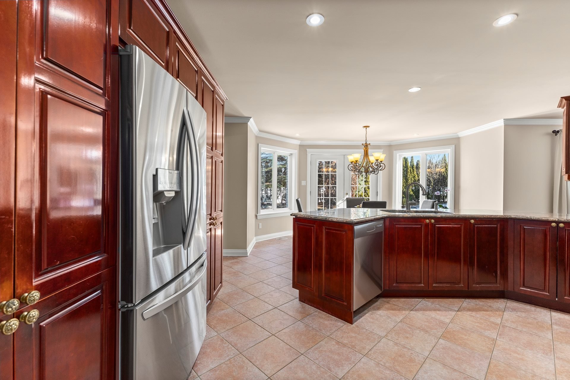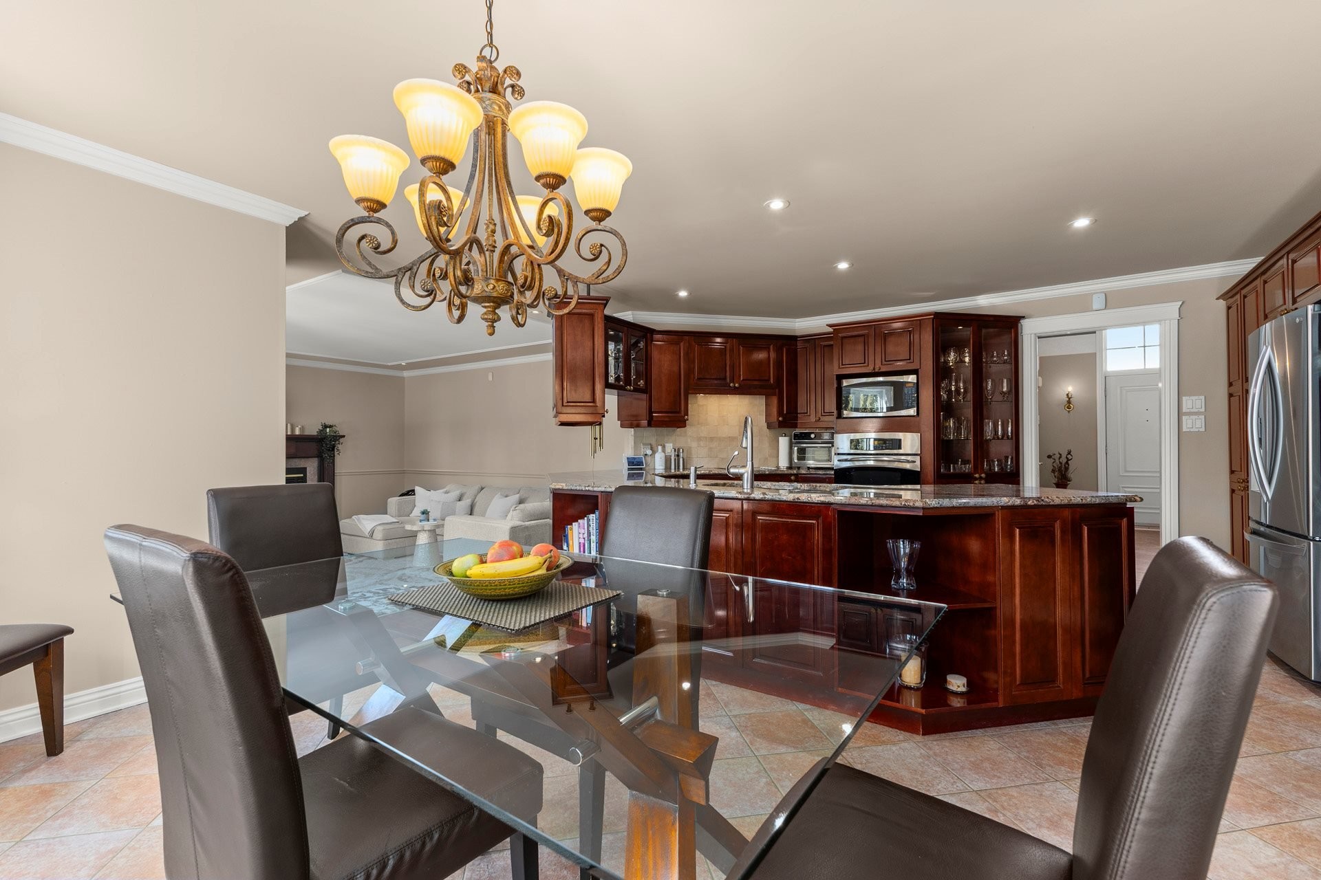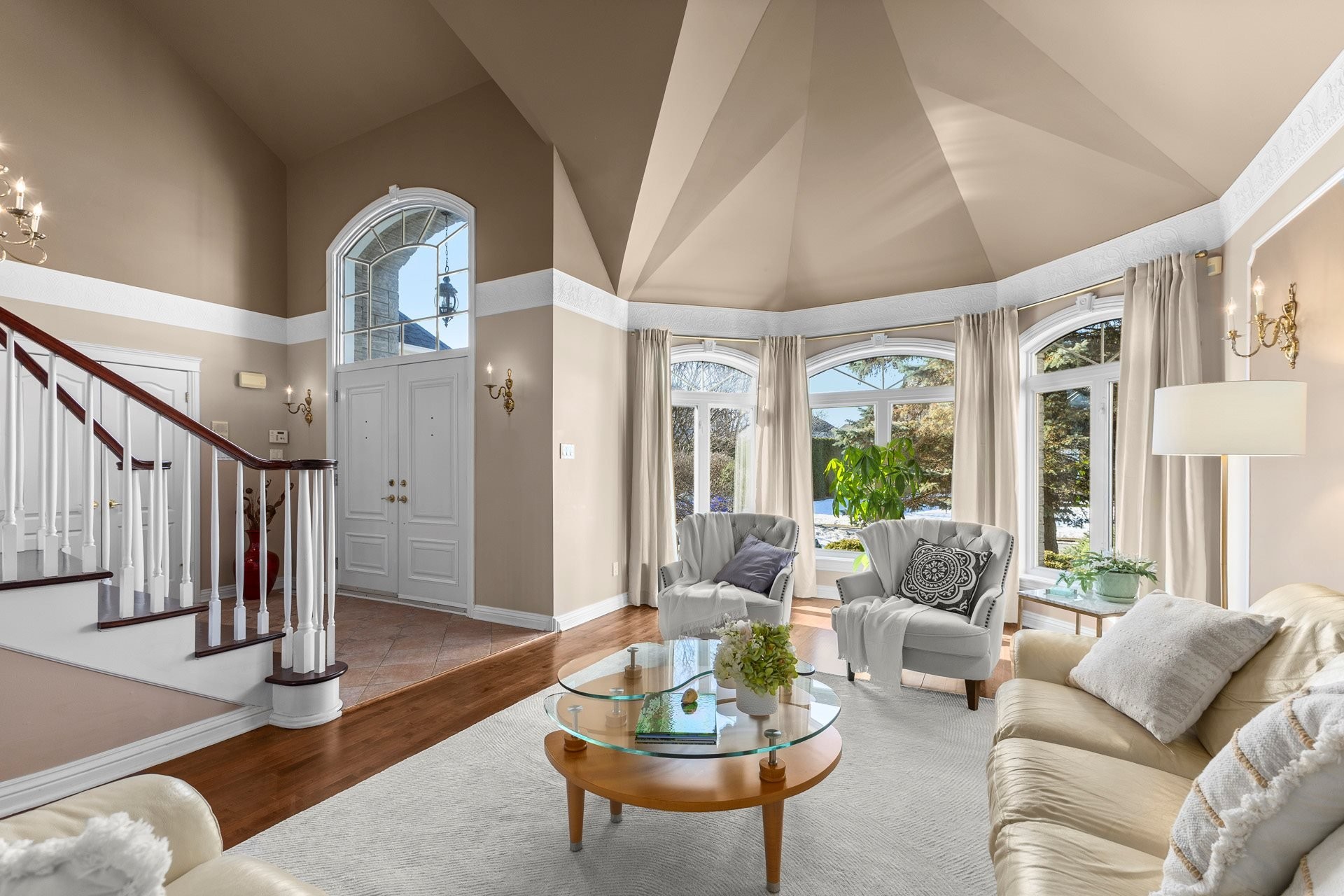 Offrant des plafonds cathédrale impressionnants, un majestueux escalier circulaire et de vastes espaces de vie inondés de lumière naturelle, cette demeure impeccablement entretenue marie à la perfection luxe intemporel et confort moderne. La cuisine gastronomique, dotée d'armoires en érable, d'un îlot central en granit et d'électroménagers haut de gamme inclus, s'ouvre harmonieusement sur une chaleureuse salle familiale avec foyer au bois -- un espace idéal pour recevoir en toute élégance.