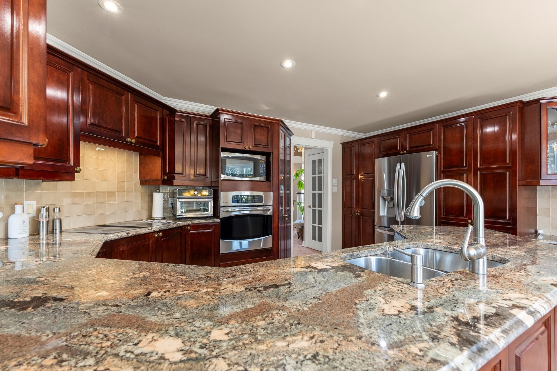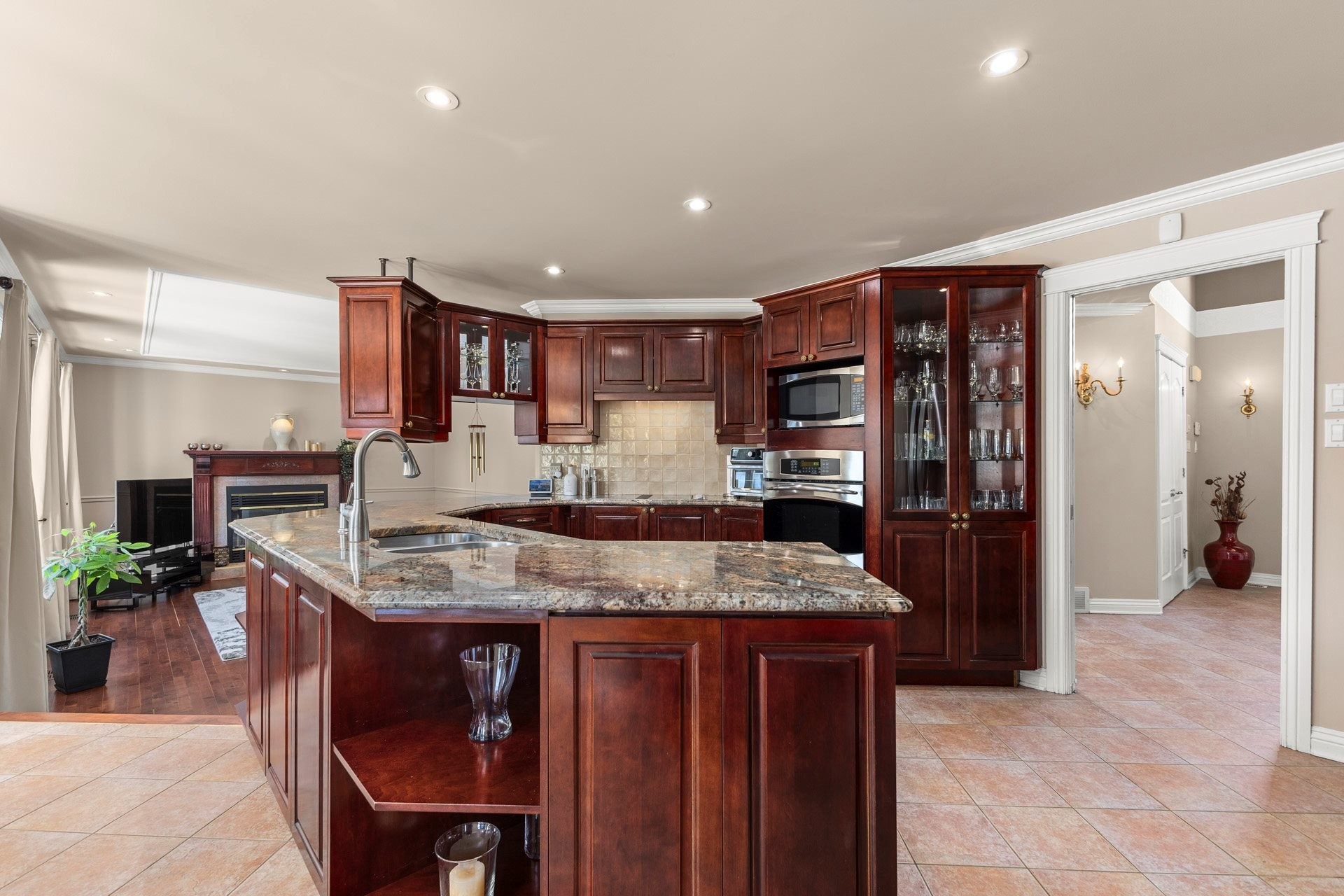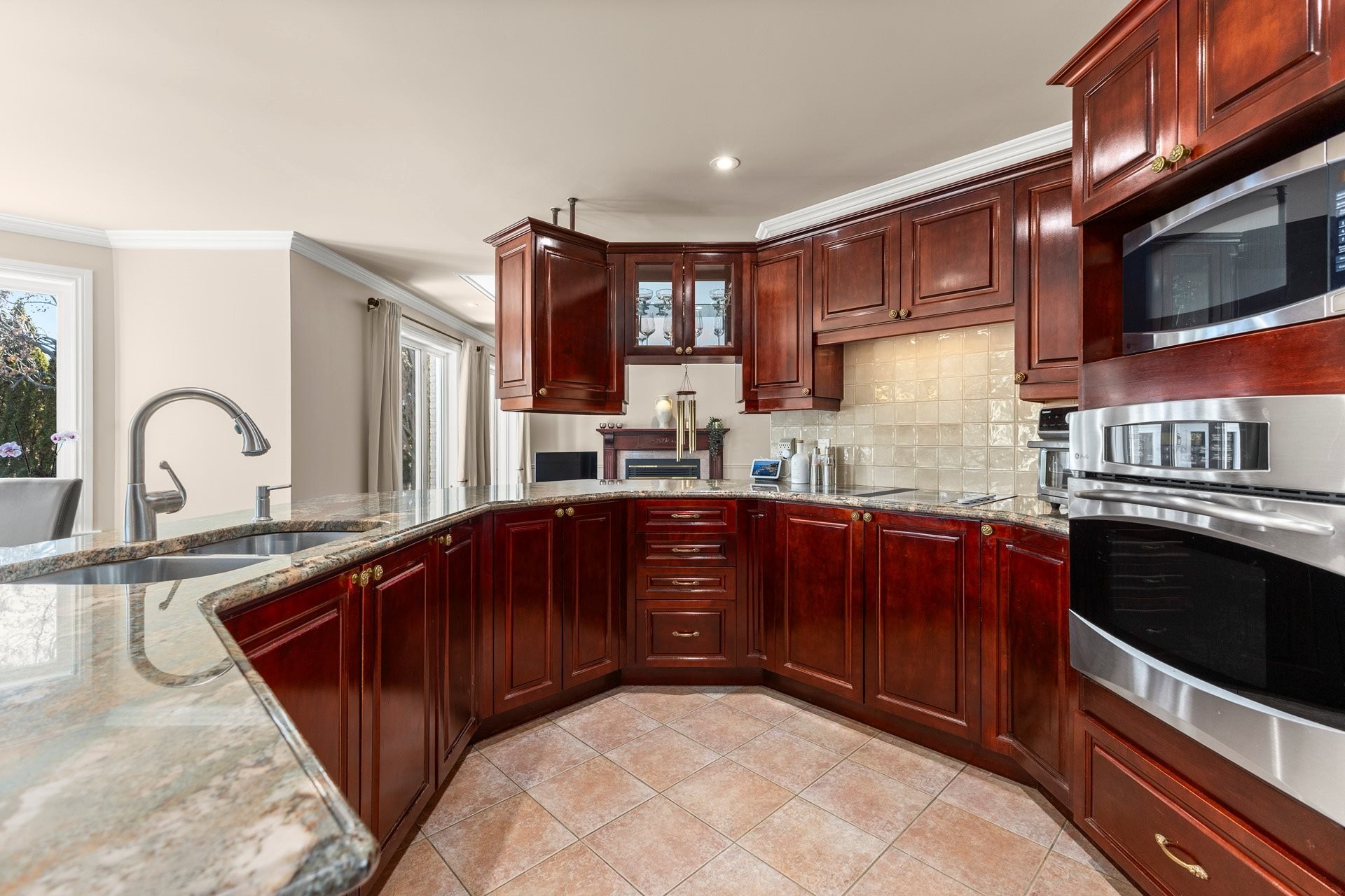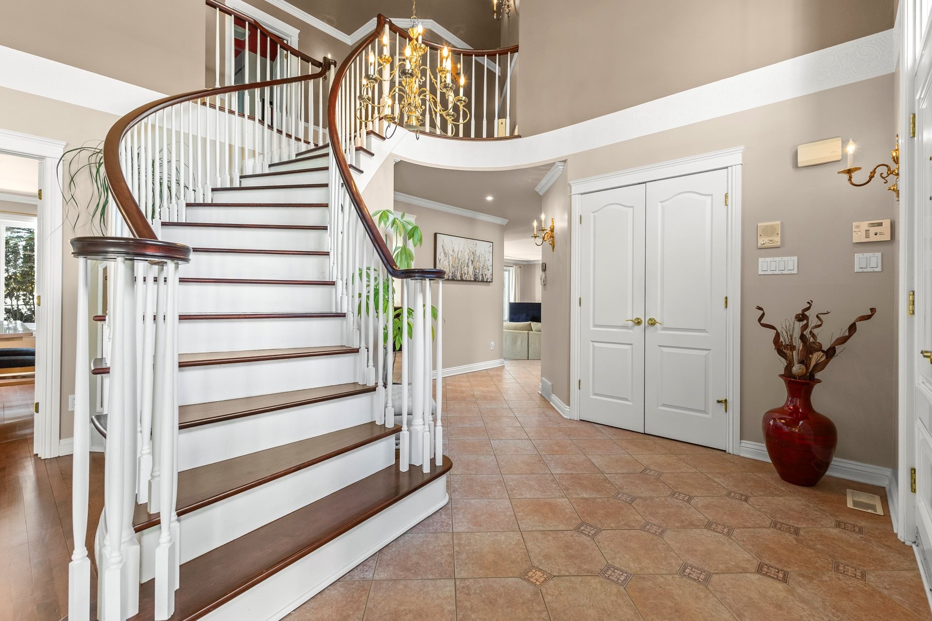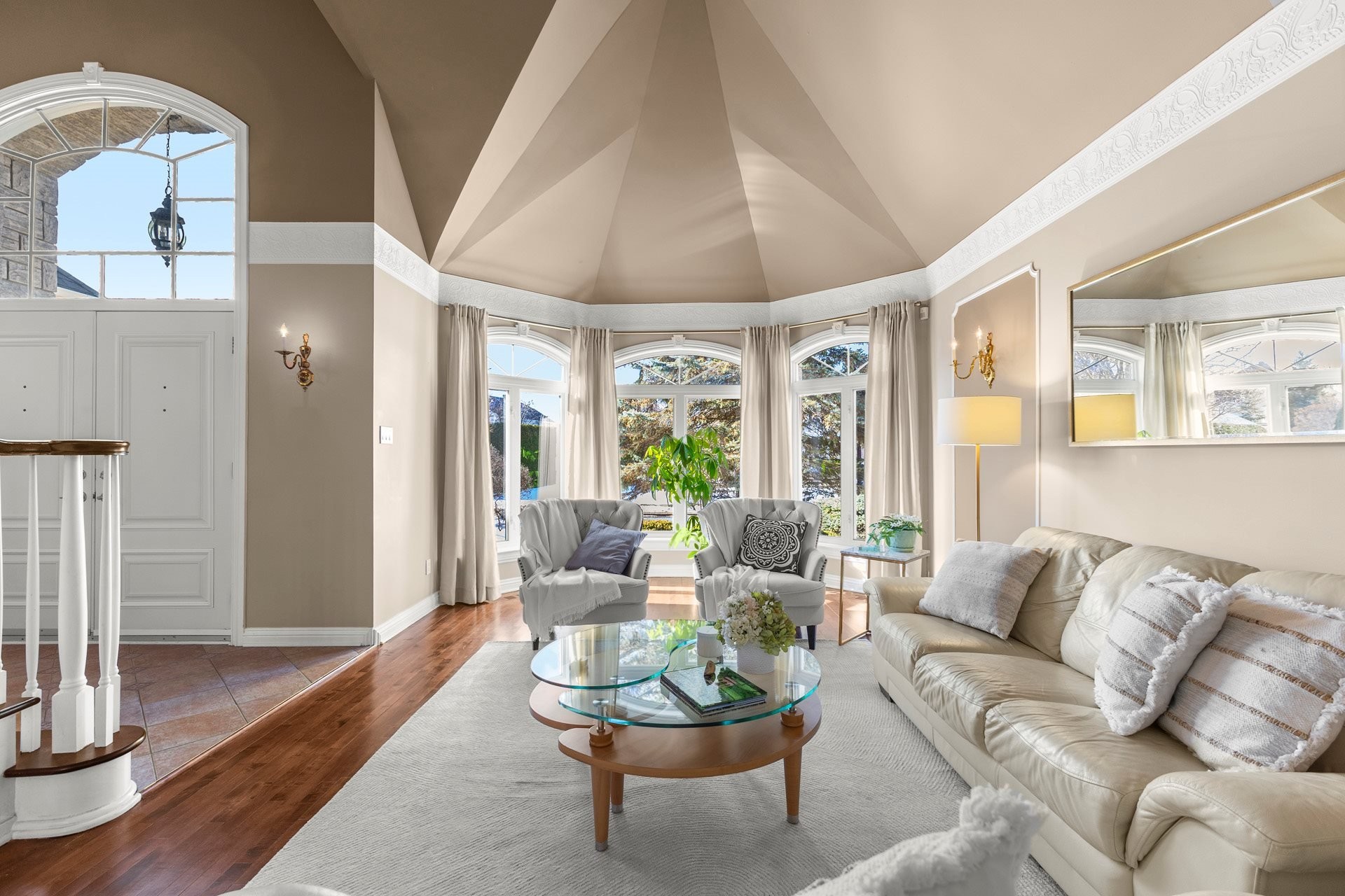 Offrant des plafonds cathédrale impressionnants, un majestueux escalier circulaire et de vastes espaces de vie inondés de lumière naturelle, cette demeure impeccablement entretenue marie à la perfection luxe intemporel et confort moderne. La cuisine gastronomique, dotée d'armoires en érable, d'un îlot central en granit et d'électroménagers haut de gamme inclus, s'ouvre harmonieusement sur une chaleureuse salle familiale avec foyer au bois -- un espace idéal pour recevoir en toute élégance.
