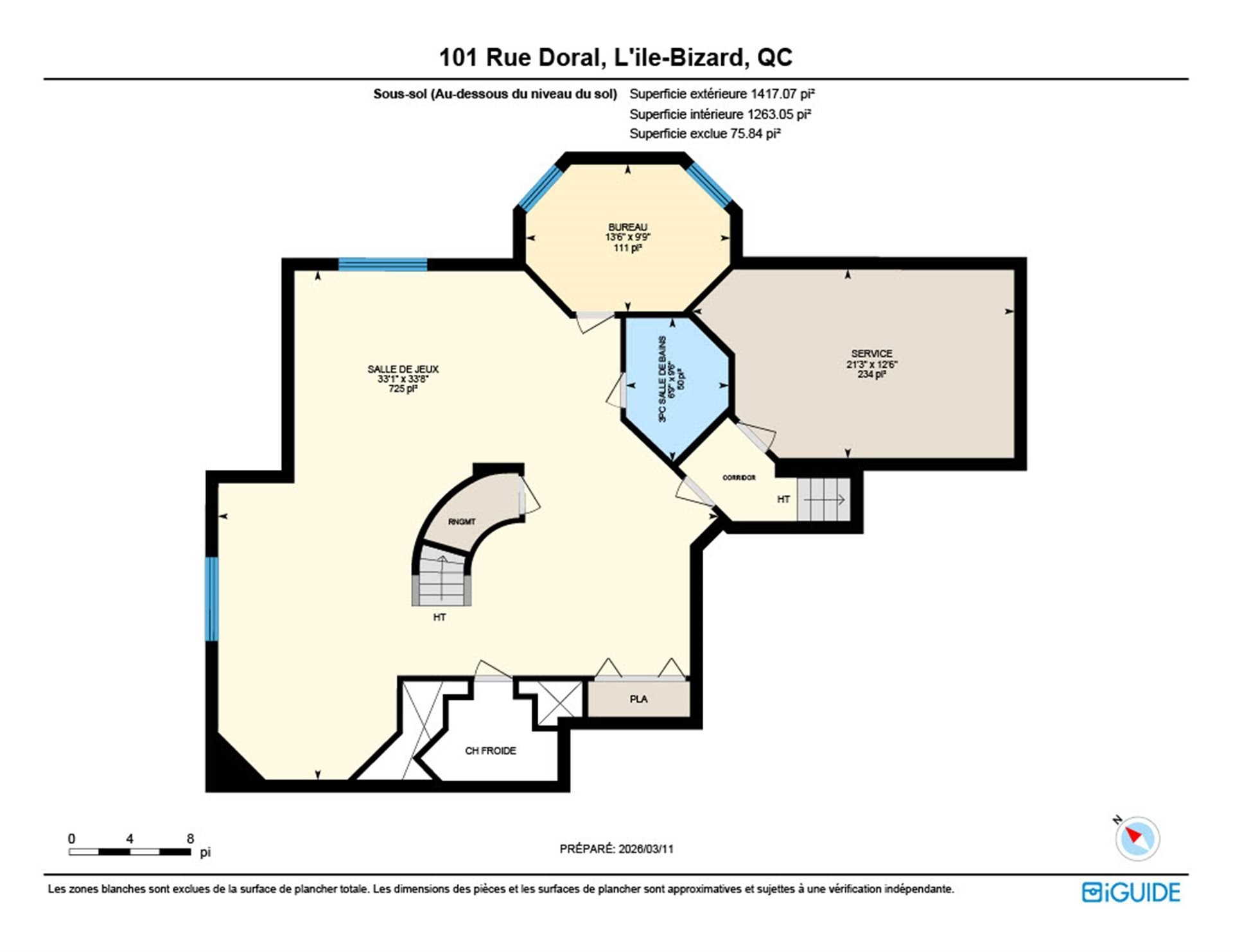 | Rangement | Sous-sol | 12.6x21.3 P | Béton | Chambre mécanique |