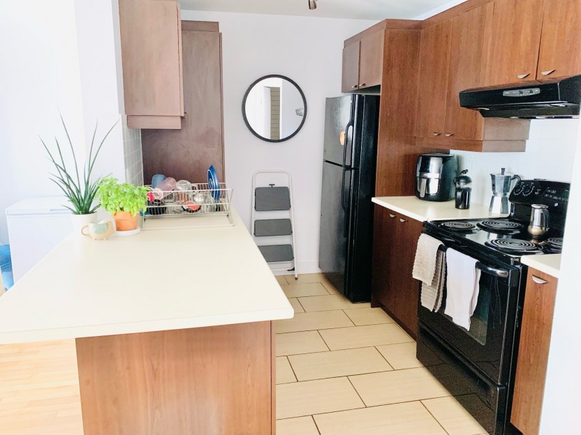 Réfrigérateur, cuisinière, lave-vaisselle, laveuse, sécheuse, stores.