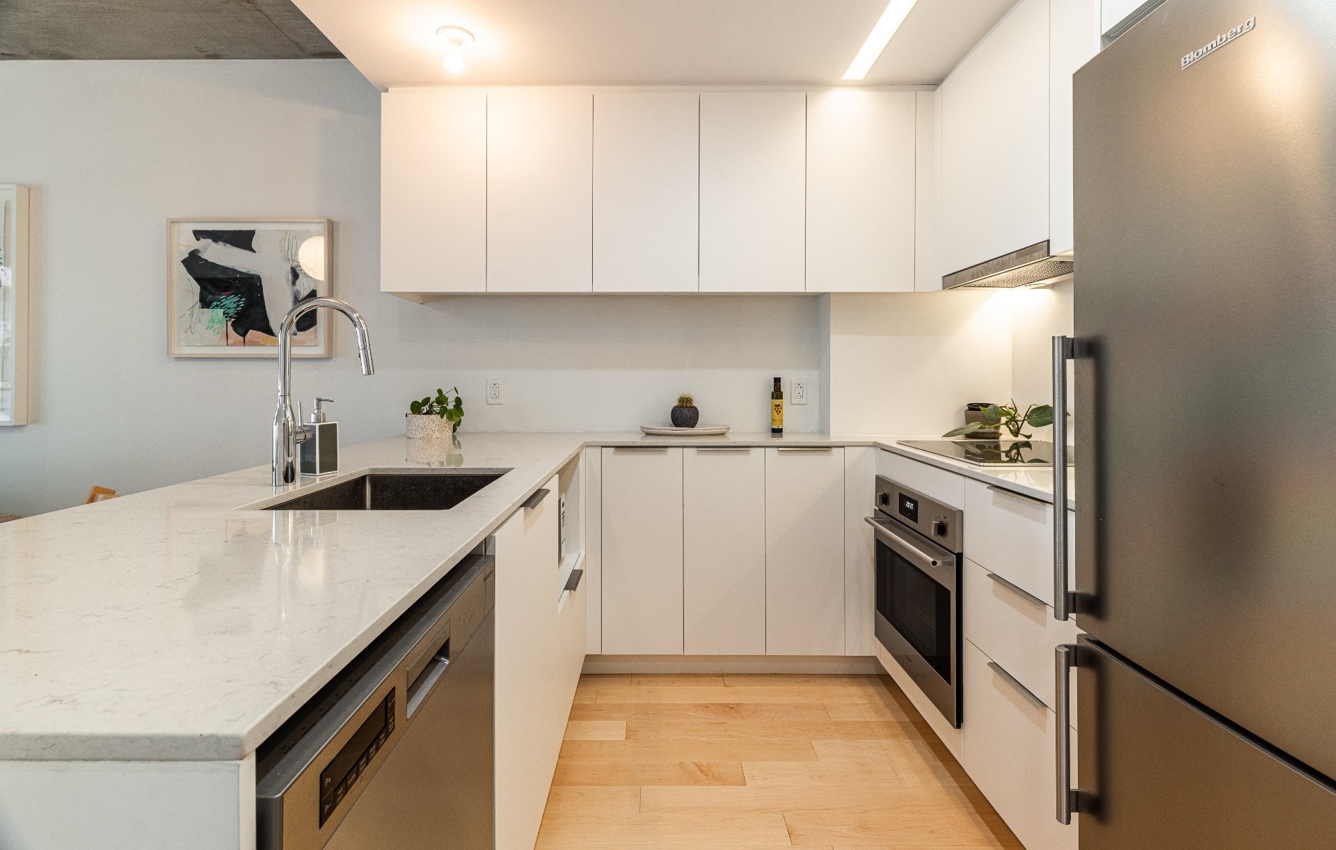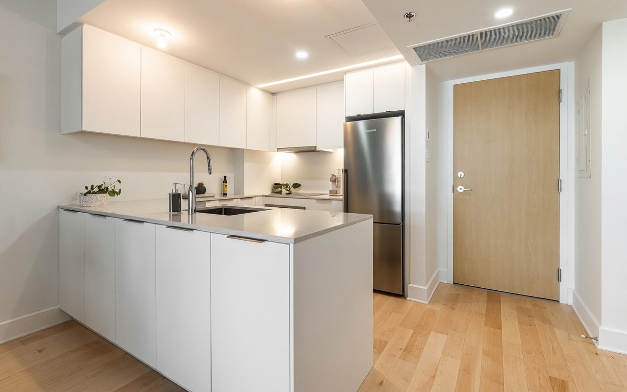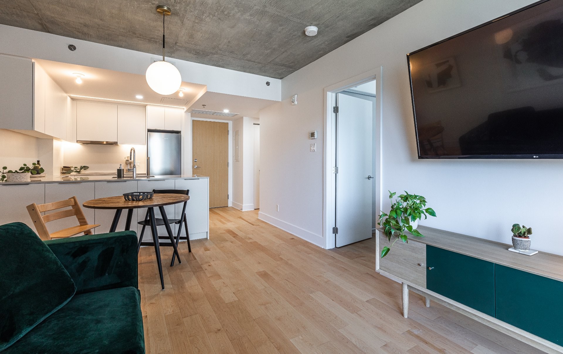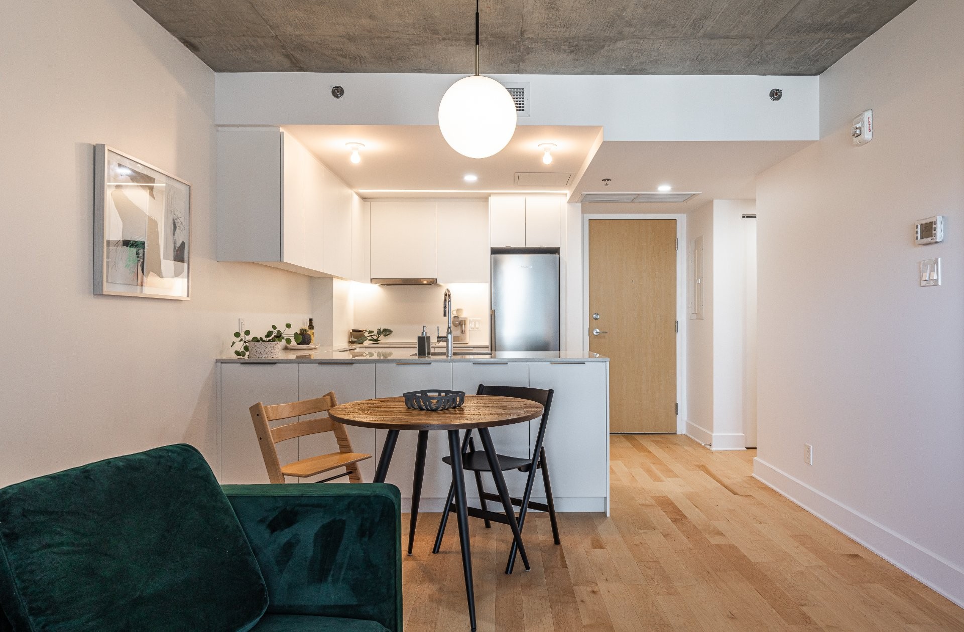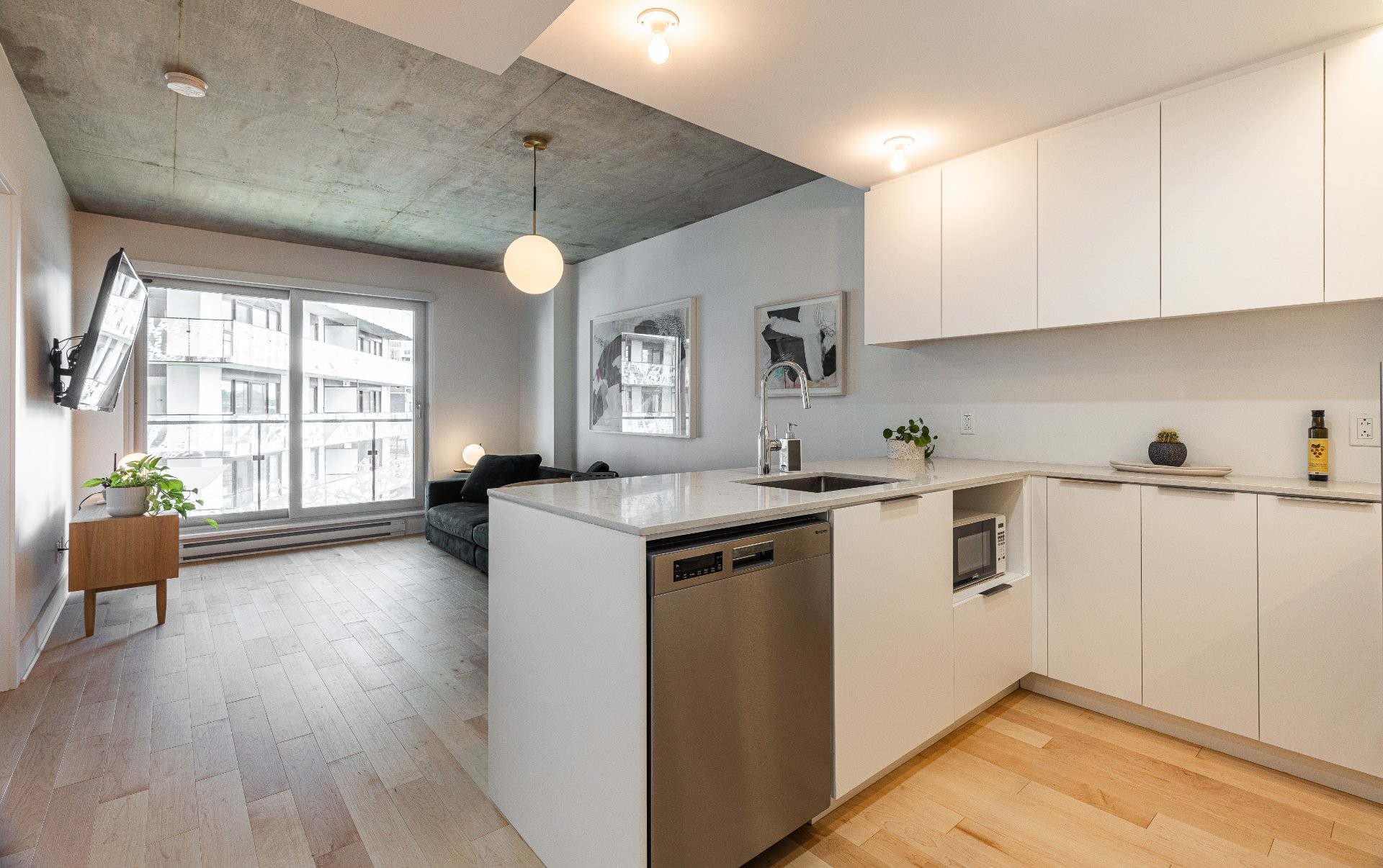 Lumineux et moderne, l'espace à aire ouverte est habillé de beaux planchers de bois franc clair qui traversent tout l'unité et apportent une chaleur naturelle. La cuisine est un véritable coup de coeur avec ses comptoirs en quartz élégants, son îlot central spacieux et une quantité impressionnante de rangement dans les armoires sur mesure. La chambre principale bénéficie de placards intégrés sur mesure pour un maximum d'organisation, tandis que la salle de bain arbore les mêmes finitions raffinées en quartz. Un balcon privé offrant une vue sur le canal Lachine complète cet espace invitant.