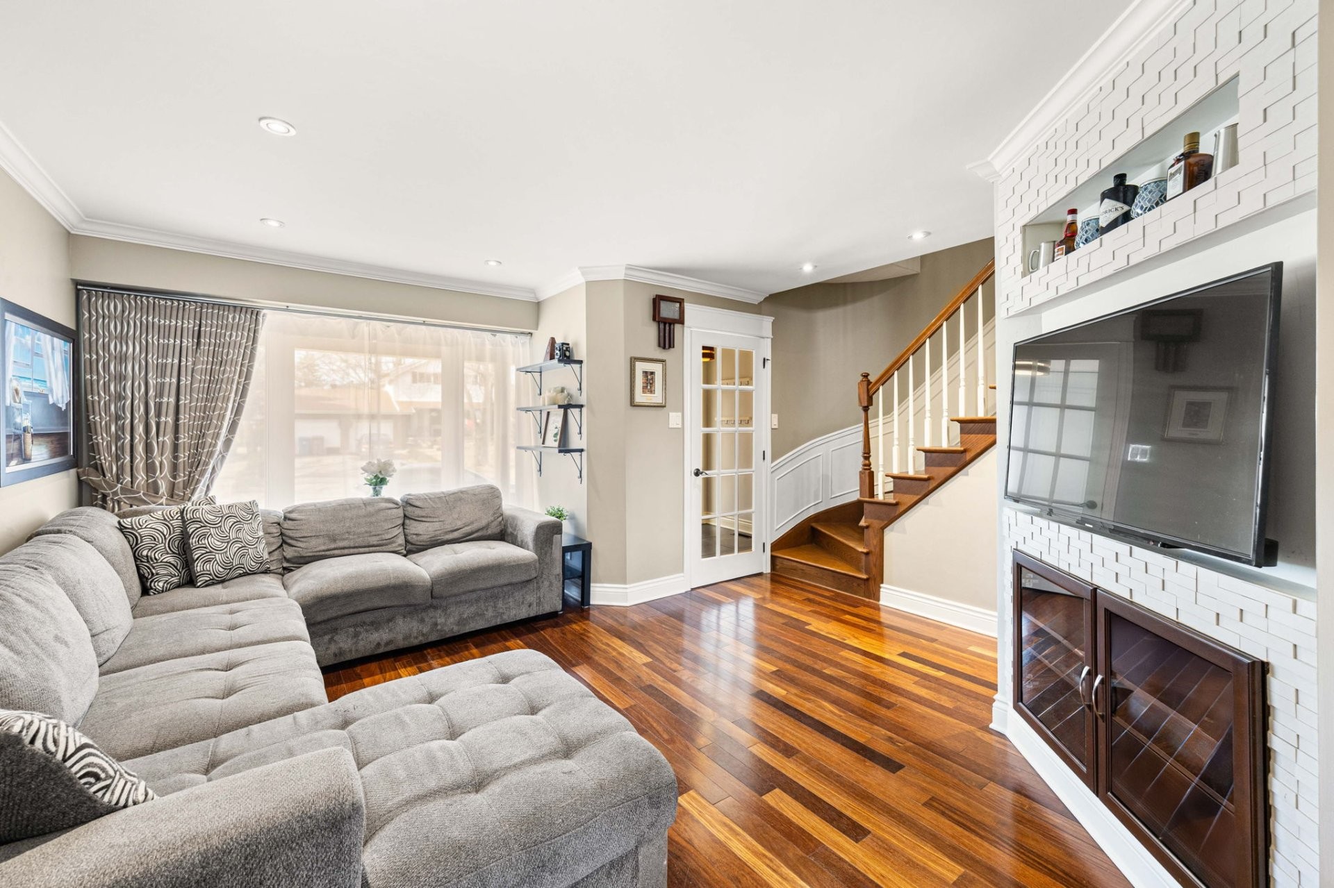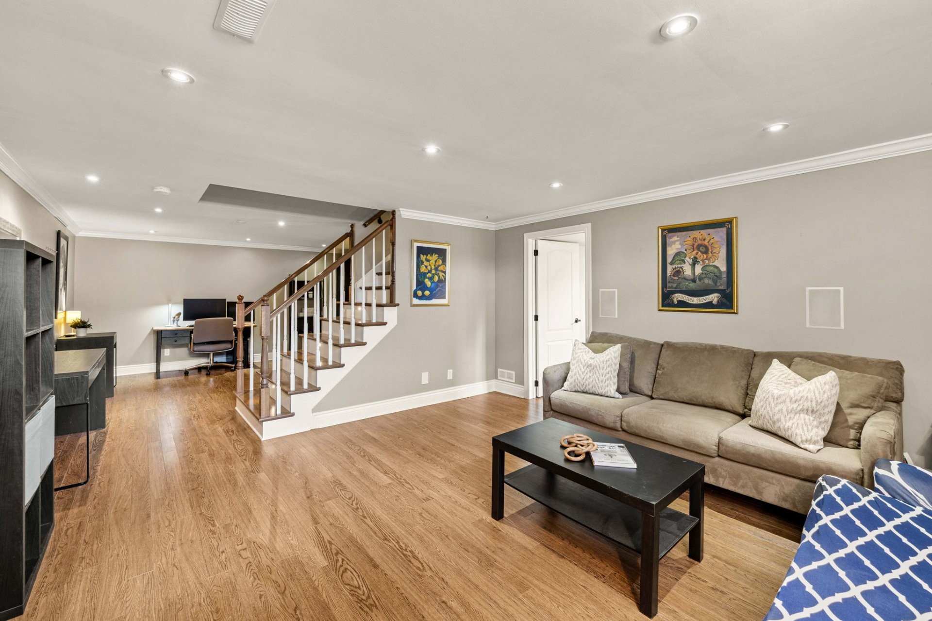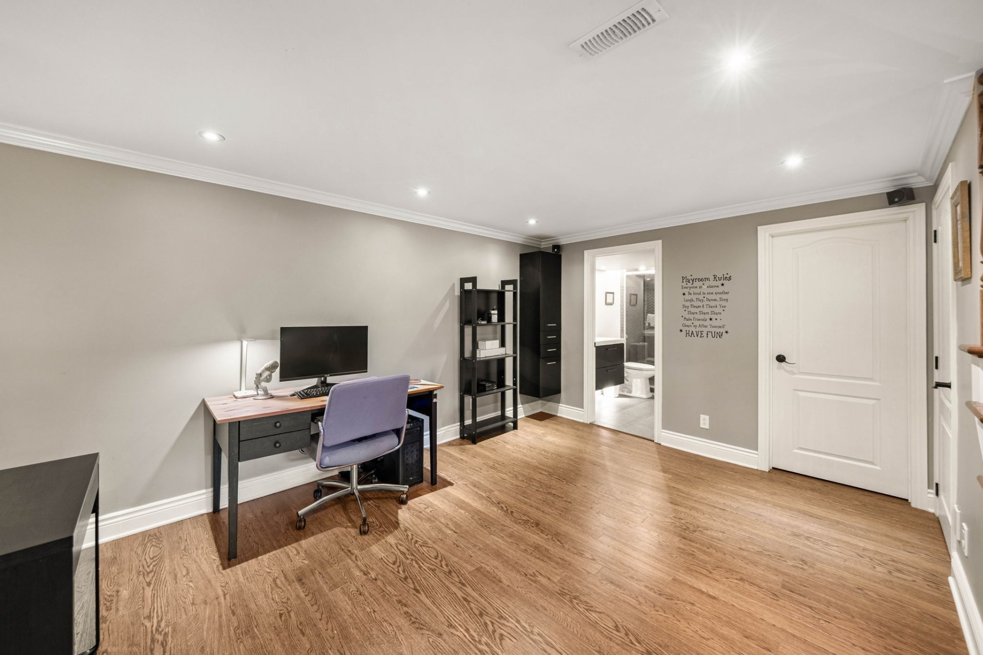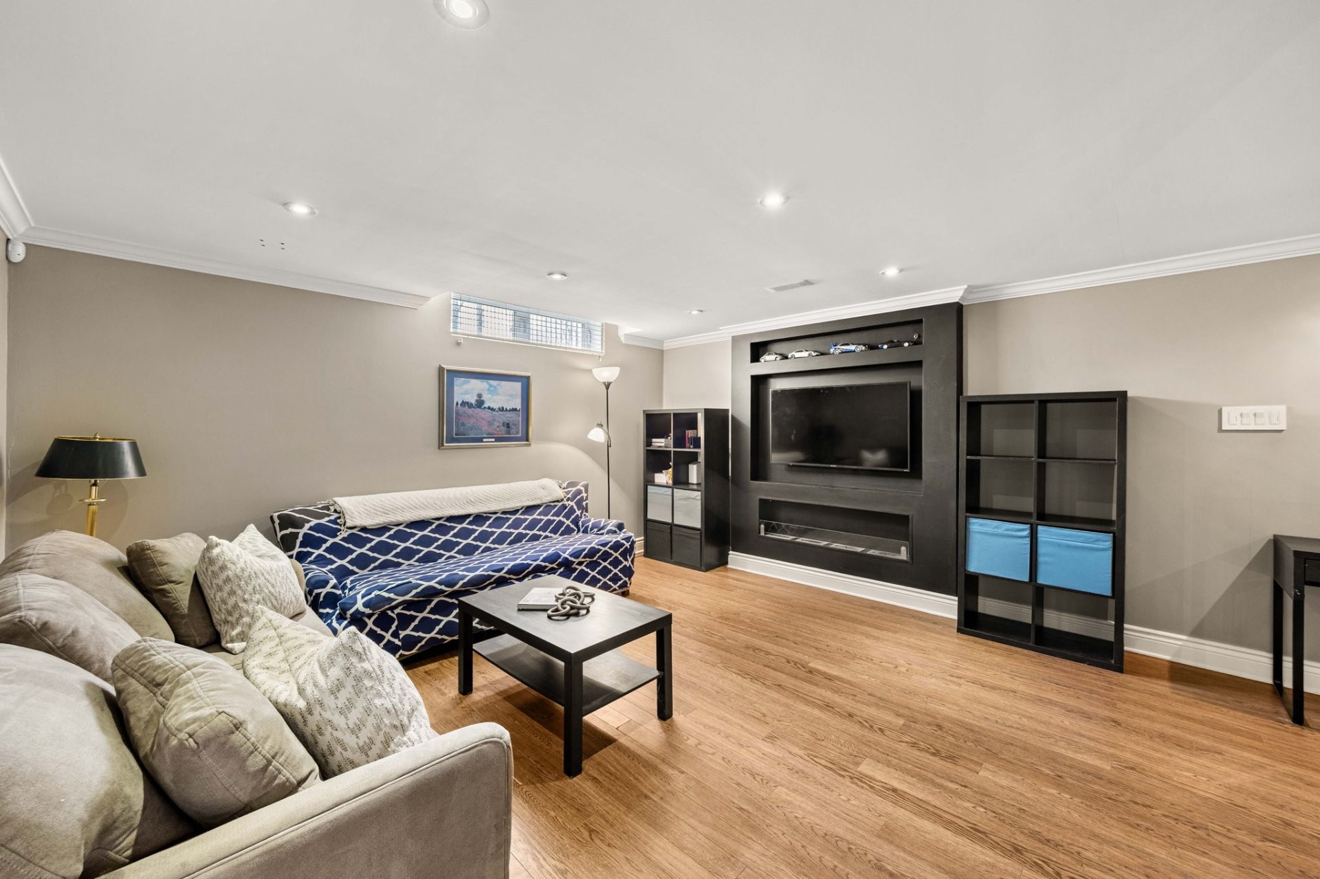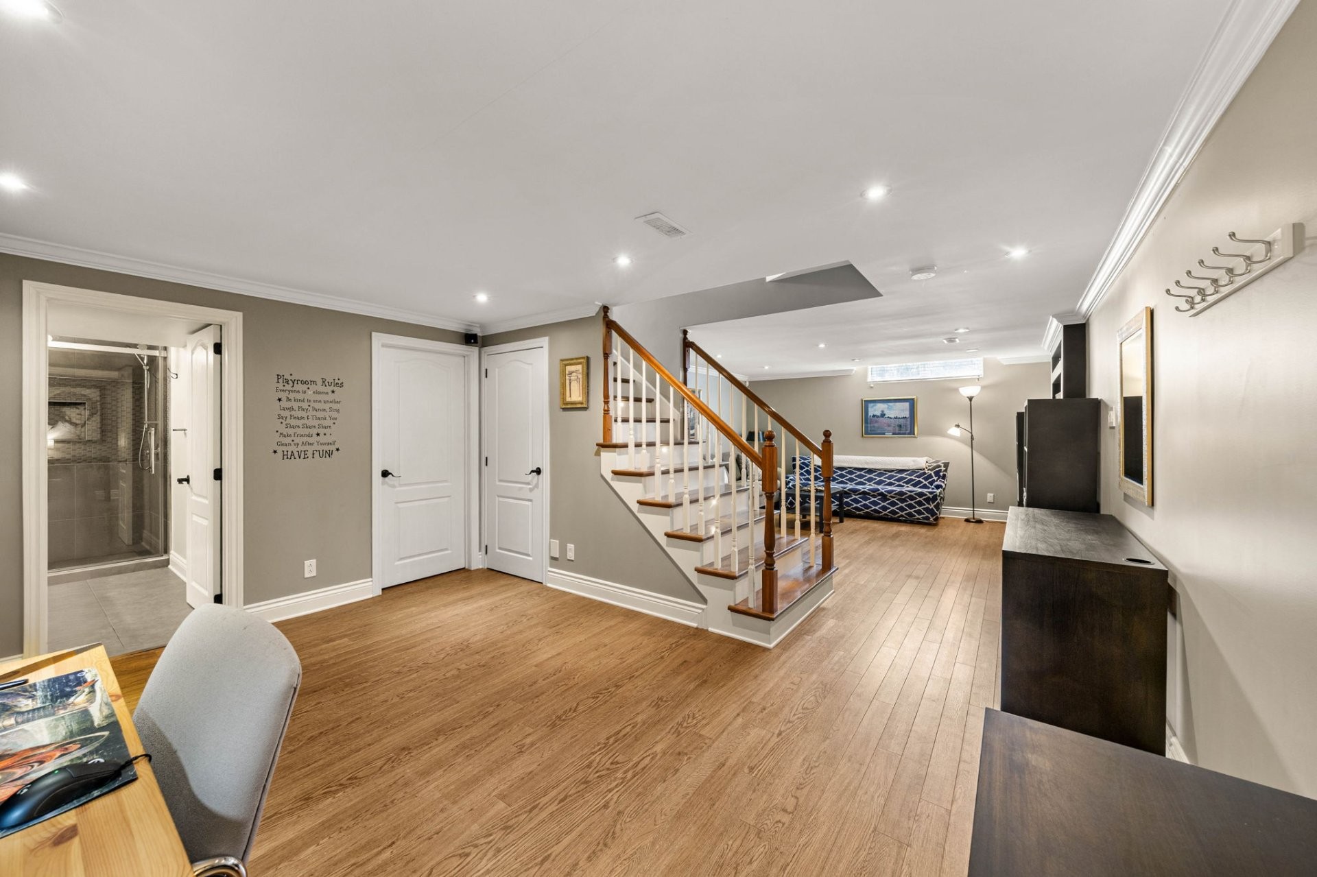 Le sous-sol entièrement aménagé offre d'excellents espaces de vie supplémentaires, incluant un grand salon familial, une chambre additionnelle, un espace pouvant servir de bureau à domicile, ainsi qu'une salle de bain complète avec grande douche et plancher chauffant. Idéal pour les familles qui s'agrandissent ou pour les invités.