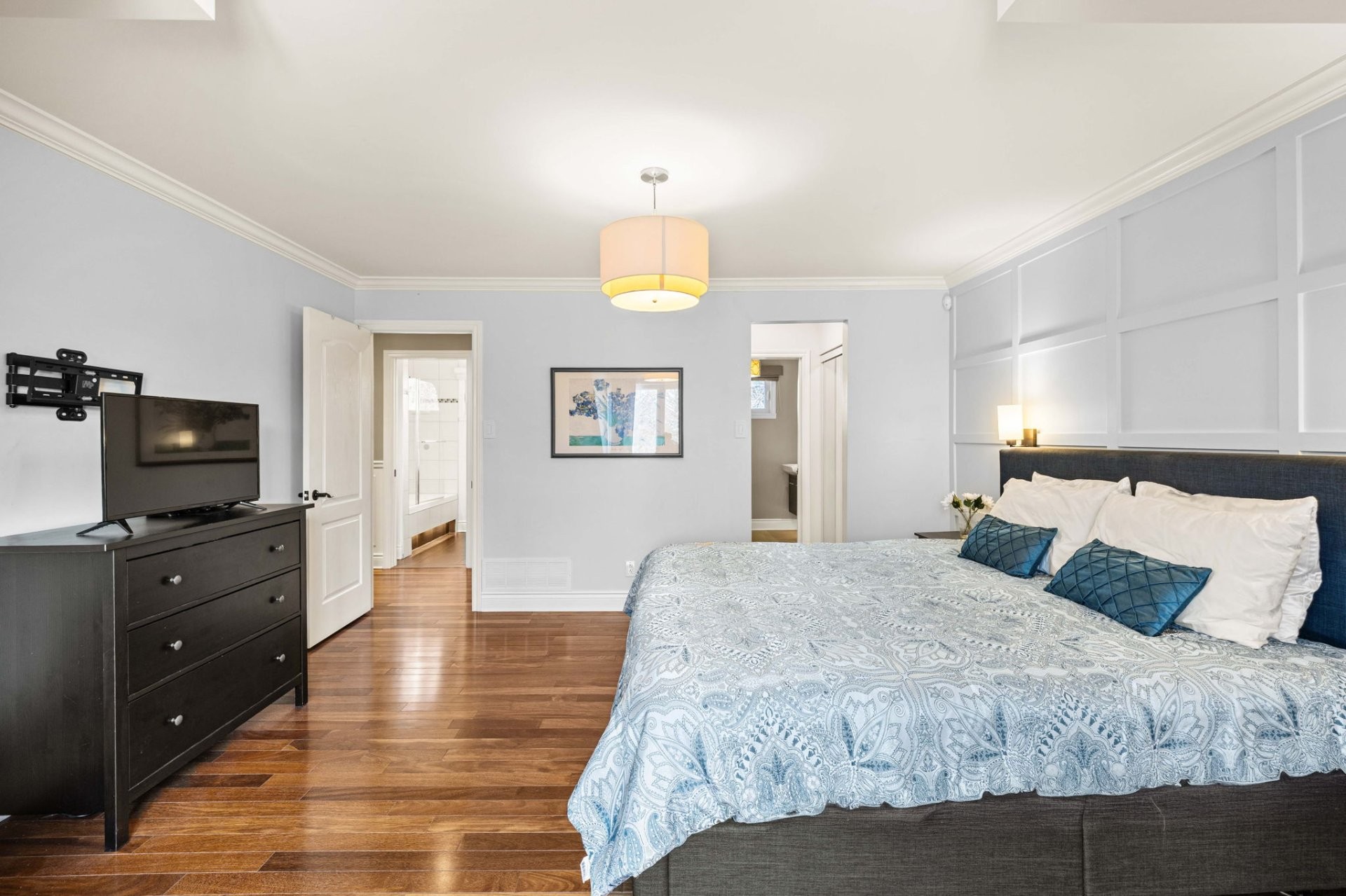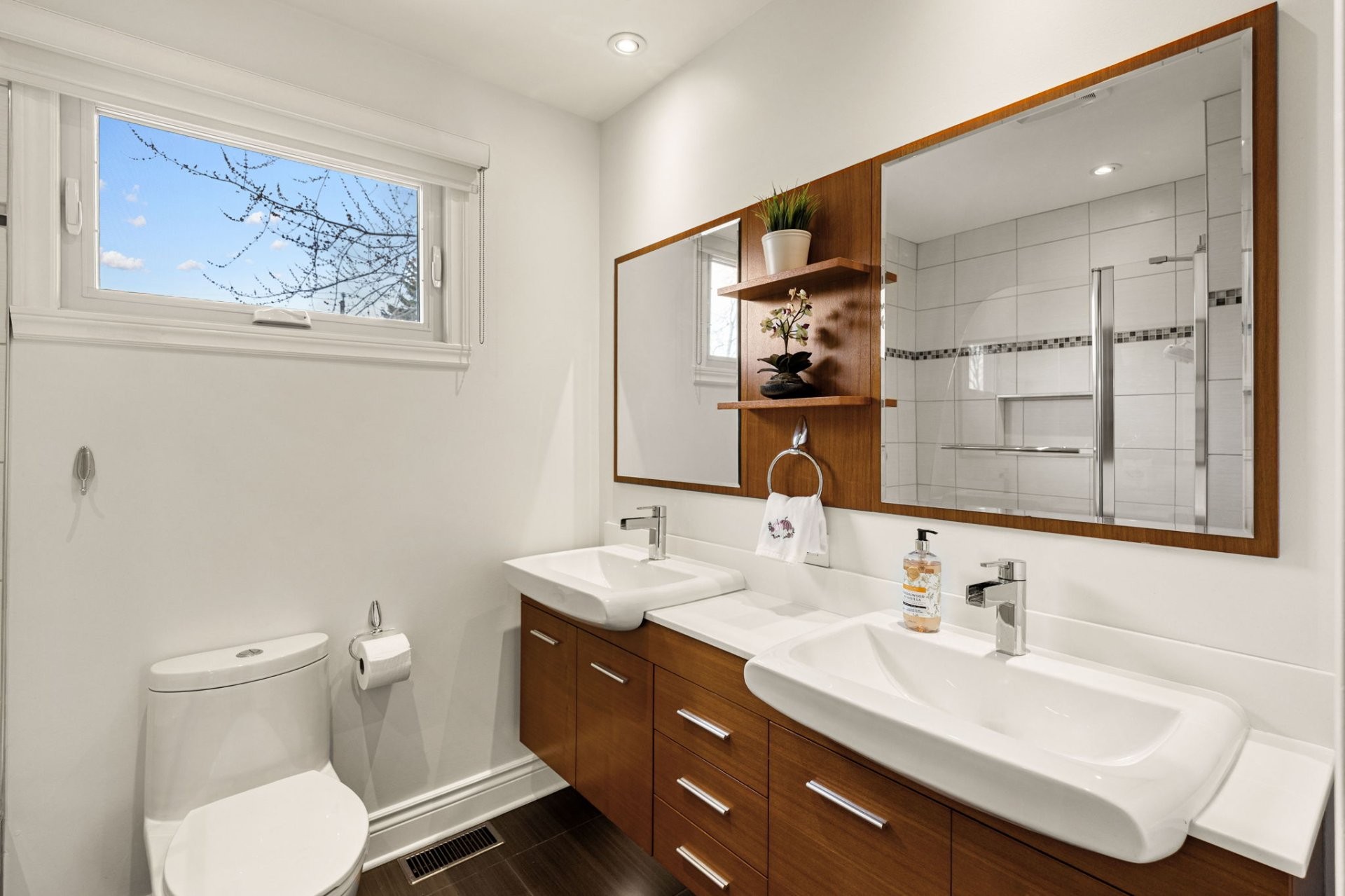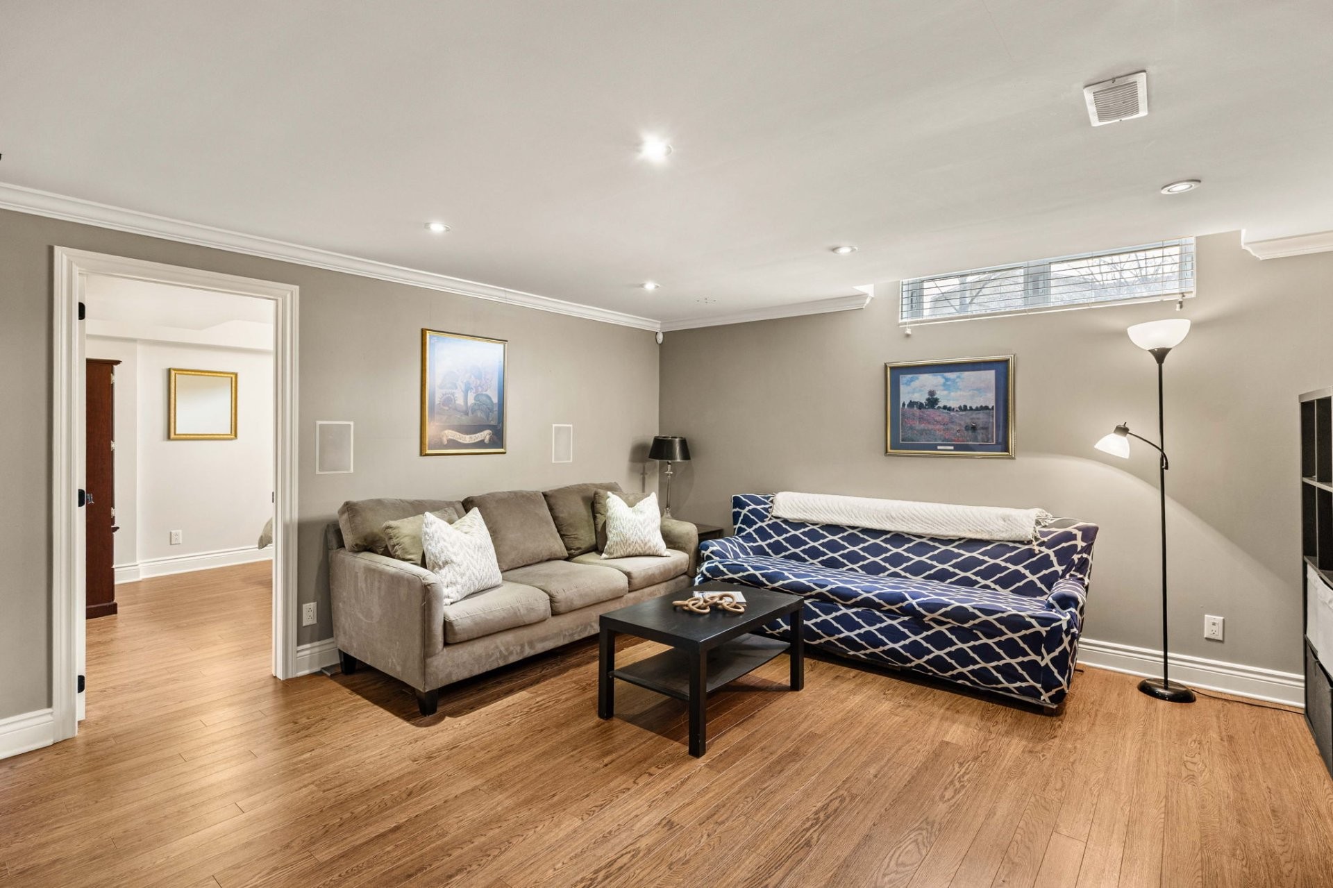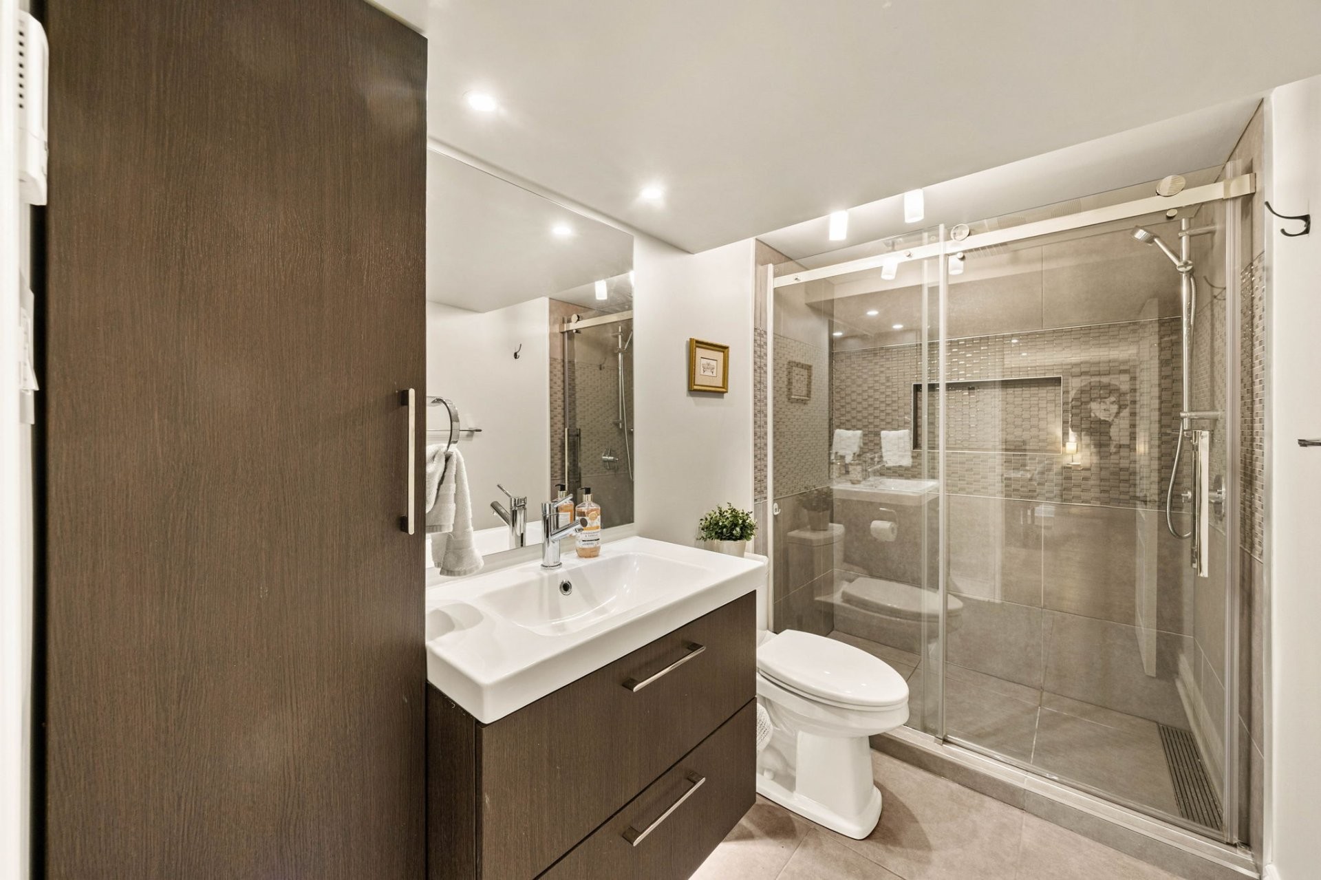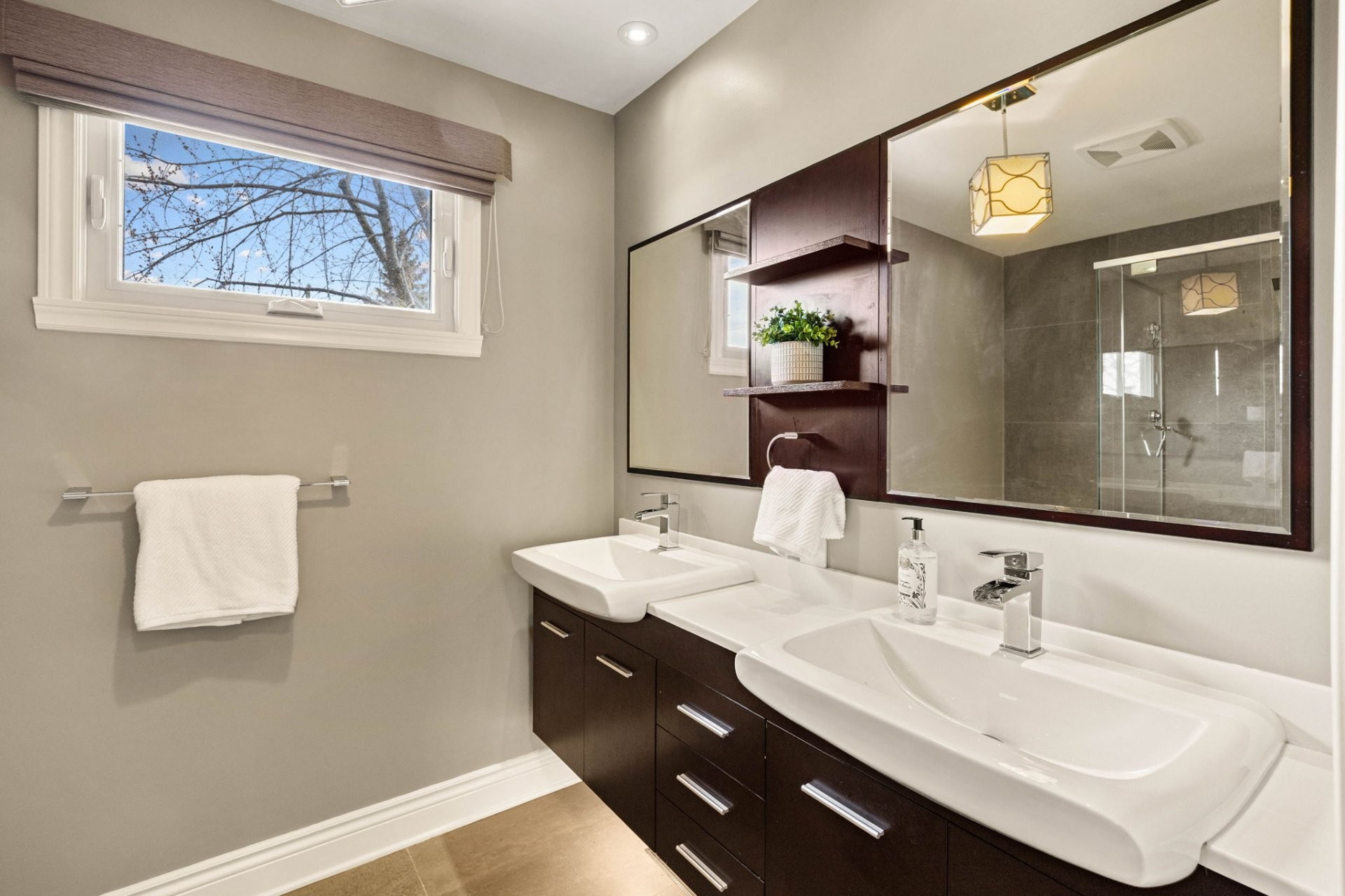 Le sous-sol entièrement aménagé offre d'excellents espaces de vie supplémentaires, incluant un grand salon familial, une chambre additionnelle, un espace pouvant servir de bureau à domicile, ainsi qu'une salle de bain complète avec grande douche et plancher chauffant. Idéal pour les familles qui s'agrandissent ou pour les invités.