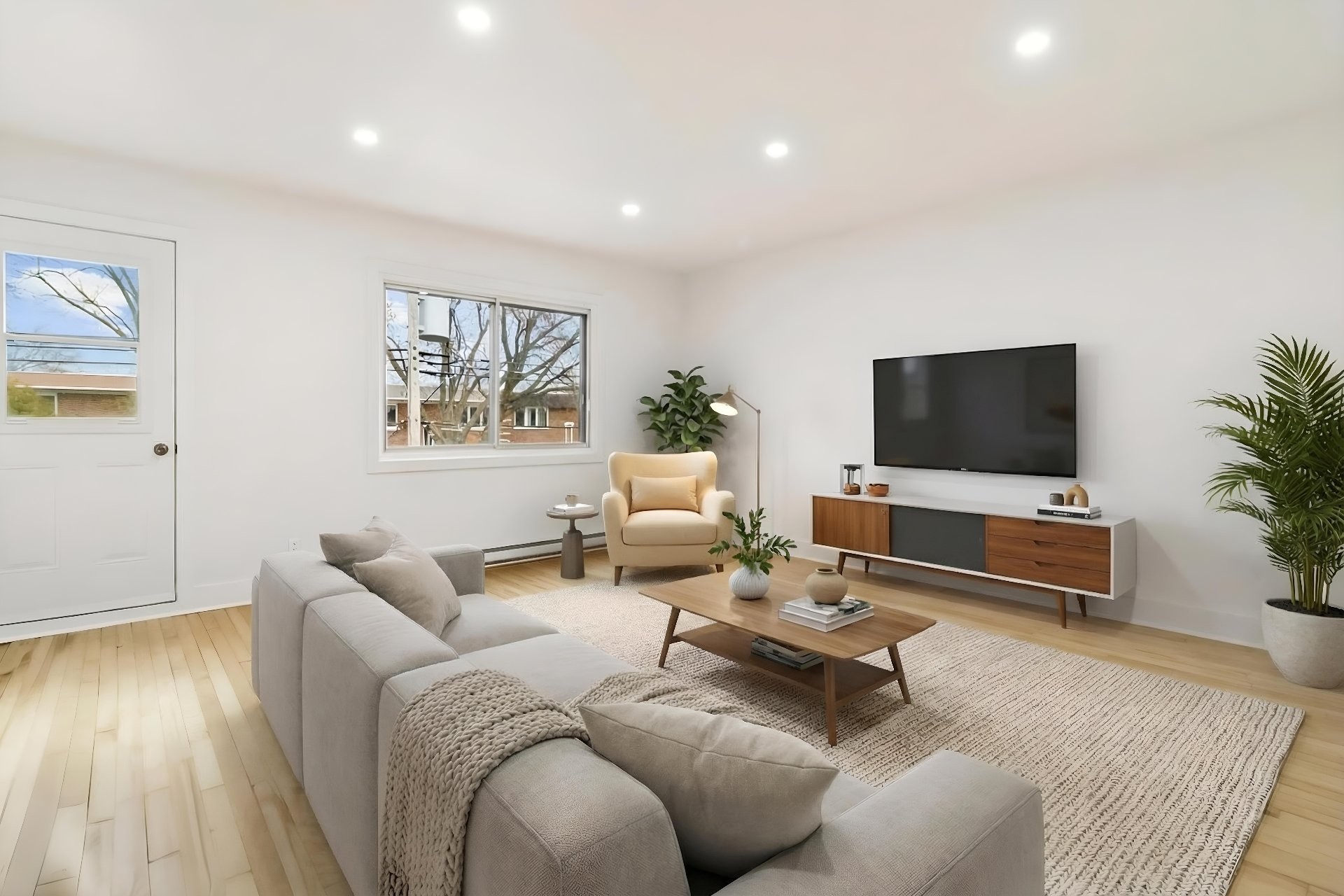 Appartement à l'étage supérieur (2e étage) magnifiquement rénové, alliant style moderne et grand confort. Il dispose d'une cuisine toute neuve avec comptoirs en quartz élégants, armoires raffinées et finitions contemporaines, conçue pour allier fonctionnalité et esthétisme.