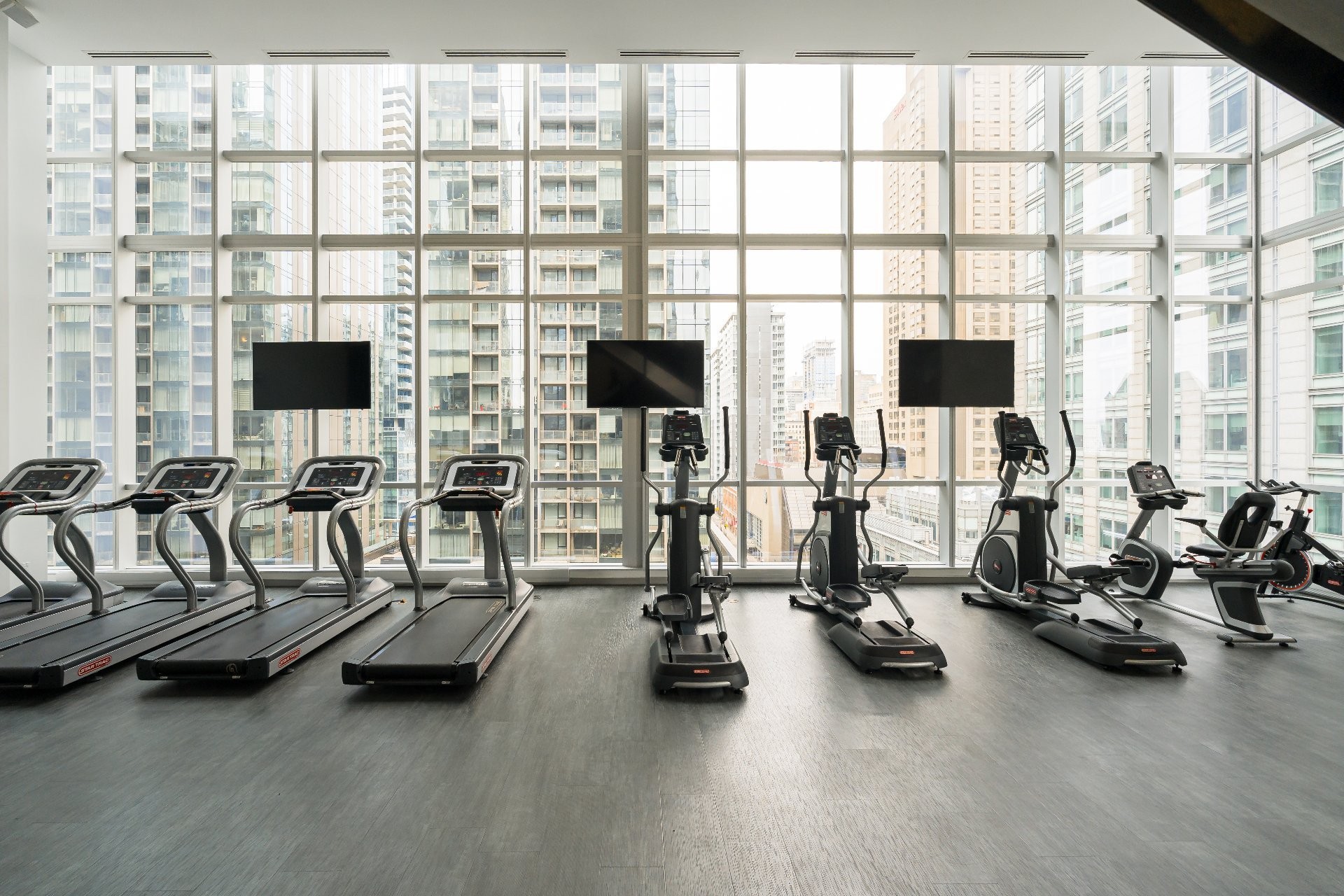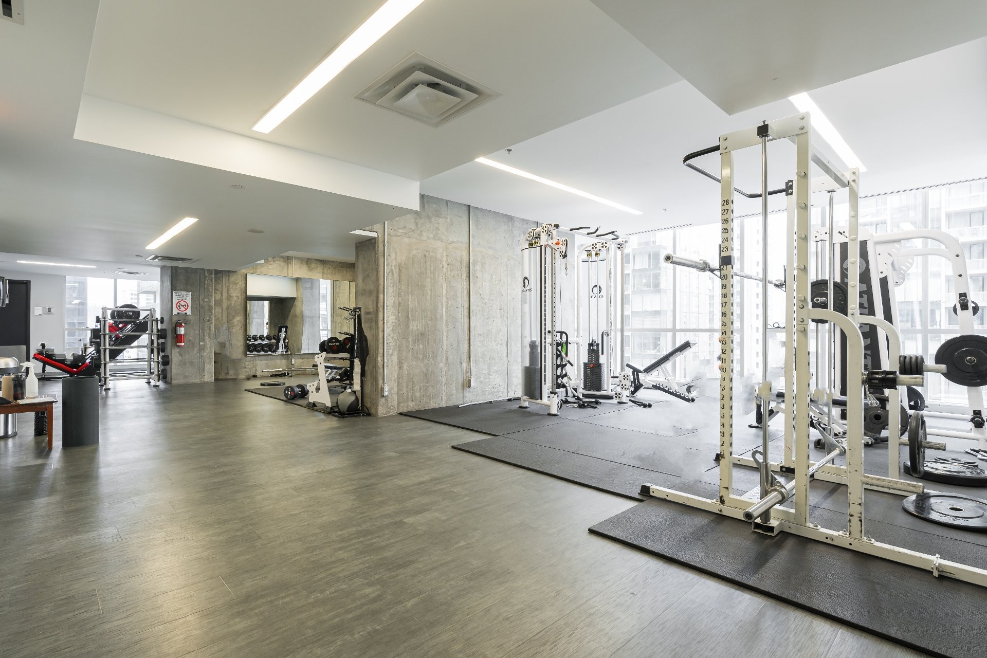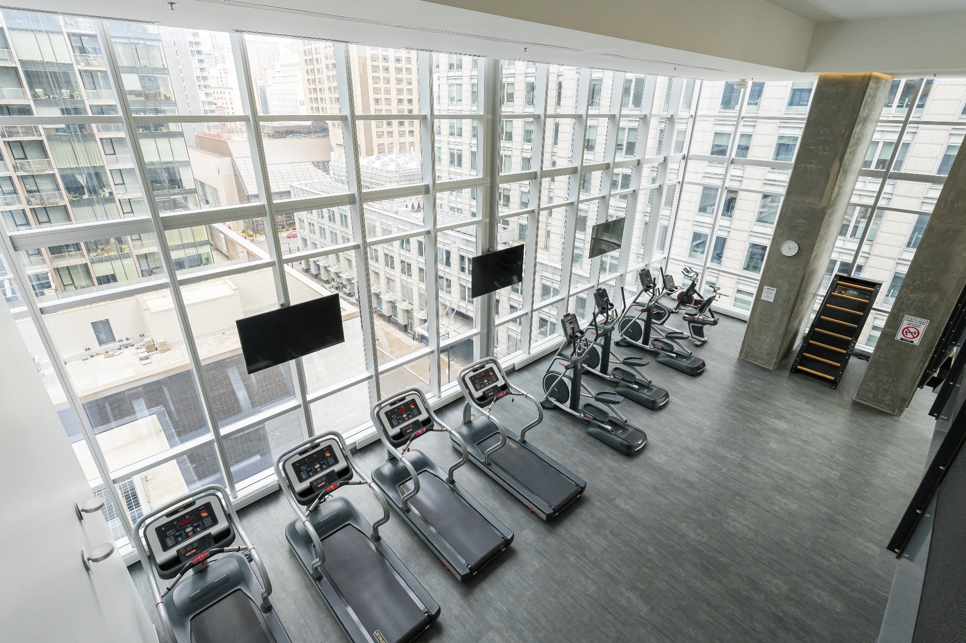 - Gymnase intérieure à deux étages avec vue sur la ville