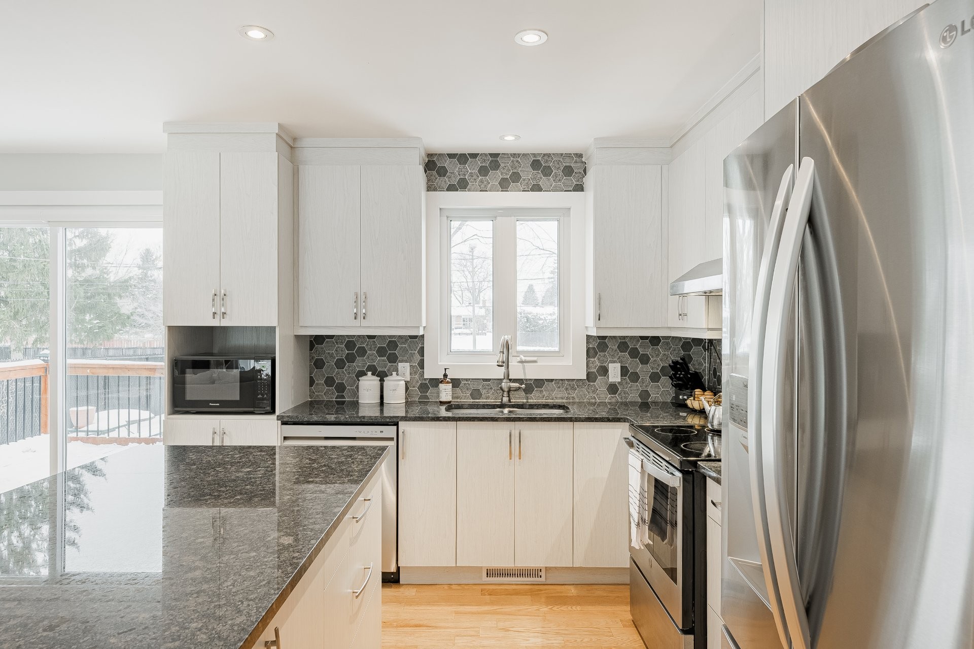 Située sur un croissant tranquille, cette maison magnifiquement entretenue offre une expérience de vie raffinée avec un plan ouvert baigné de lumière naturelle. La cuisine dispose d'un îlot central et de comptoirs en granite élégants, parfaits pour la vie quotidienne ou pour recevoir. De grandes fenêtres mettent en valeur l'ambiance lumineuse et aérienne de la maison. La propriété comprend 4 chambres bien proportionnées dont 2 au sous sol ainsi que 2 salles de bains soigneusement conçues. De plus, Le sous sol offre un vaste salon familial, une salle de lavage rénovée et une entrée indépendante.