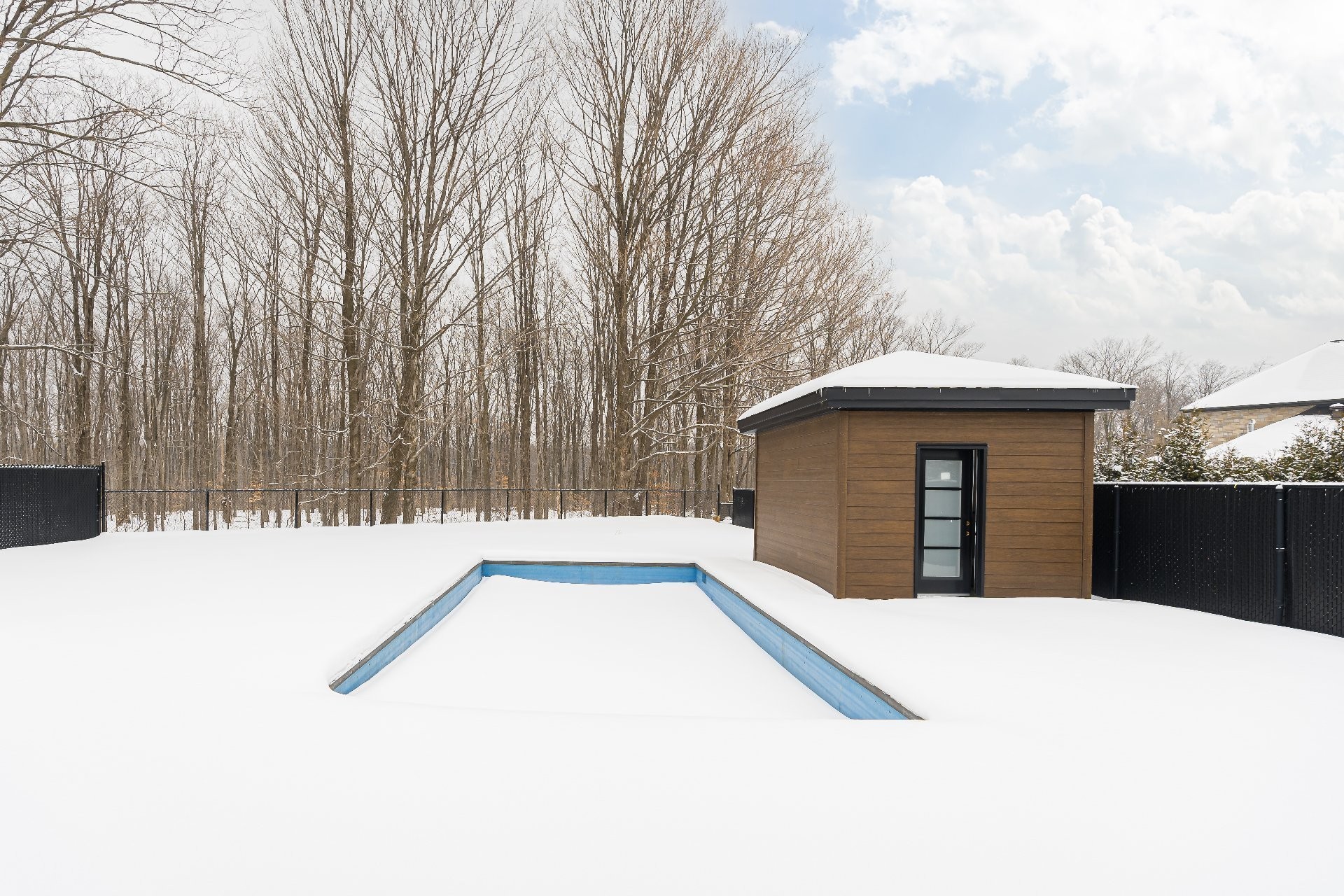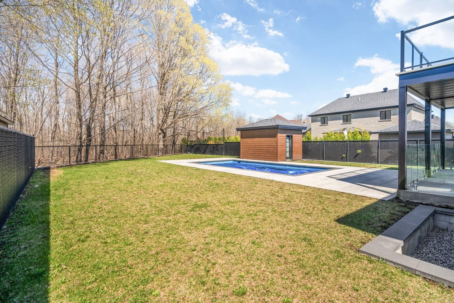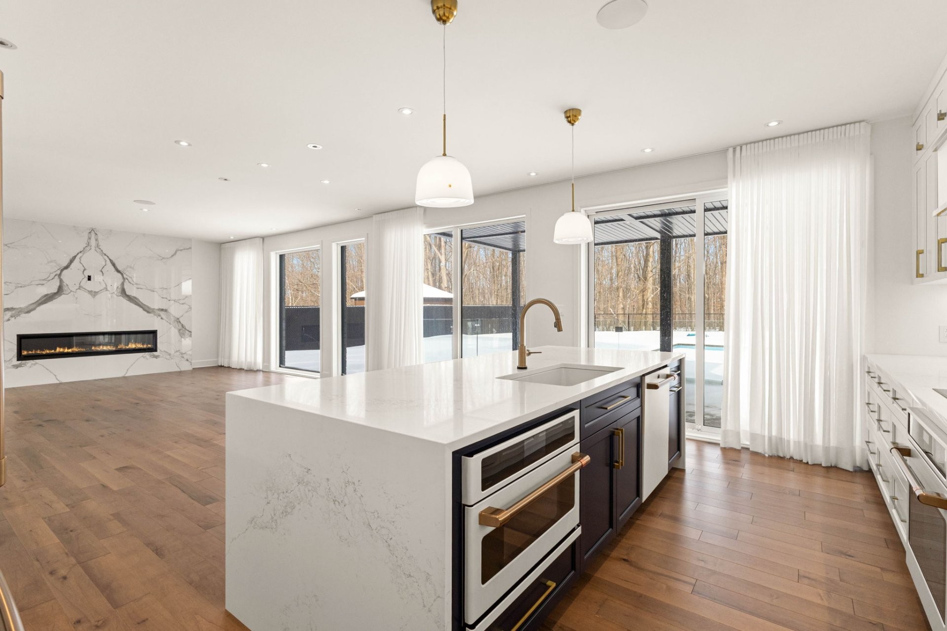 Le 1092, rue Bellevue à l'Île-Bizard est une maison moderne et élégante, achevée en 2021 par le Groupe Grilli Samuel. Elle présente des fenêtres surdimensionnées, des planchers en érable d'ingénierie et une façade en pierre locale, alliant design et fonctionnalité. L'aménagement ouvert comprend une cuisine de chef, des finitions haut de gamme et une cheminée en dalles de porcelaine. Quatre chambres, une salle de bains luxueuse et une terrasse privée complètent les espaces privés. Le niveau inférieur propose une cave à vin, un cinéma maison et une salle de fitness. À l'extérieur, une piscine chauffée et un pool house.