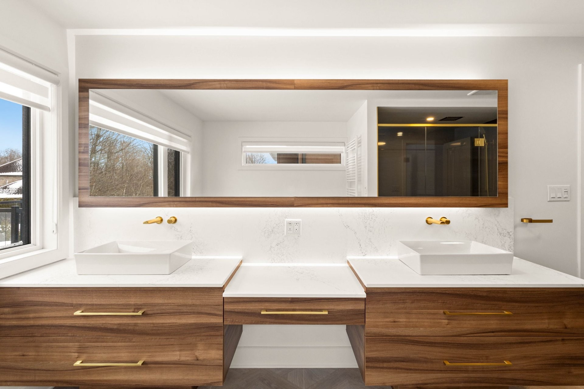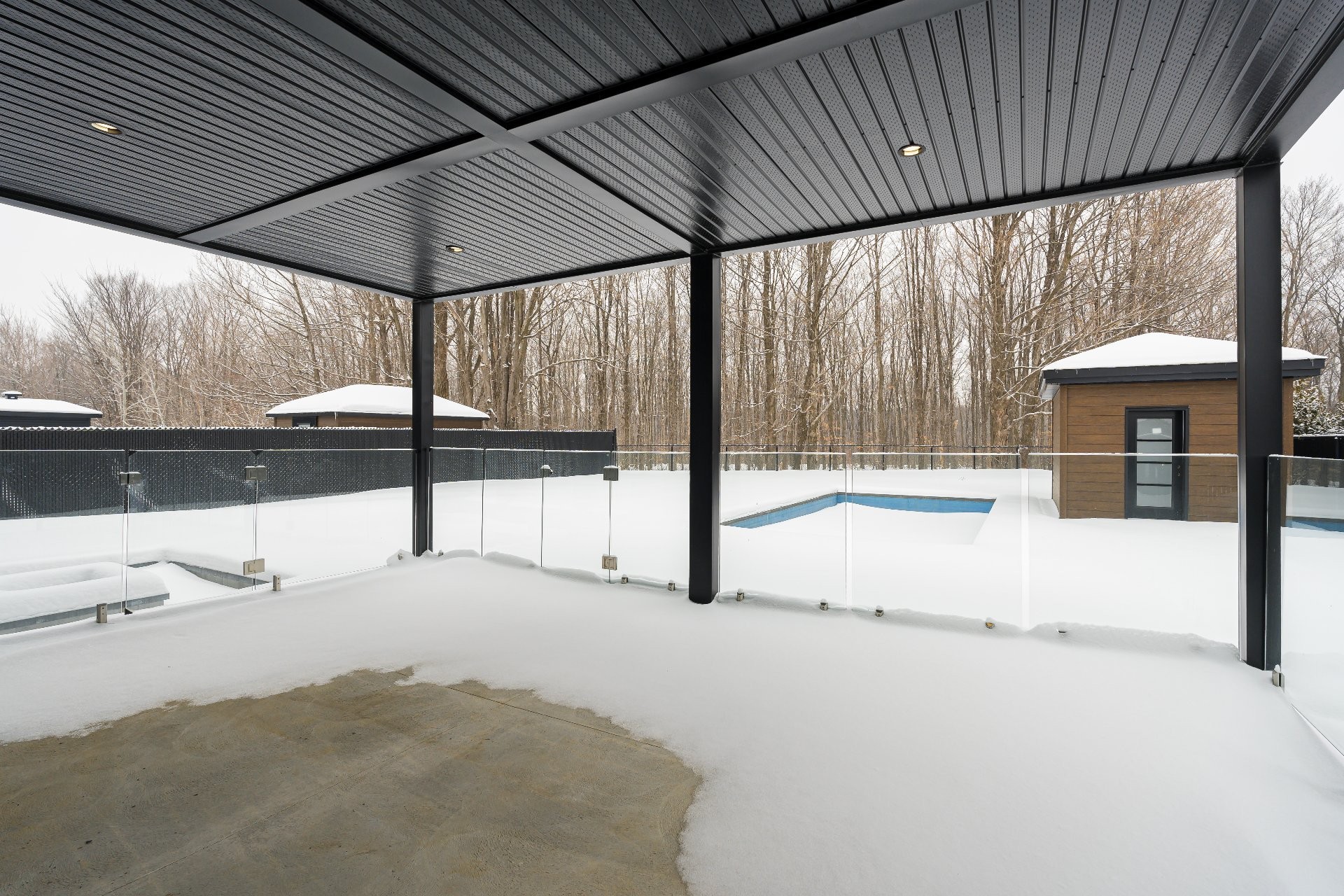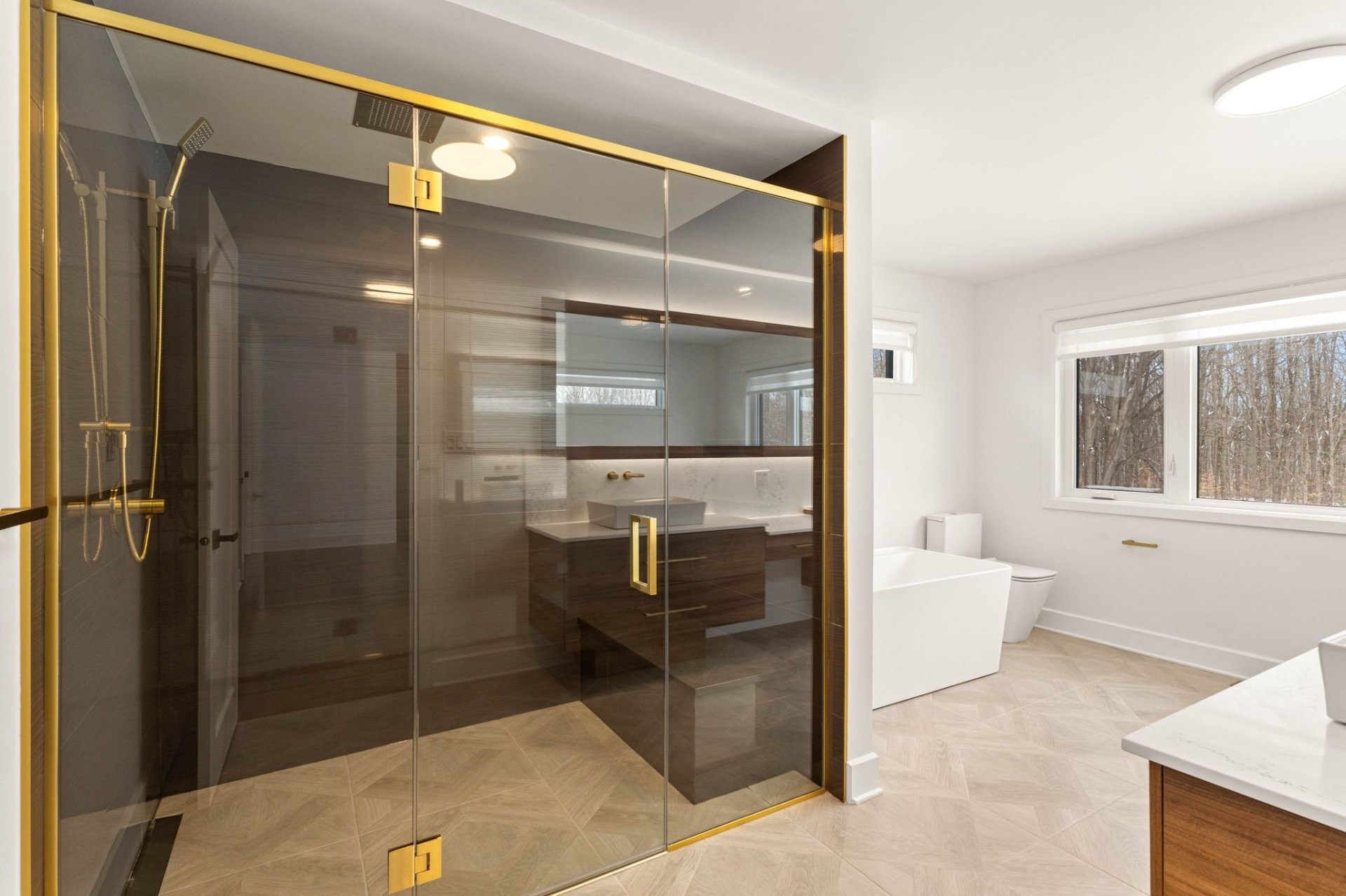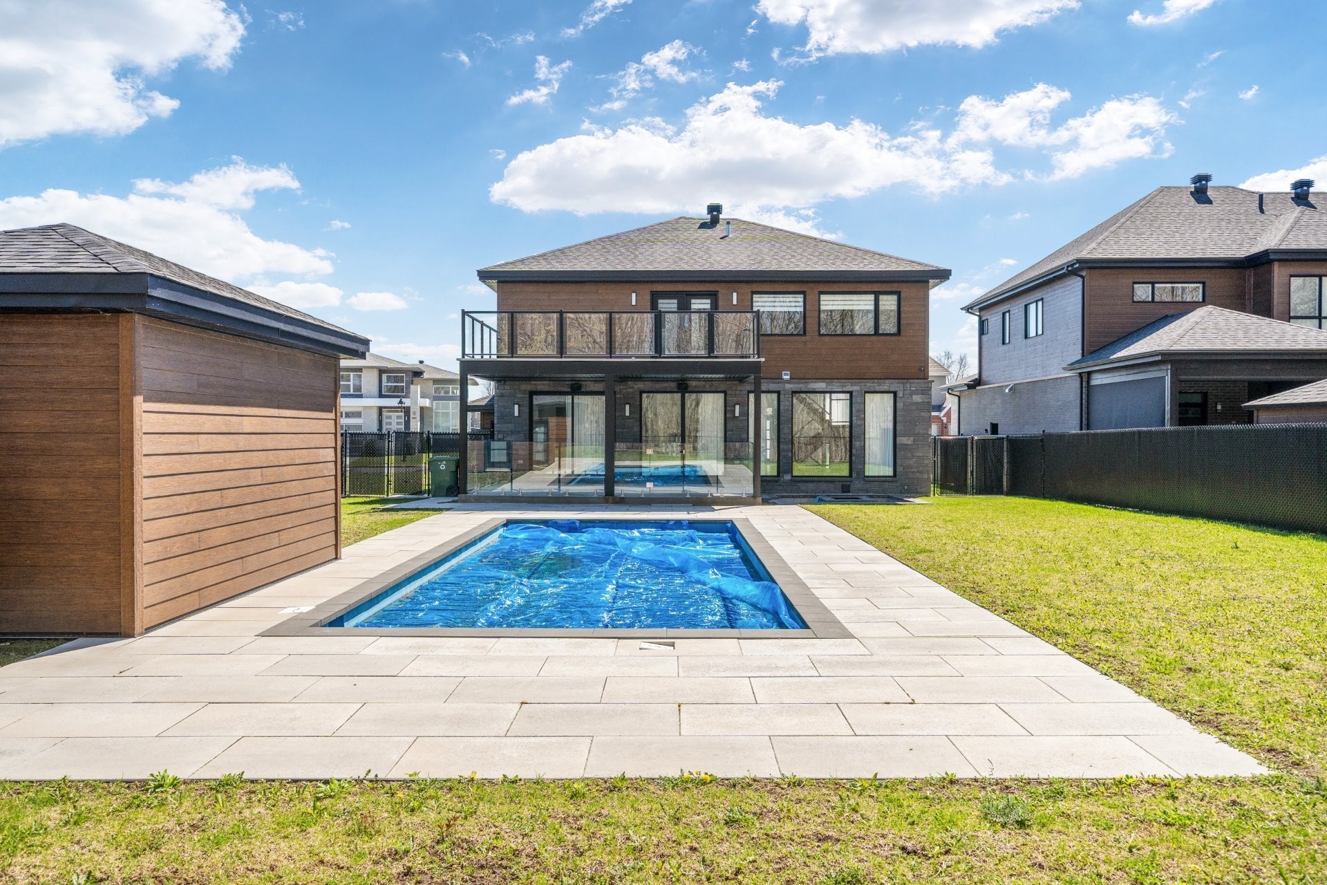 Le 1092, rue Bellevue à l'Île-Bizard est une maison moderne et élégante, achevée en 2021 par le Groupe Grilli Samuel. Elle présente des fenêtres surdimensionnées, des planchers en érable d'ingénierie et une façade en pierre locale, alliant design et fonctionnalité. L'aménagement ouvert comprend une cuisine de chef, des finitions haut de gamme et une cheminée en dalles de porcelaine. Quatre chambres, une salle de bains luxueuse et une terrasse privée complètent les espaces privés. Le niveau inférieur propose une cave à vin, un cinéma maison et une salle de fitness. À l'extérieur, une piscine chauffée et un pool house.
