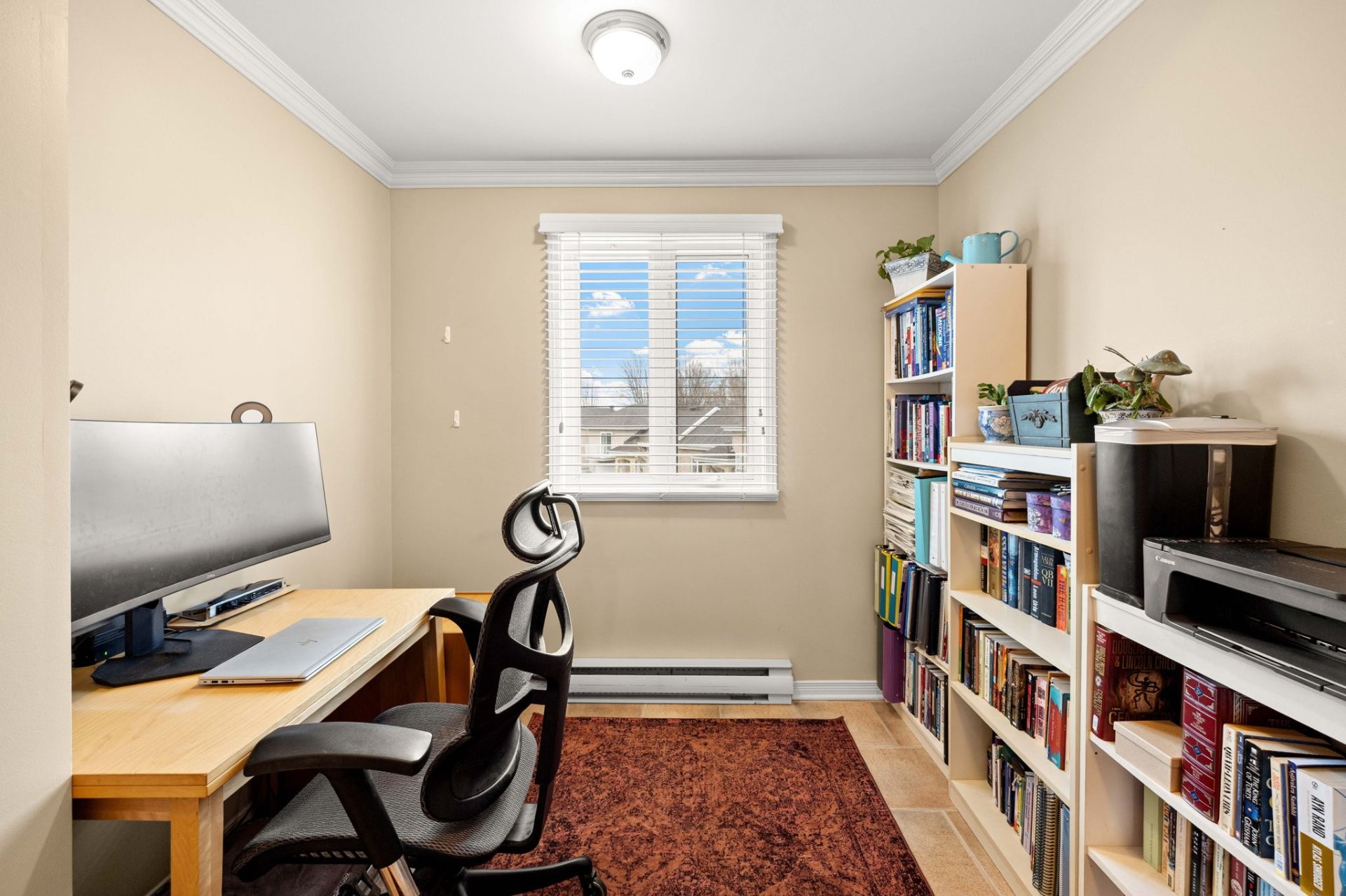 La cuisine, à la fois spacieuse et élégante, est dotée de comptoirs en granit et de finitions en bois apportant chaleur et raffinement. La chambre principale dispose d'un grand walk-in et d'un accès à une terrasse privée, offrant un espace paisible. Une mezzanine polyvalente, un sous-sol aménagé avec garde-robe en cèdre ainsi qu'un accès direct au garage ajoutent à la fonctionnalité de la propriété. Entourée de jardins soigneusement entretenus et située à proximité des grands axes routiers et du transport en commun, cette propriété propose un mode de vie tranquille avec un accès facile aux activités extérieures toute l'année.