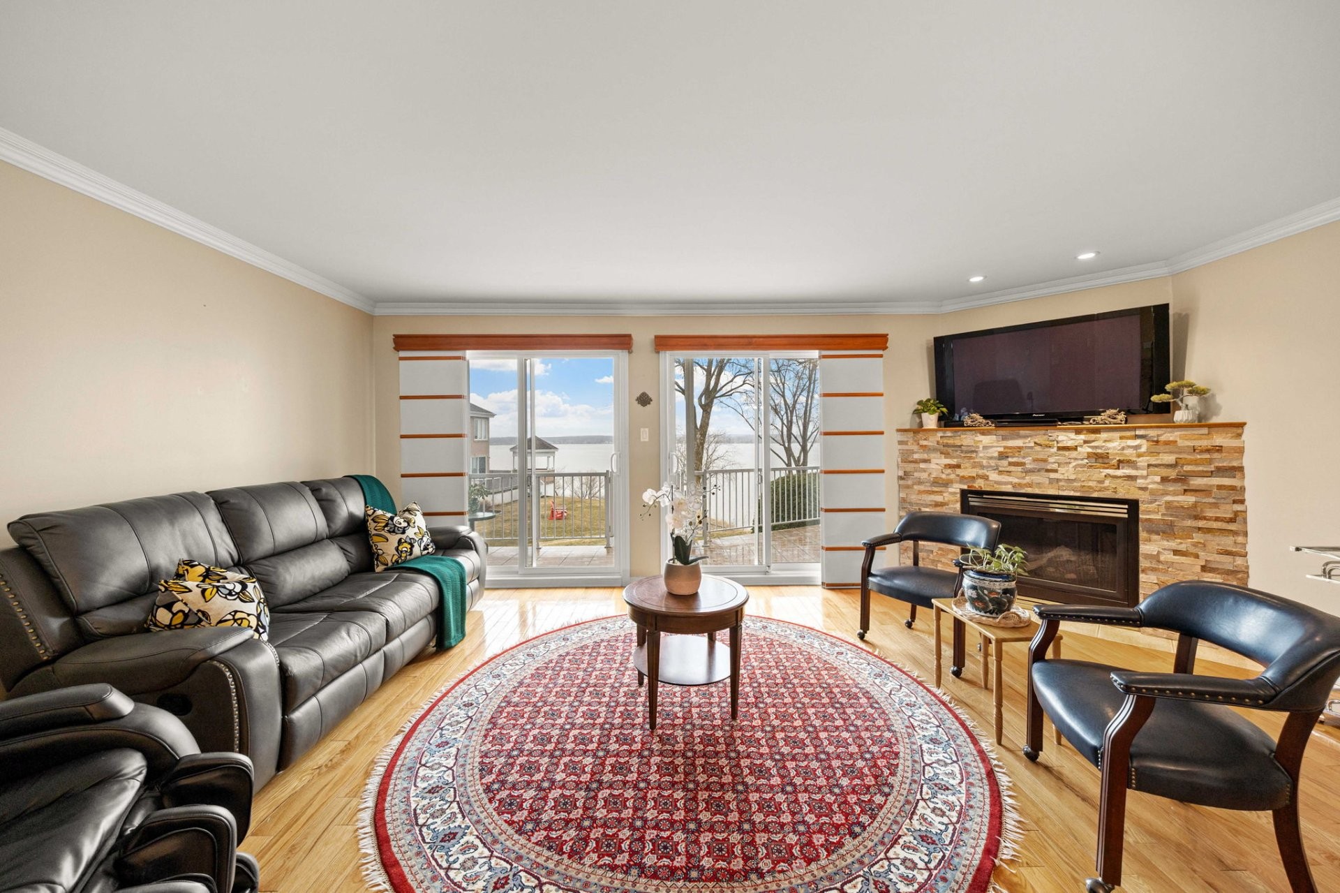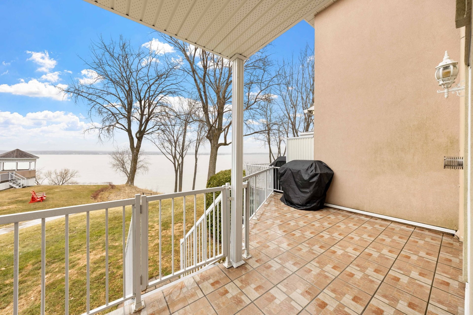 * Balcon avec accès direct à une pelouse privée et au bord de l'eau