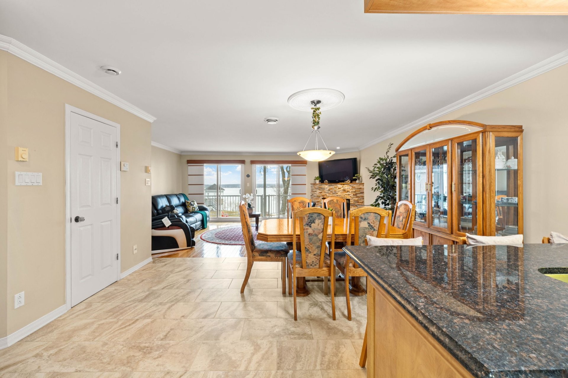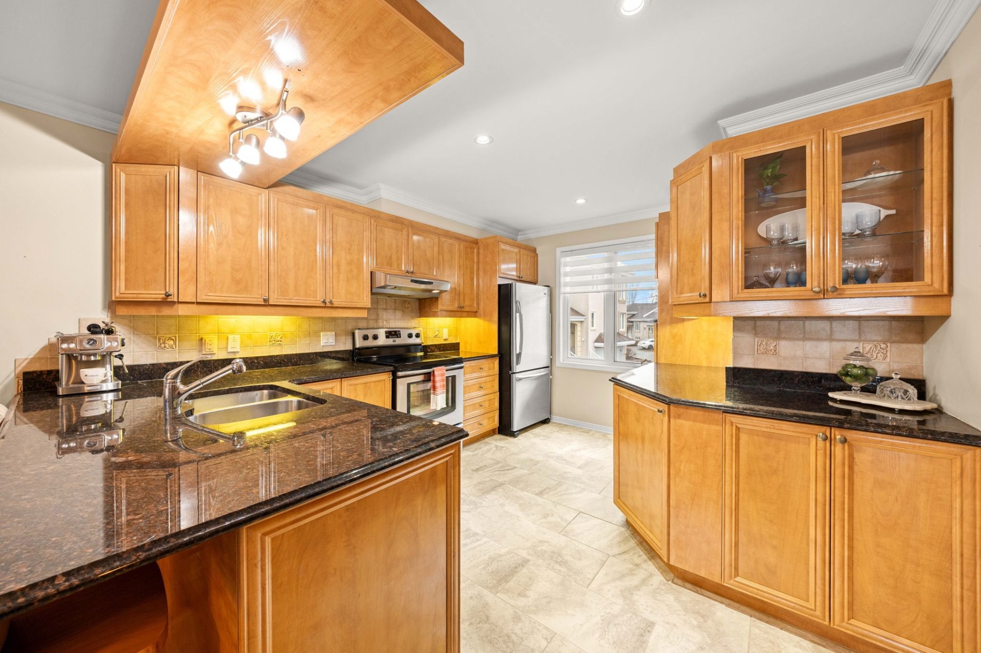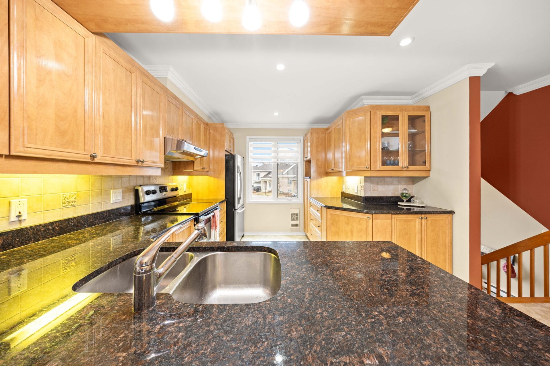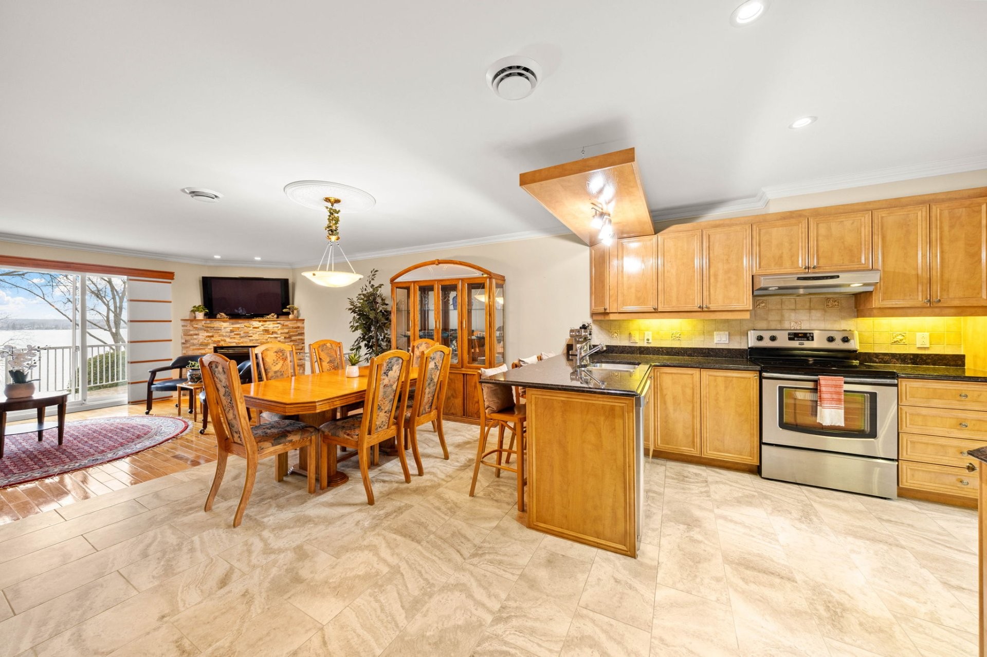 * Cuisine spacieuse avec comptoirs en granit et finitions en bois