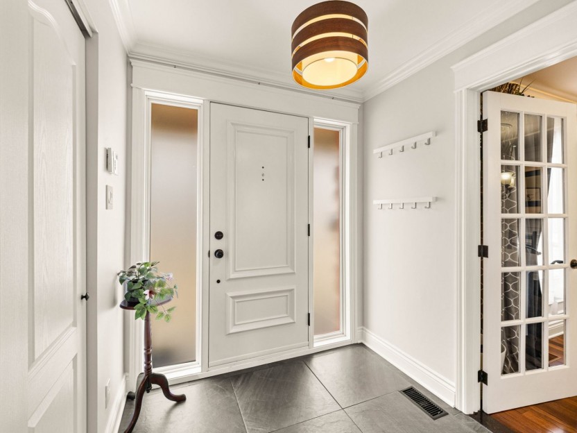 Entrez dans le vestibule fermé accueillant, doté d'un placard pratique et de portes françaises élégantes. Le salon lumineux et invitant comprend des baies vitrées et s'ouvre sur la salle à manger par de belles portes françaises. Le coeur de la maison est la cuisine à concept ouvert, la salle à manger avec portes patio et le spacieux salon familial avec foyer au propane dans le coin, idéal pour les réunions et la vie quotidienne. Des planchers de bois franc parcourent tout le niveau principal. Au rez-de-chaussée, on retrouve aussi une salle de lavage ainsi qu'une salle d'eau séparée.