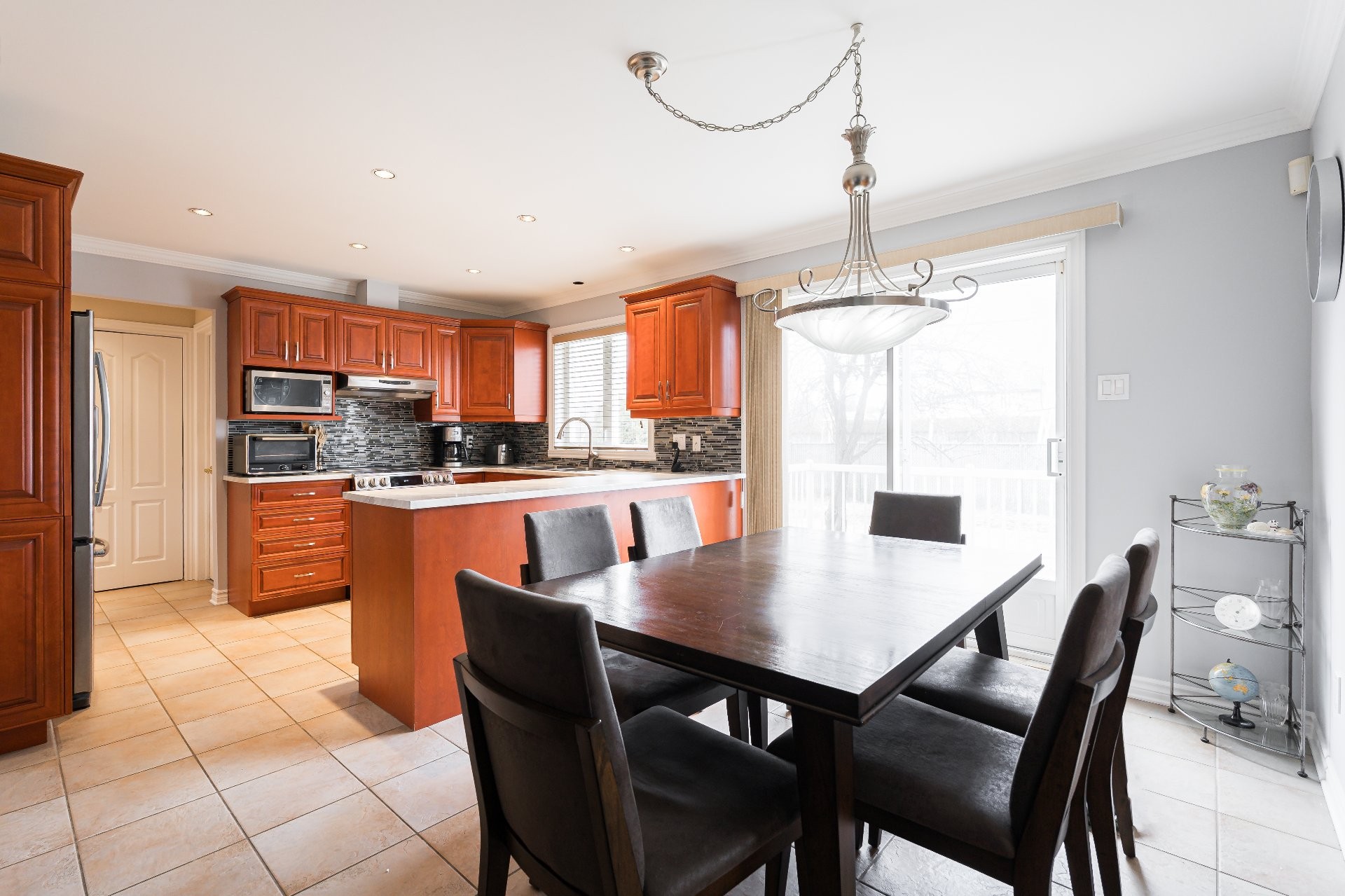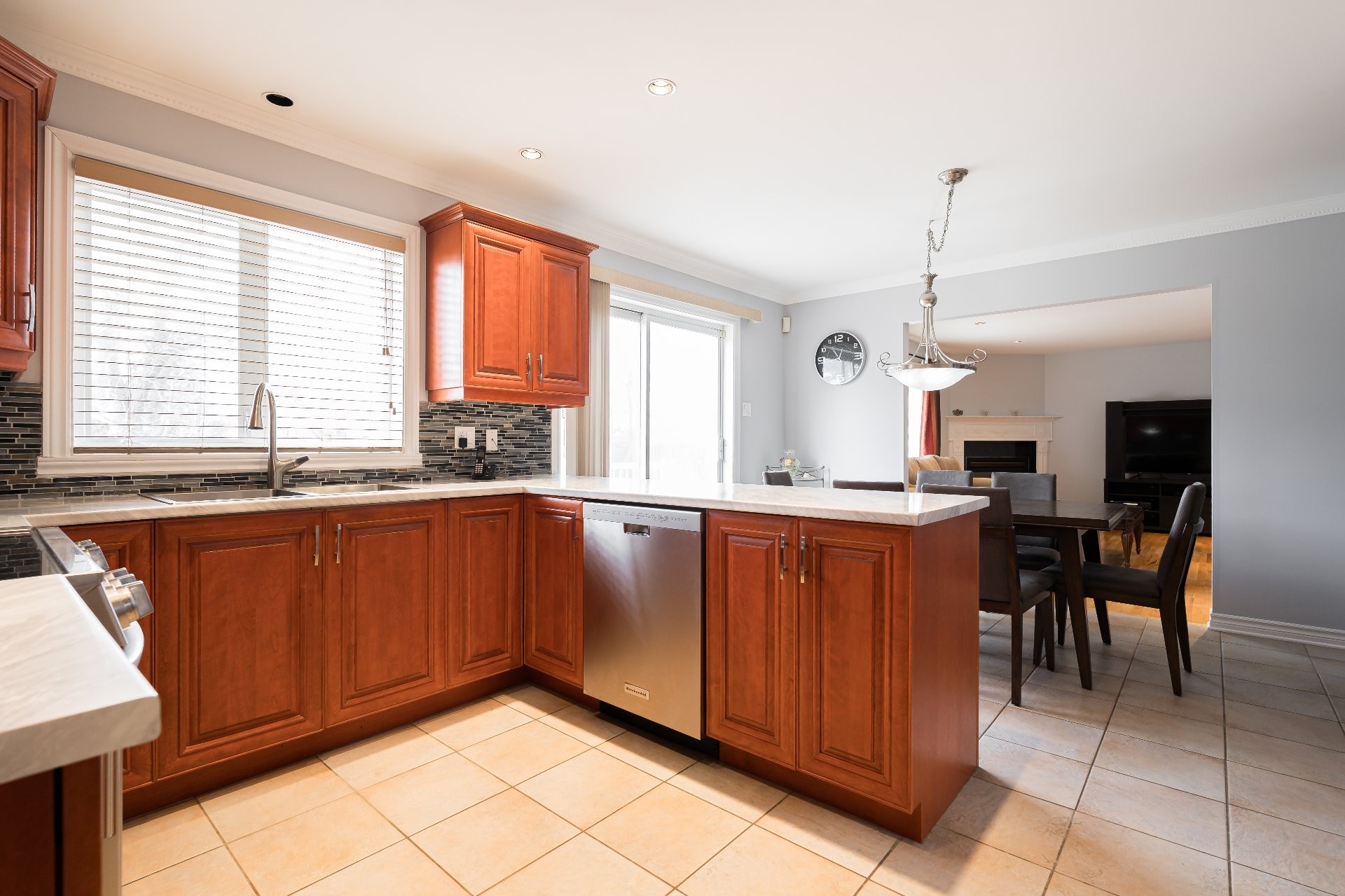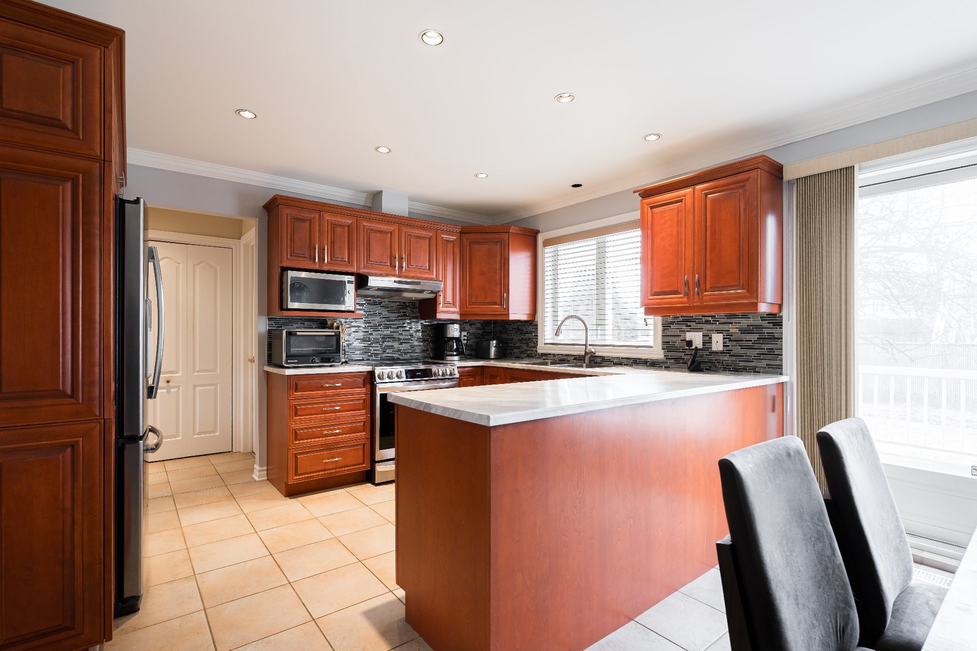 Maison familiale exceptionnelle à Timberlea, soigneusement entretenue par son propriétaire d'origine. Située dans une rue privée sans voisins arrière avec cour entièrement clôturée. Rez-de-chaussée avec planchers en bois, salon et salle à manger formels, cuisine ouverte avec dinette, salon avec foyer au propane, buanderie séparée et salle d'eau. À l'étage : 4 chambres dont la principale avec salle de bain attenante et walk-in, plus mezzanine lumineuse. Sous-sol fini avec salle de bain complète, salon et potentiel suite intergénérationnelle. Proche écoles, parcs, magasins, Cinéma Cineplex Kirkland et futur REM.