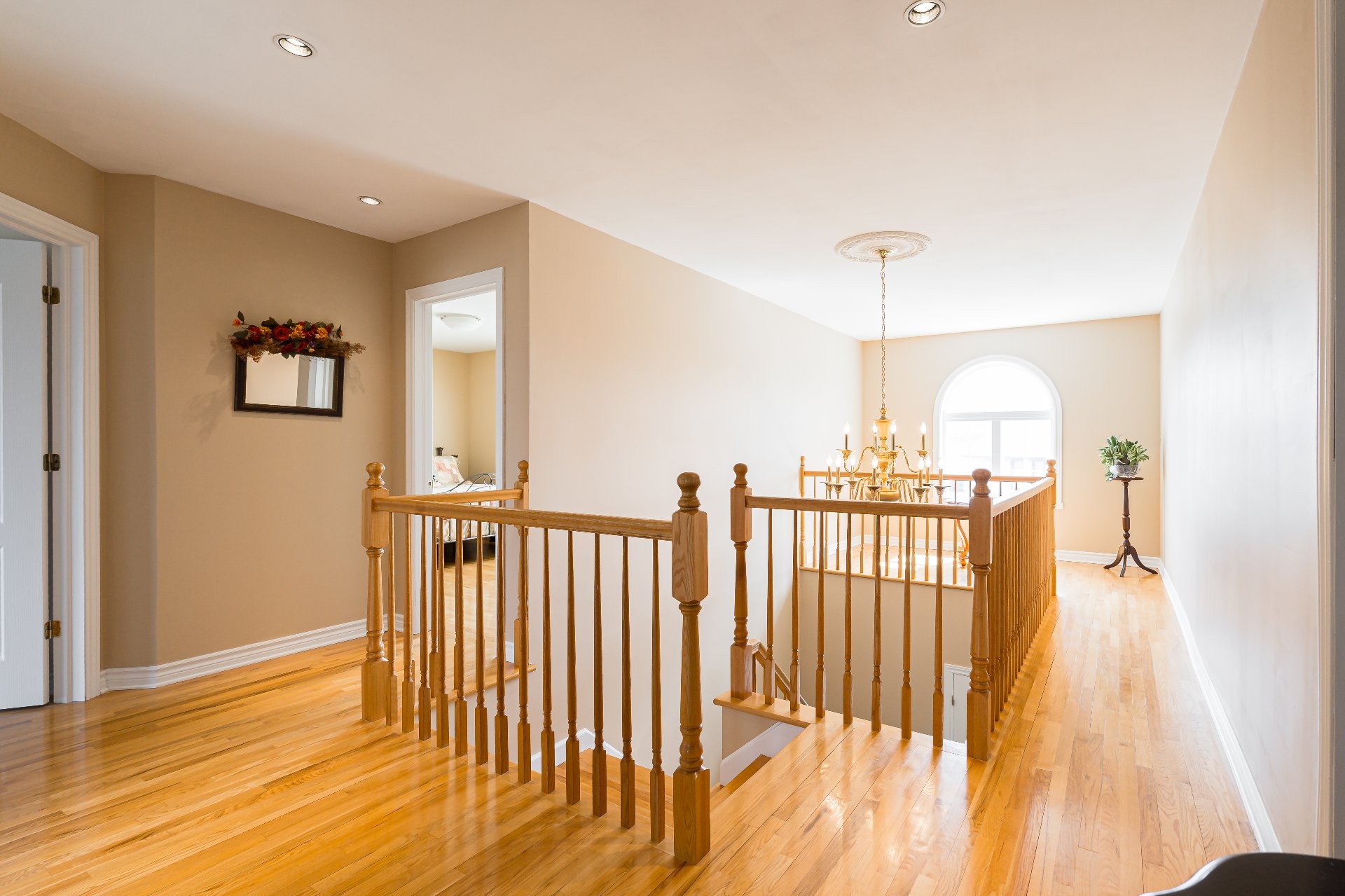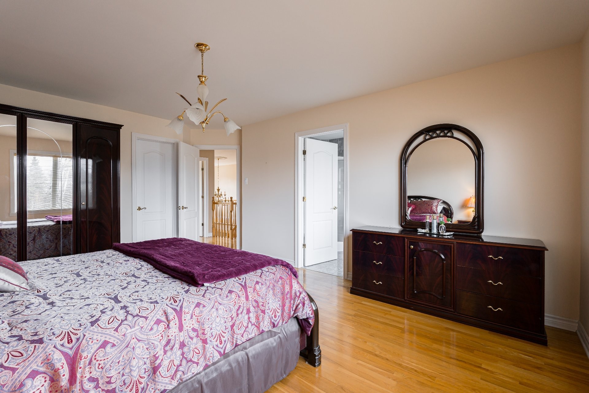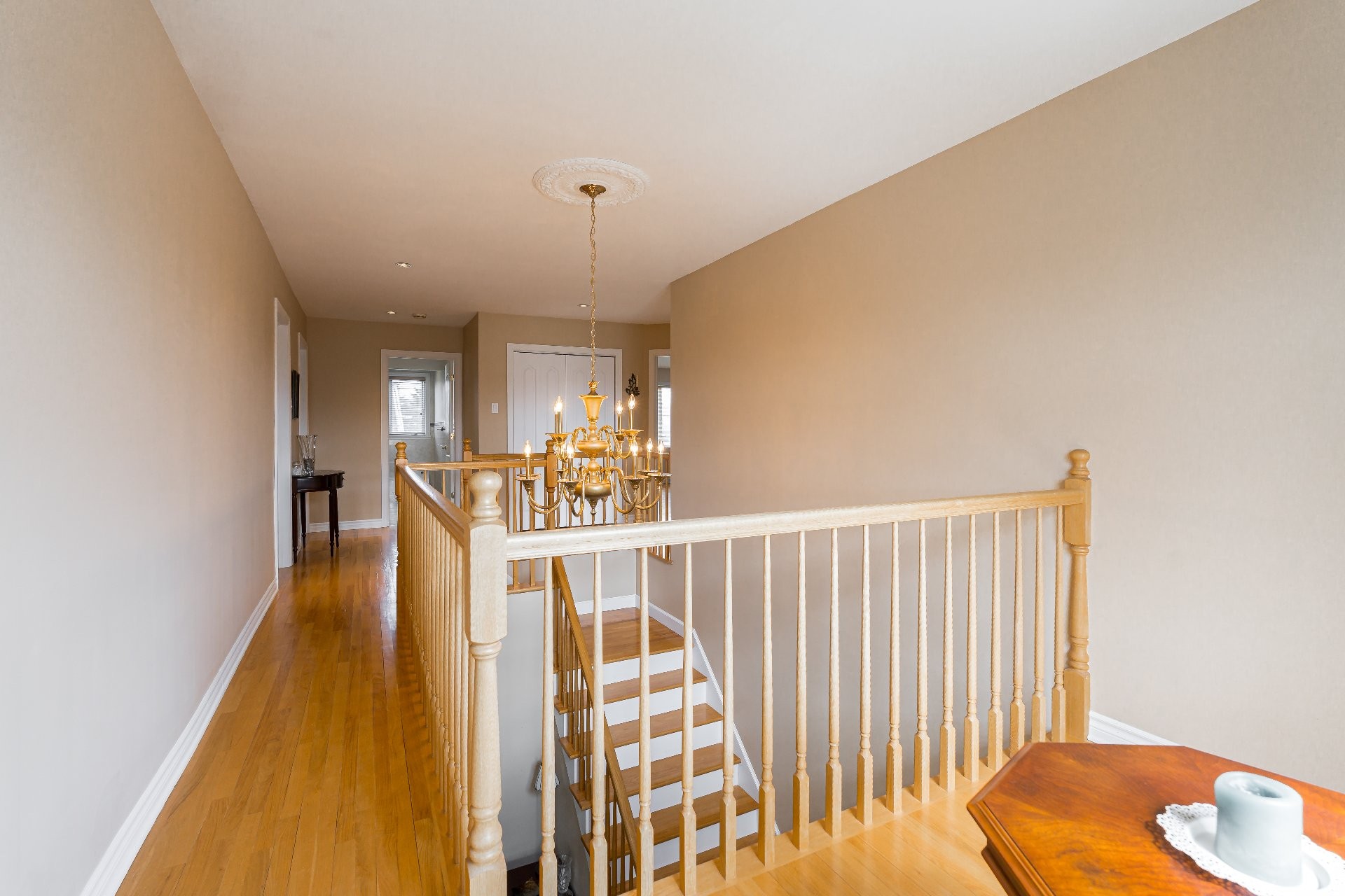 Maison familiale exceptionnelle à Timberlea, soigneusement entretenue par son propriétaire d'origine. Située dans une rue privée sans voisins arrière avec cour entièrement clôturée. Rez-de-chaussée avec planchers en bois, salon et salle à manger formels, cuisine ouverte avec dinette, salon avec foyer au propane, buanderie séparée et salle d'eau. À l'étage : 4 chambres dont la principale avec salle de bain attenante et walk-in, plus mezzanine lumineuse. Sous-sol fini avec salle de bain complète, salon et potentiel suite intergénérationnelle. Proche écoles, parcs, magasins, Cinéma Cineplex Kirkland et futur REM.