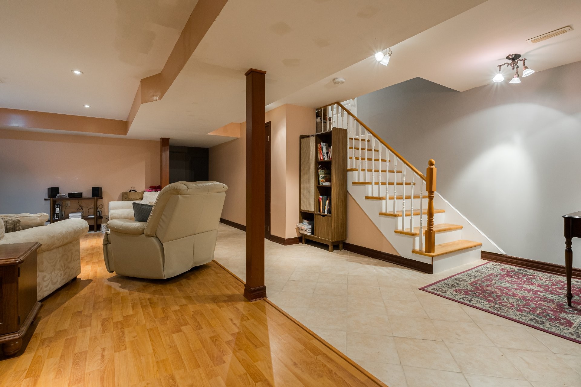 Le sous-sol fini, complété il y a environ 15 ans, comprend un grand salon familial, une salle de bain complète et un espace supplémentaire prêt à être transformé en suite intergénérationnelle, avec plomberie et ventilation déjà prévues pour une future cuisine. Une pièce de rangement pourrait également devenir une chambre supplémentaire, et le sous-sol dispose d'une grande chambre froide pour un stockage optimal.