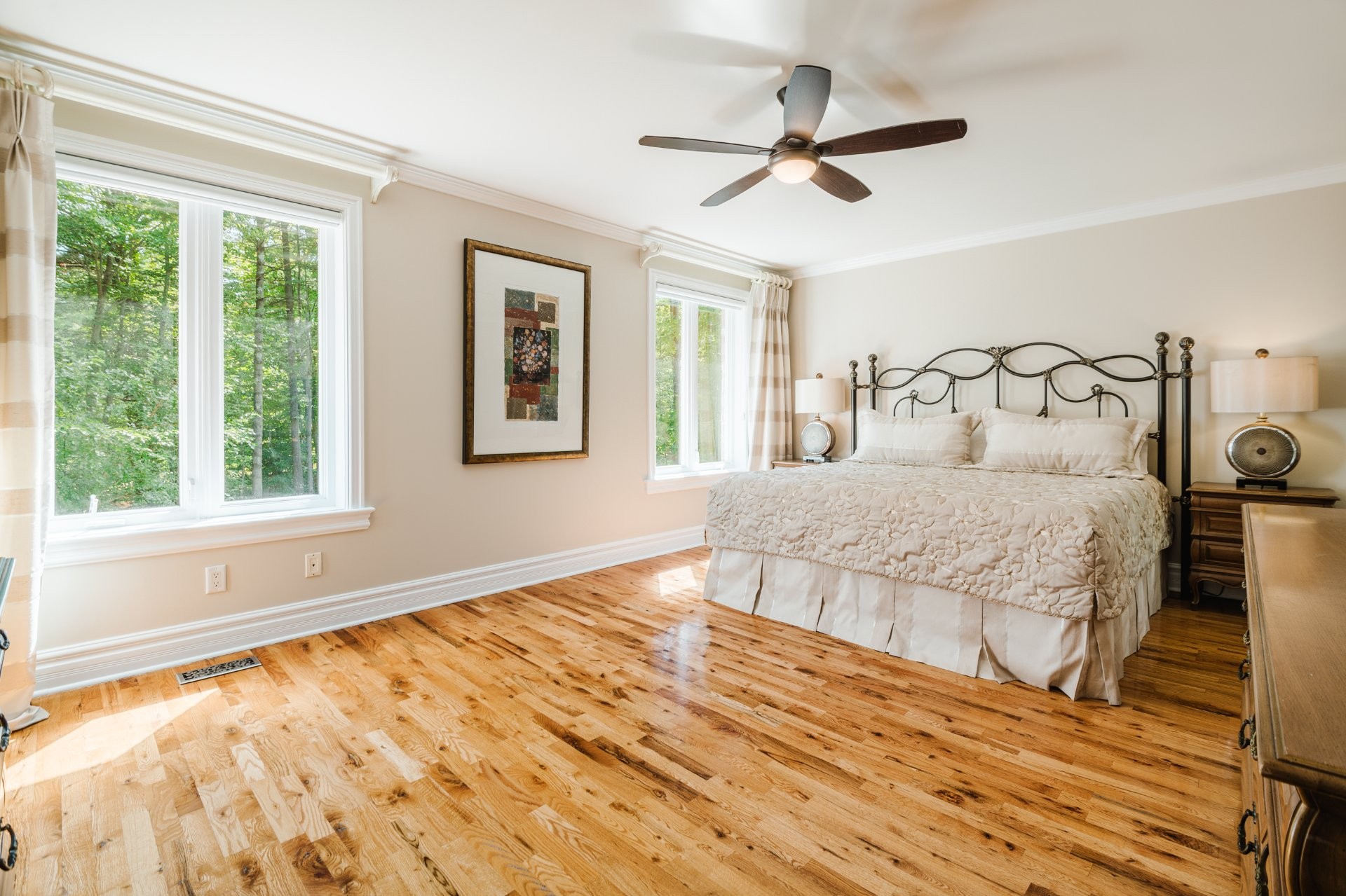 | Chambre à coucher principale | 2ième étage | 17.10x12.10 P | Bois | vue sur le jardin/piscine |