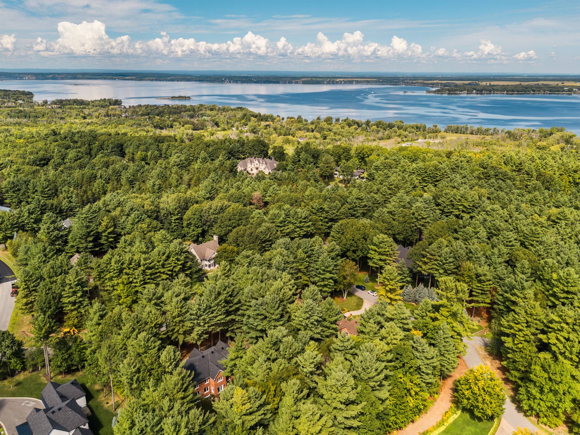 Ce domaine de 4 acres au bord de l'eau offre une élégante résidence en pierre de 5 CACs et 257 pieds de bord de lac, avec des vues panoramiq...