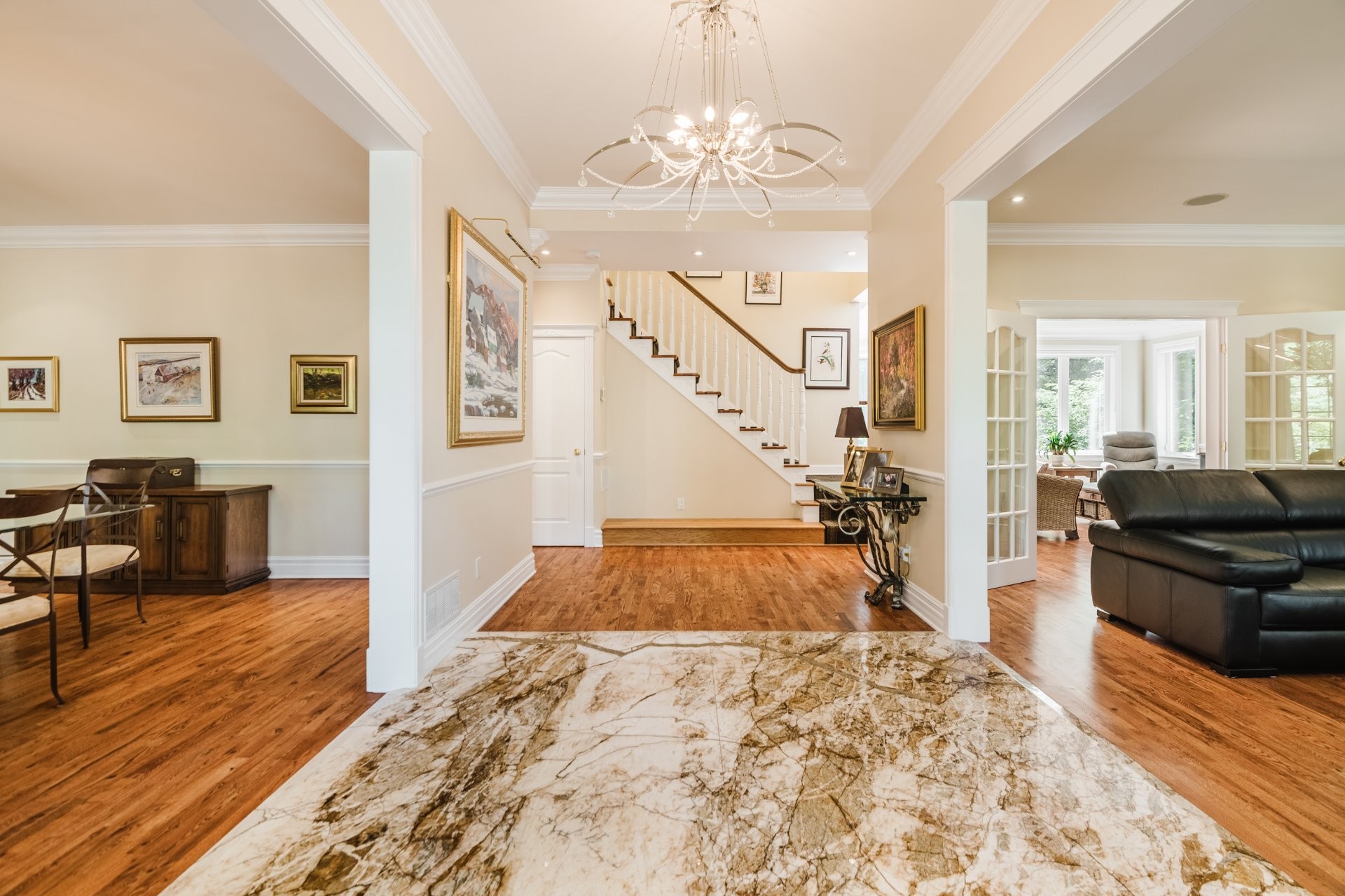 Une imposante résidence bi-générationnelle(ou suite d'invités) de qualité avec de vastes espaces de vie,nichée le long d'un croissant sur un grand terrain de 38583pi² dans le développement résidentiel exclusif Alstonvale,adjacent au golf Falcon conçu par Graham Cooke.Les rénovations totalisent 317,250$+ studio au sous-sol (2e cuisine),plafonds de 9-10 pi (1er étage),planchers et escalier en chêne,plancher en granit brésilien,suite CAC principale + SDB, 3 salons (+ possible salle de cinéma),SAM formelle,cuisine de chef,cave à vin sur mesure pouvant contenir 600 bouteilles,piscine creusée clôturée,allée circulaire,patios en pavé uni et cabanon.