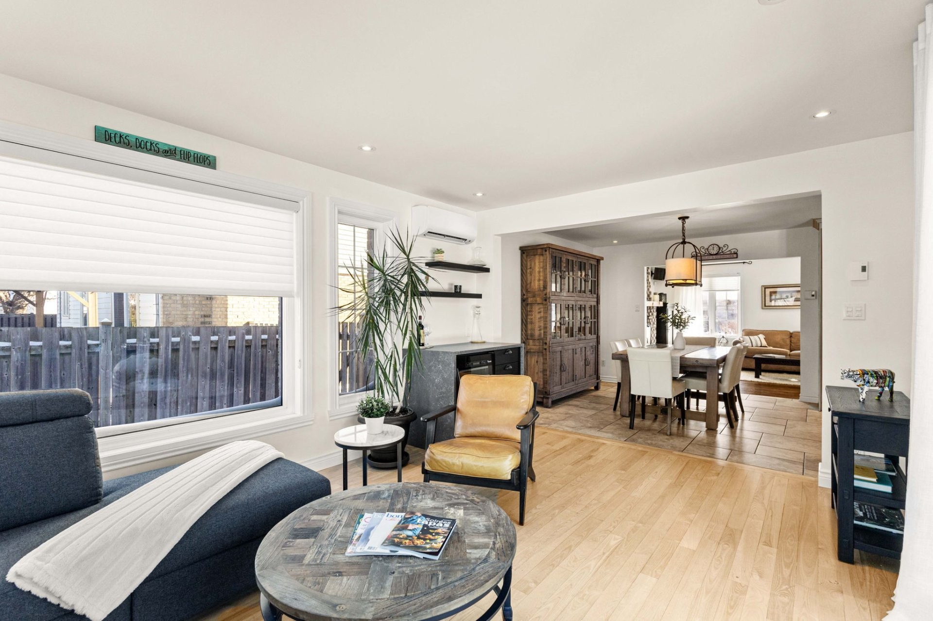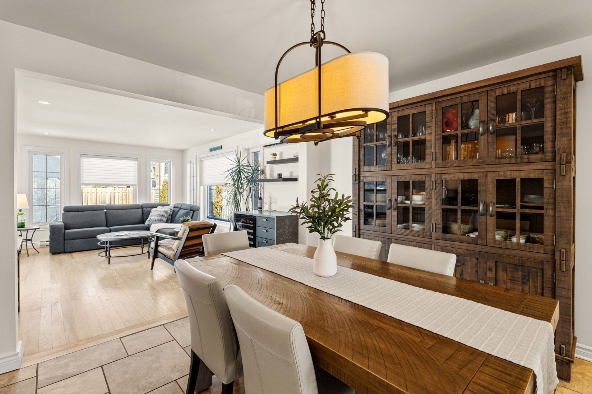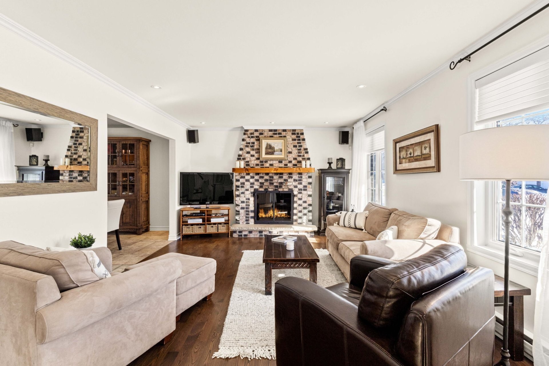 Le rez-de-chaussée offre un salon lumineux et spacieux, baigné de lumière naturelle et agrémenté d'un chaleureux foyer au bois. La cuisine rénovée à aire ouverte, adjacente à la salle à manger, est parfaite pour recevoir. La magnifique extension de la salle familiale, dotée de grandes fenêtres, surplombe une cour arrière exceptionnelle. Une salle d'eau combinée à la salle de lavage complète le niveau principal.