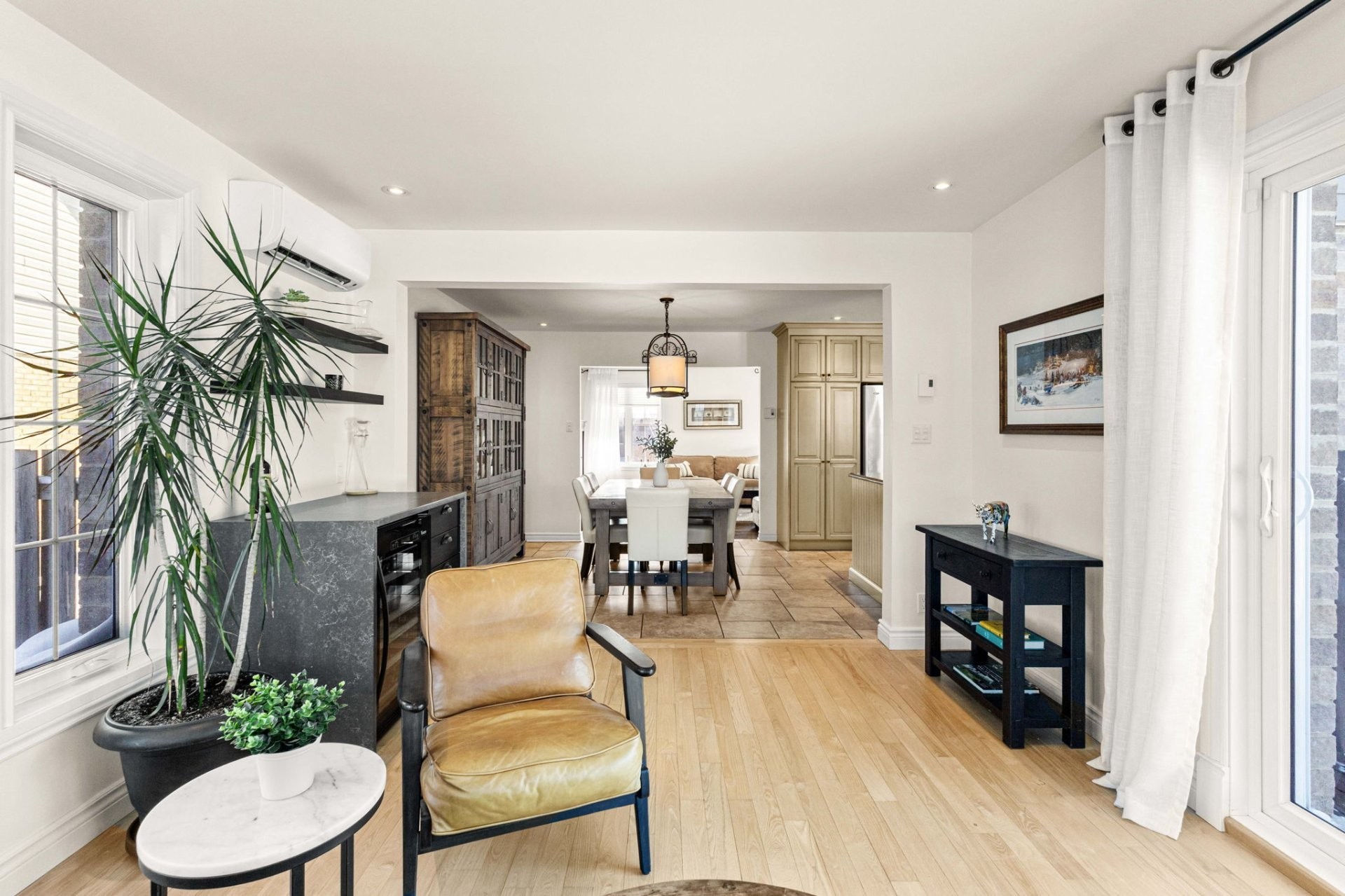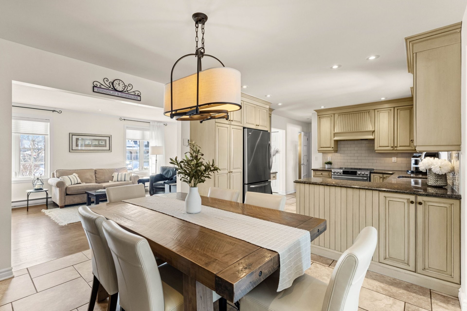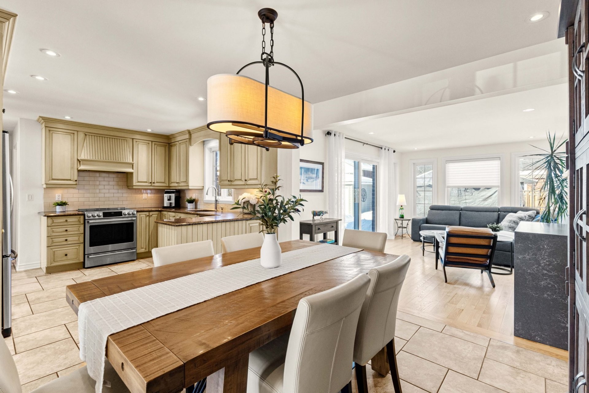 Le rez-de-chaussée offre un salon lumineux et spacieux, baigné de lumière naturelle et agrémenté d'un chaleureux foyer au bois. La cuisine rénovée à aire ouverte, adjacente à la salle à manger, est parfaite pour recevoir. La magnifique extension de la salle familiale, dotée de grandes fenêtres, surplombe une cour arrière exceptionnelle. Une salle d'eau combinée à la salle de lavage complète le niveau principal.