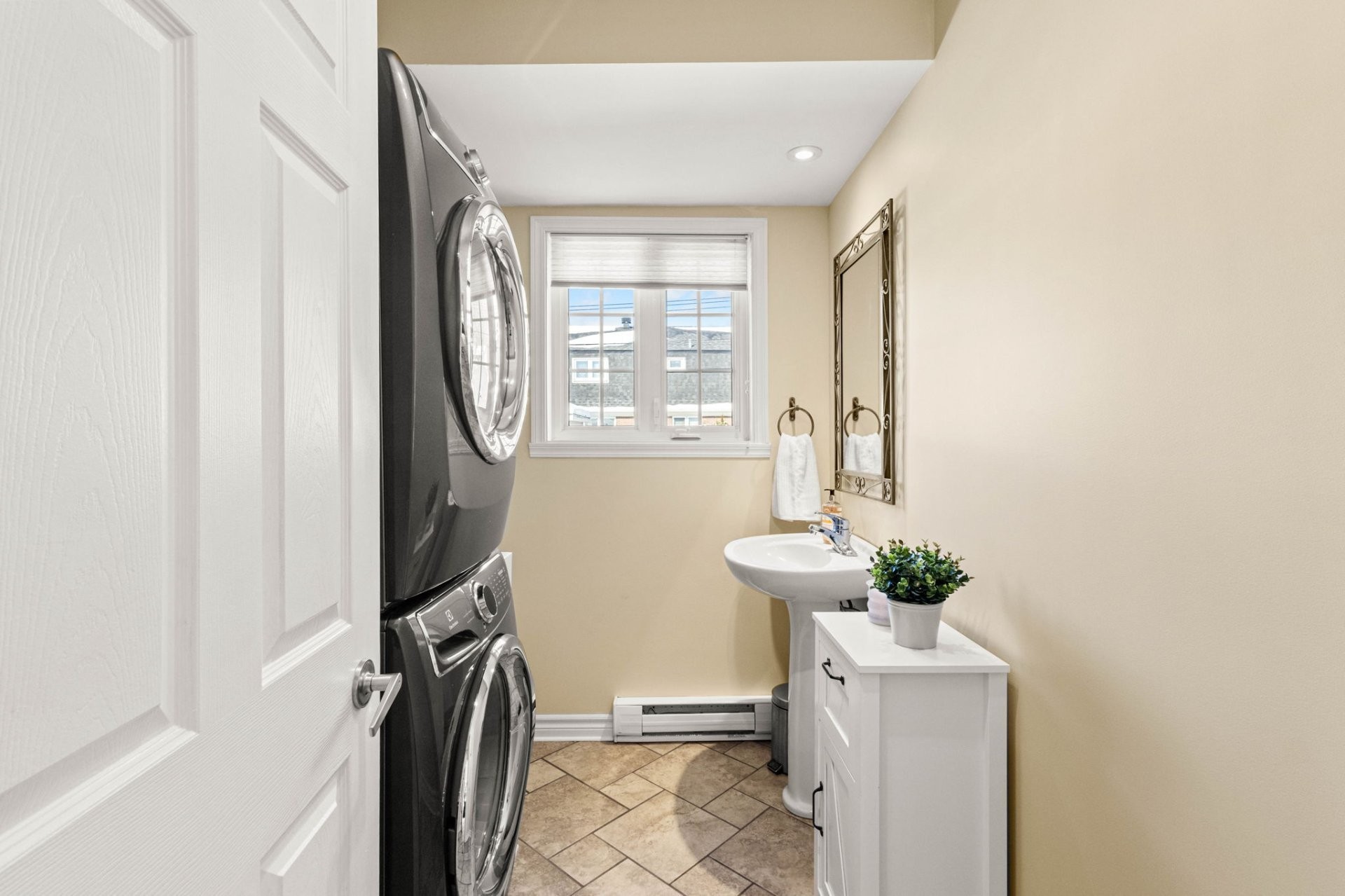 Spa, haut-parleurs au salon, laveuse/sécheuse