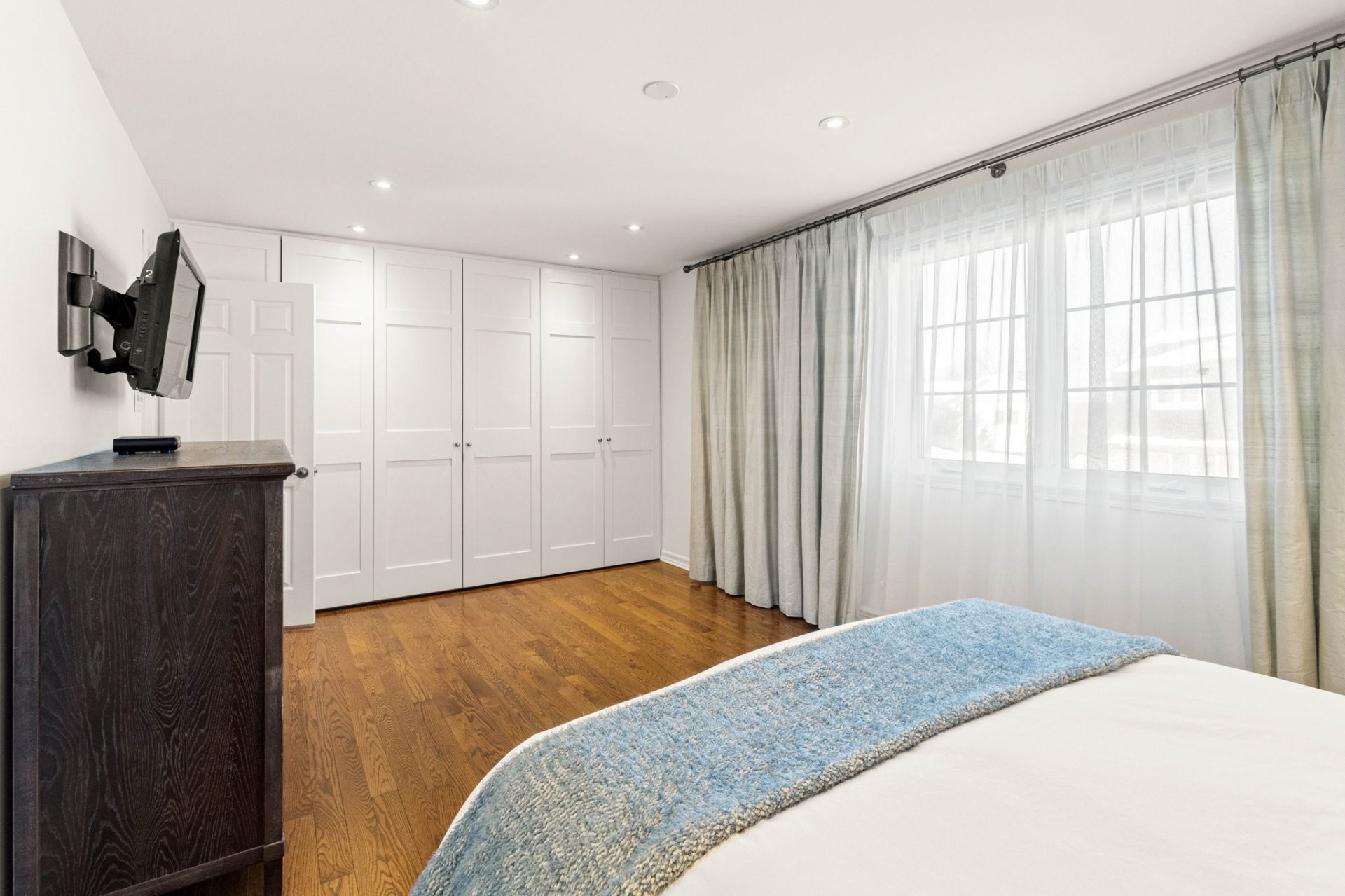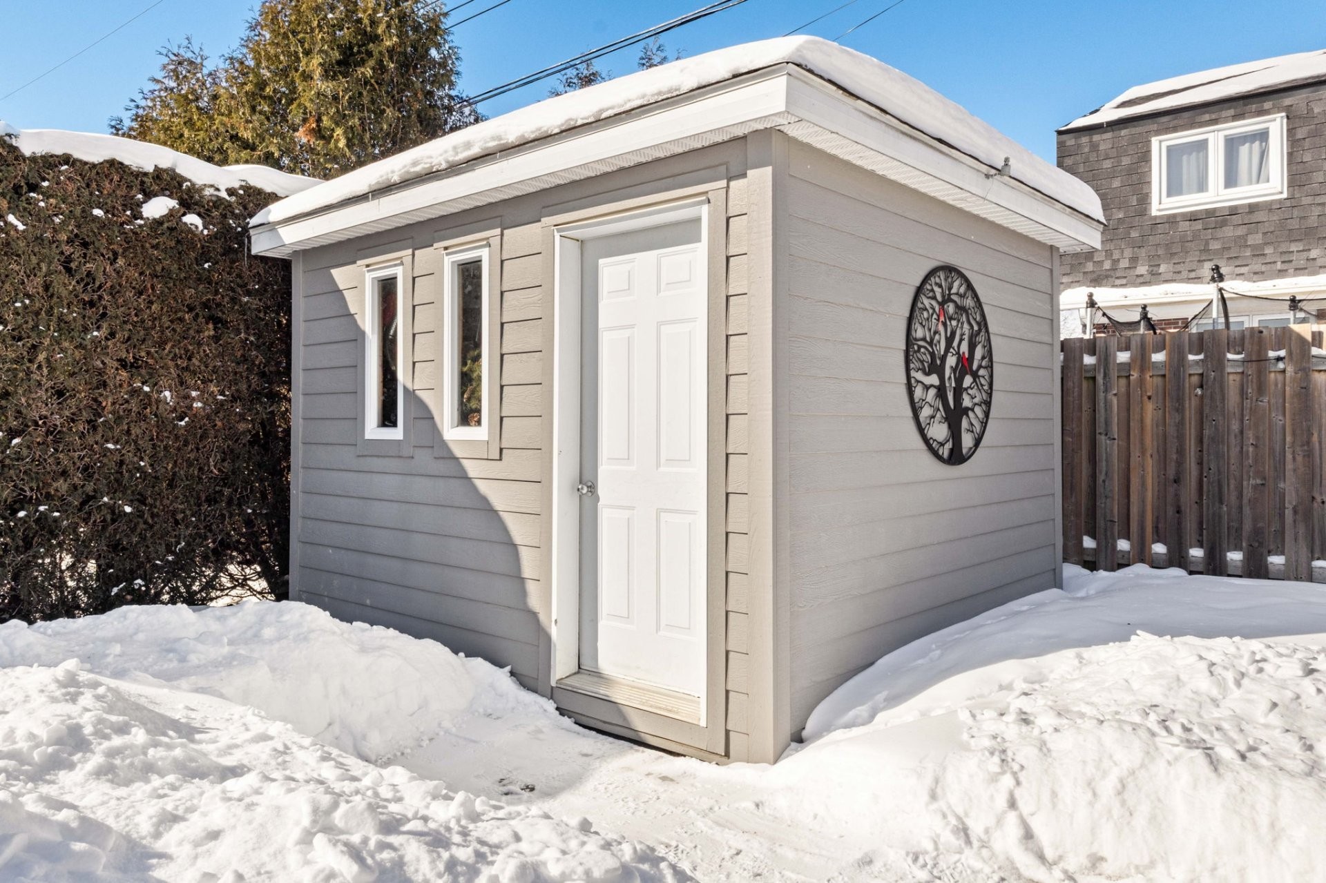Gazebo, cellier à vin, 4 électroménagers de cuisine, téléviseur et support mural dans la chambre principale, étagère octogonale dans l'espace de rangement, système de garde-robe PAX dans une chambre, mobilier intégré avec coussin dans une chambre, bureaux intégrés dans les chambres, stores Hunter Douglas (2 au salon, 2 dans l'agrandissement), habillages de fenêtres, rideaux et tringles, luminaire de la salle à manger, 3 étagères de rangement au sous-sol.