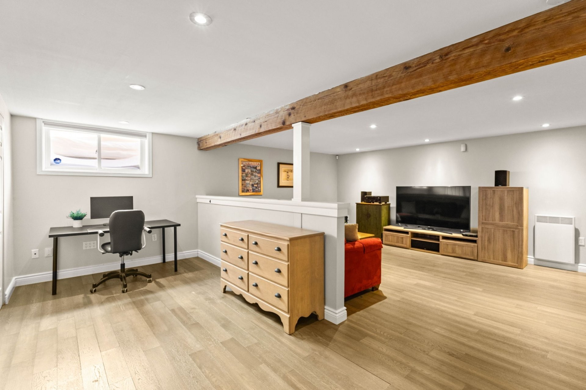 Le sous-sol récemment rénové ajoute un espace de vie précieux comprenant une grande salle de jeux, un espace dédié idéal pour un bureau à domicile, une chambre supplémentaire ainsi qu'une salle de bains complète, parfait pour recevoir des invités ou répondre aux besoins d'une famille grandissante.
