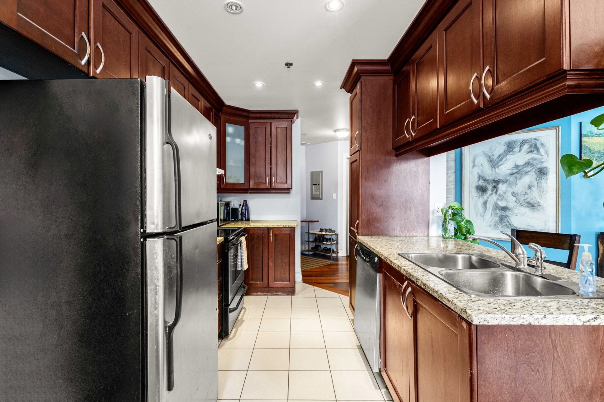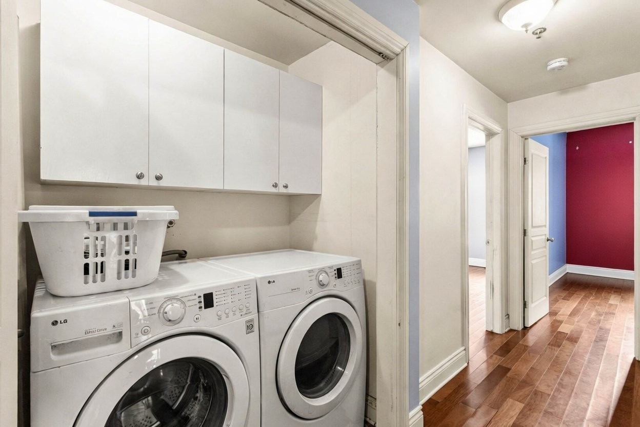 Ce condo invitant de 2 chambres et 2 salles de bains, situé dans Upper West Side Phase 3, offre une élégance moderne et un confort exceptionnel au coeur de Dollard-des-Ormeaux. Le concept ouvert met en valeur des plafonds hauts, des planchers de bois franc dans les aires de vie et de séjour, ainsi qu'un espace garde-robe généreux dans les deux chambres. La cuisine se distingue par ses planchers en céramique, ses armoires en bois et ses luxueux comptoirs en marbre. Détendez-vous près du foyer au gaz naturel, profitez de la climatisation murale, d'une salle de bain attenante et d'une seconde salle de bain complète. Les atouts pratiques incluent la buanderie dans l'unité, le chauffage électrique à plinthes et un rangement abondant partout.