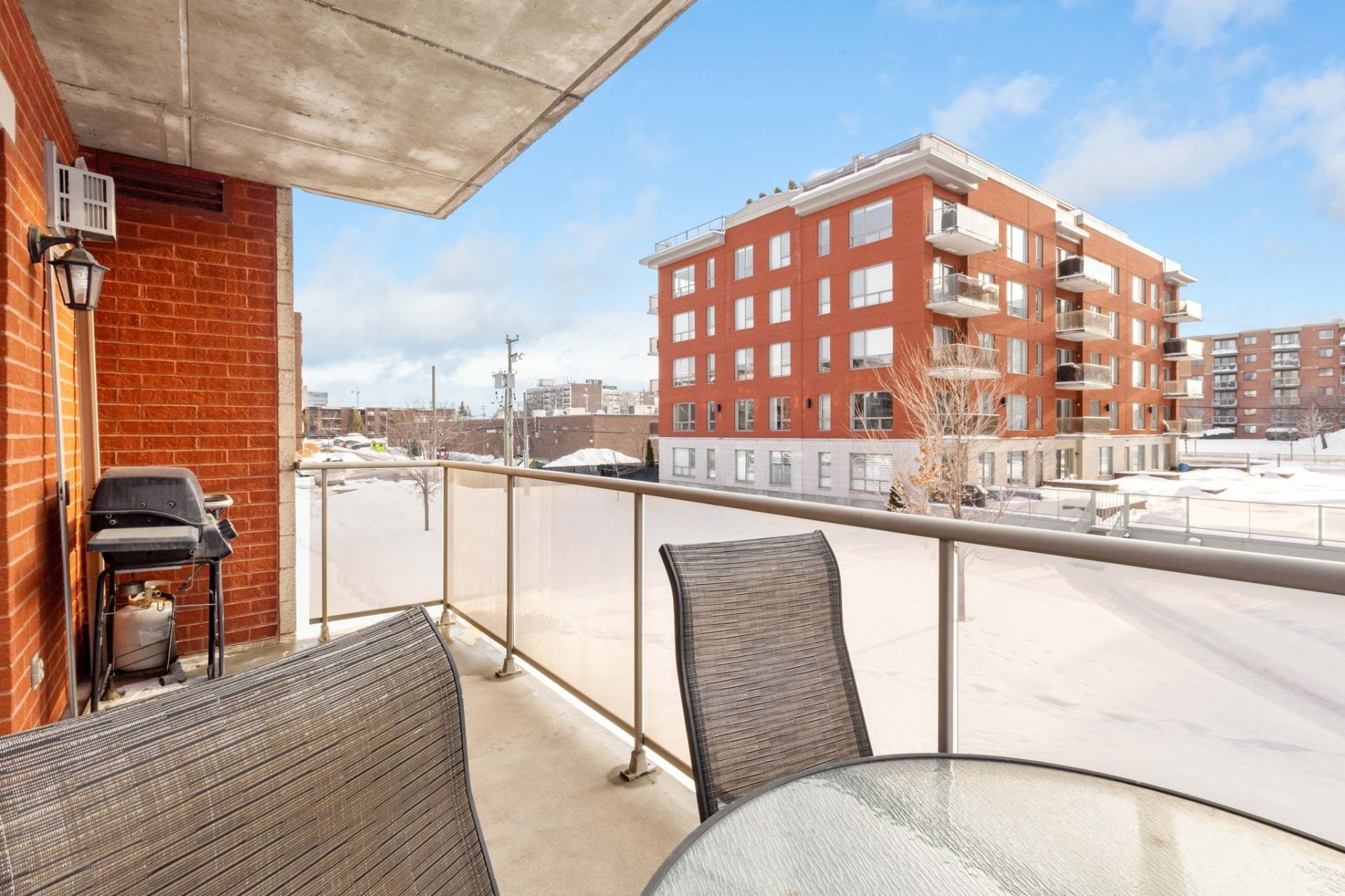 La vie extérieure est rehaussée par un grand balcon privé offrant de belles vues, en plus d'un stationnement sécurisé : 1 emplacement intérieur chauffé au garage et 1 emplacement extérieur, ainsi qu'un espace de rangement dédié.