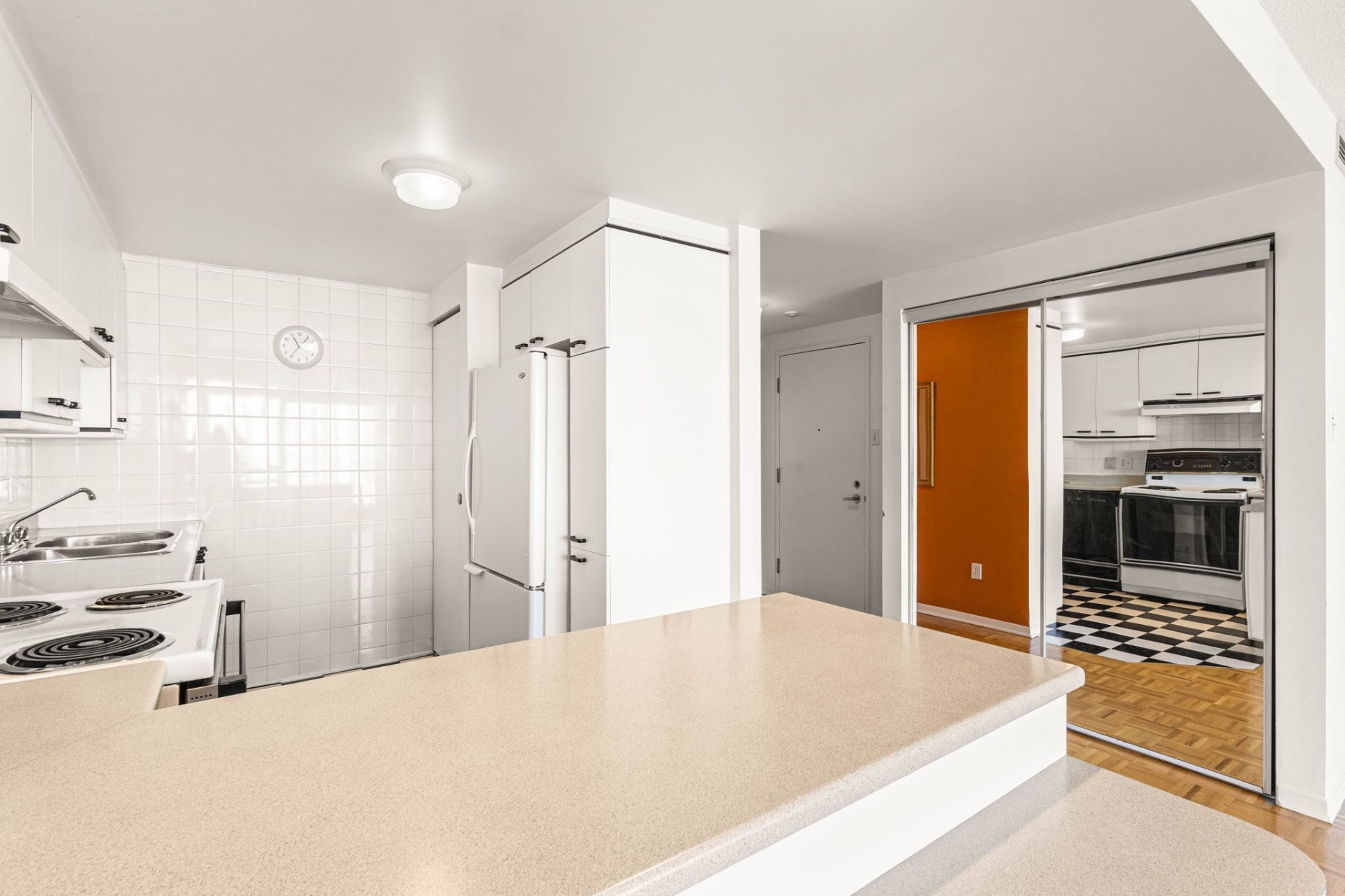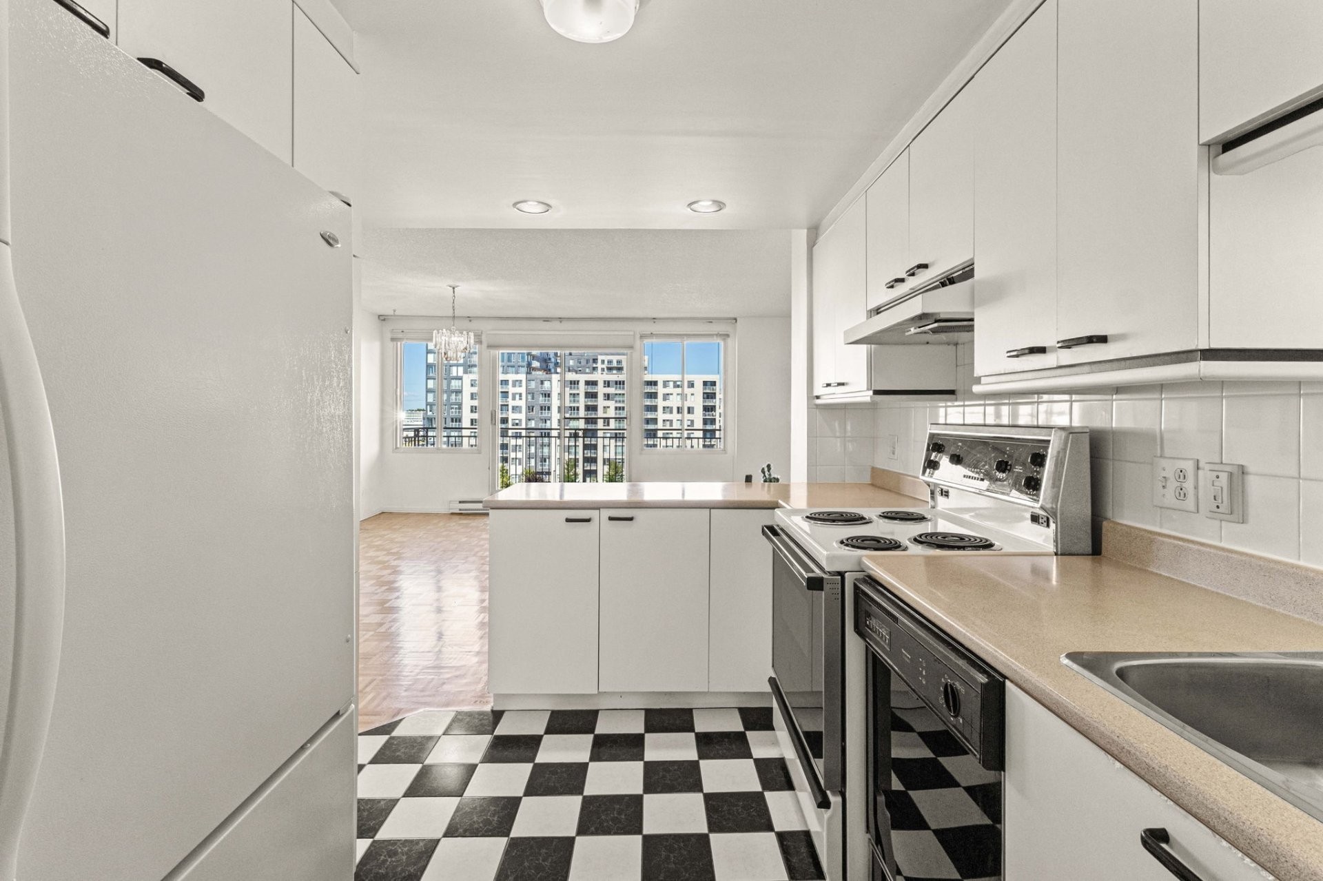 Condo lumineux en coin, orienté ouest, comprenant 2 chambres, 1 salle de bain complète et 1 salle d'eau (avec buanderie dans la salle d'eau) deux grande balcons. Espace salon/salle à manger à aire ouverte, excellente luminosité l'après-midi et carrelage noir et blanc bien entretenu dans la salle d'eau/buanderie. Comprend 1 stationnement intérieur (SS1-#53) et 1 locker de rangement (SS1-37). Agencement idéal pour un confort au quotidien.