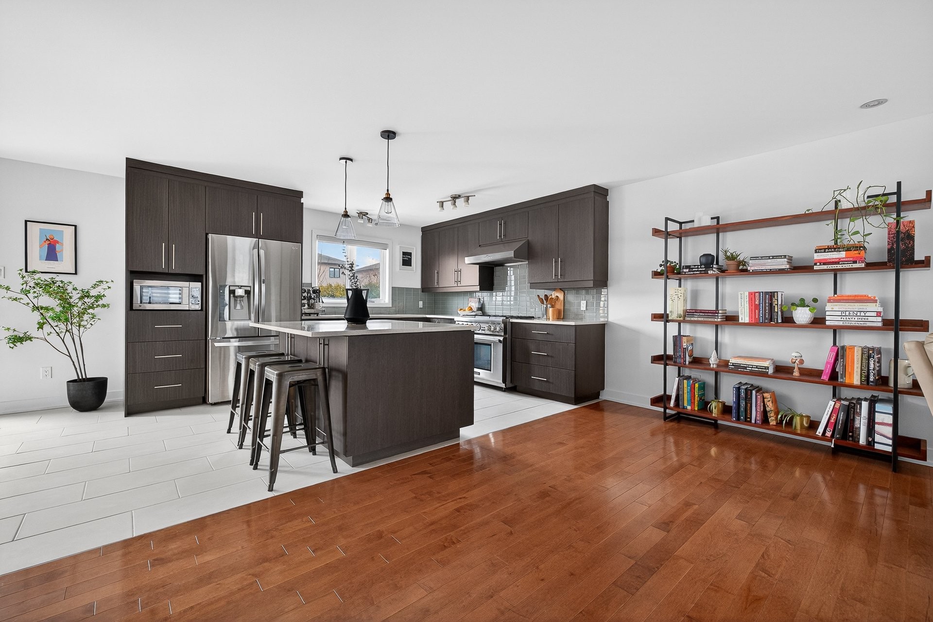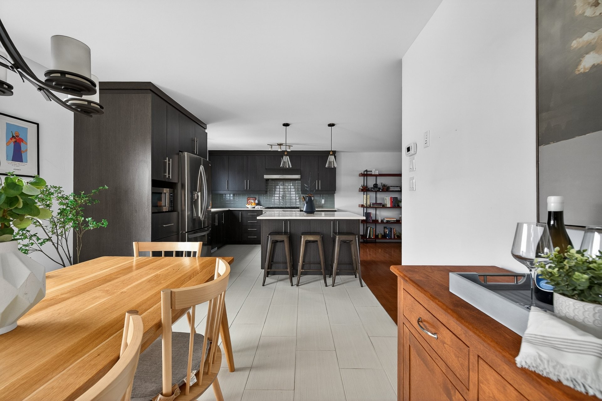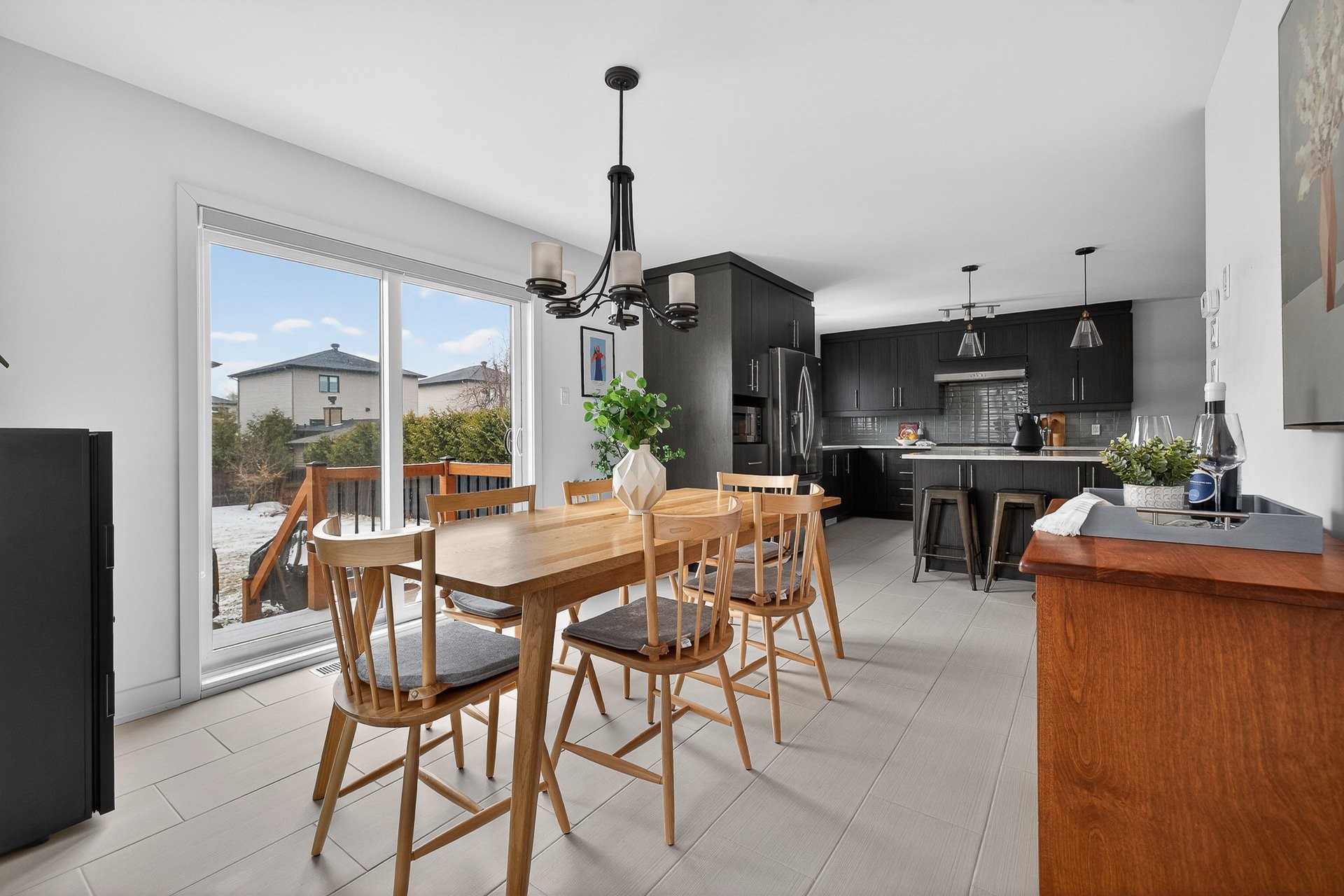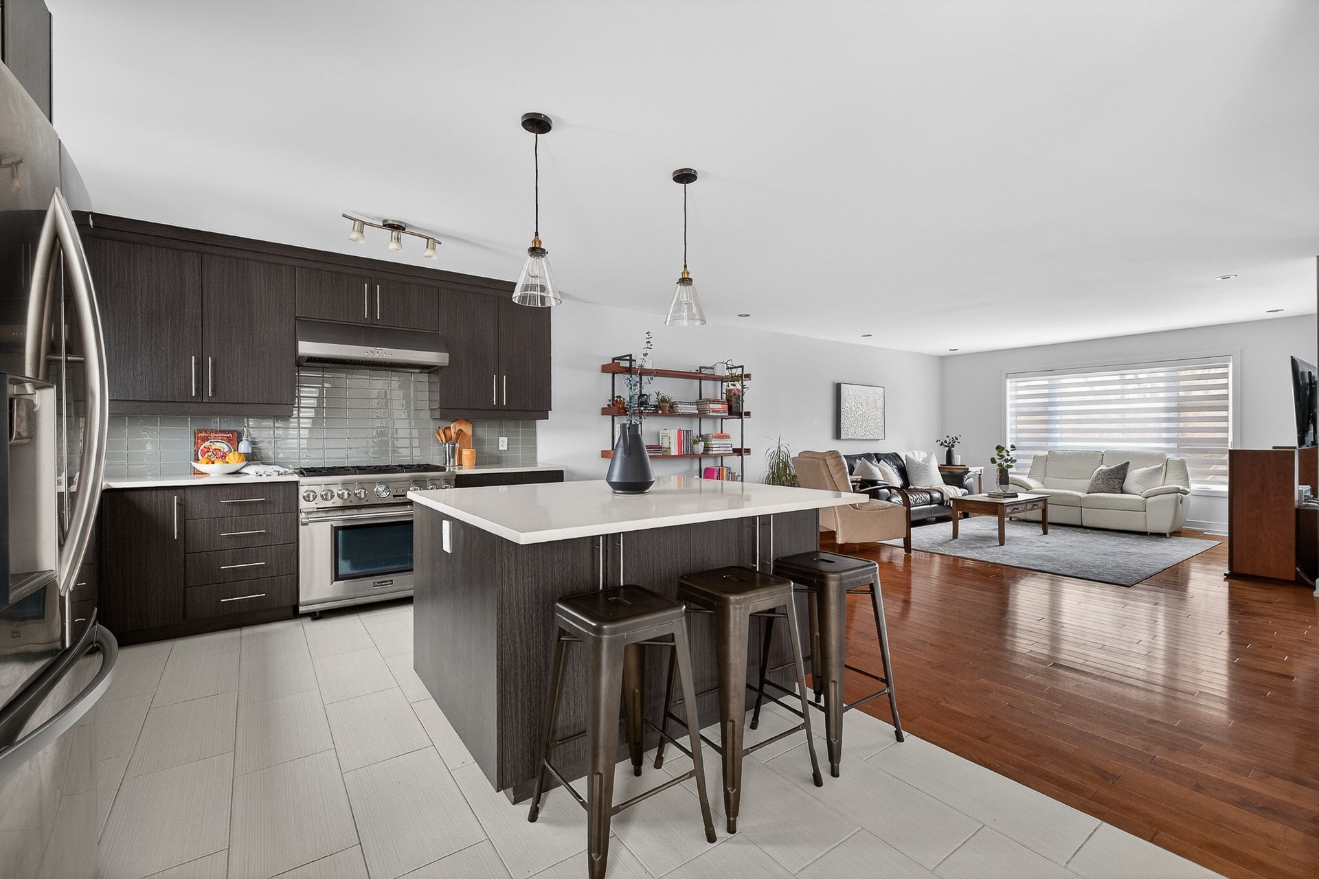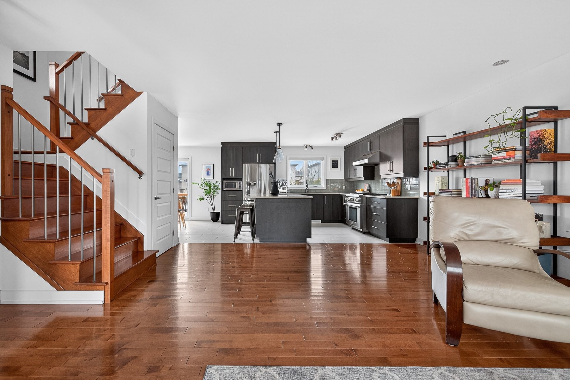 Superbe propriété à étages offrant espace, luminosité et confort pour toute la famille! Dès l'entrée, un hall fermé par de magnifiques portes françaises laisse entrer une abondante lumière naturelle. Le rez-de-chaussée propose une aire de vie ouverte et conviviale : vaste salon baigné de lumière, cuisine en coin avec armoires jusqu'au plafond, élégant dosseret en céramique et imposant îlot central pouvant accueillir trois personnes, le tout ouvert sur une salle à manger avec porte-patio menant à la cour. Une salle d'eau complète ce niveau.